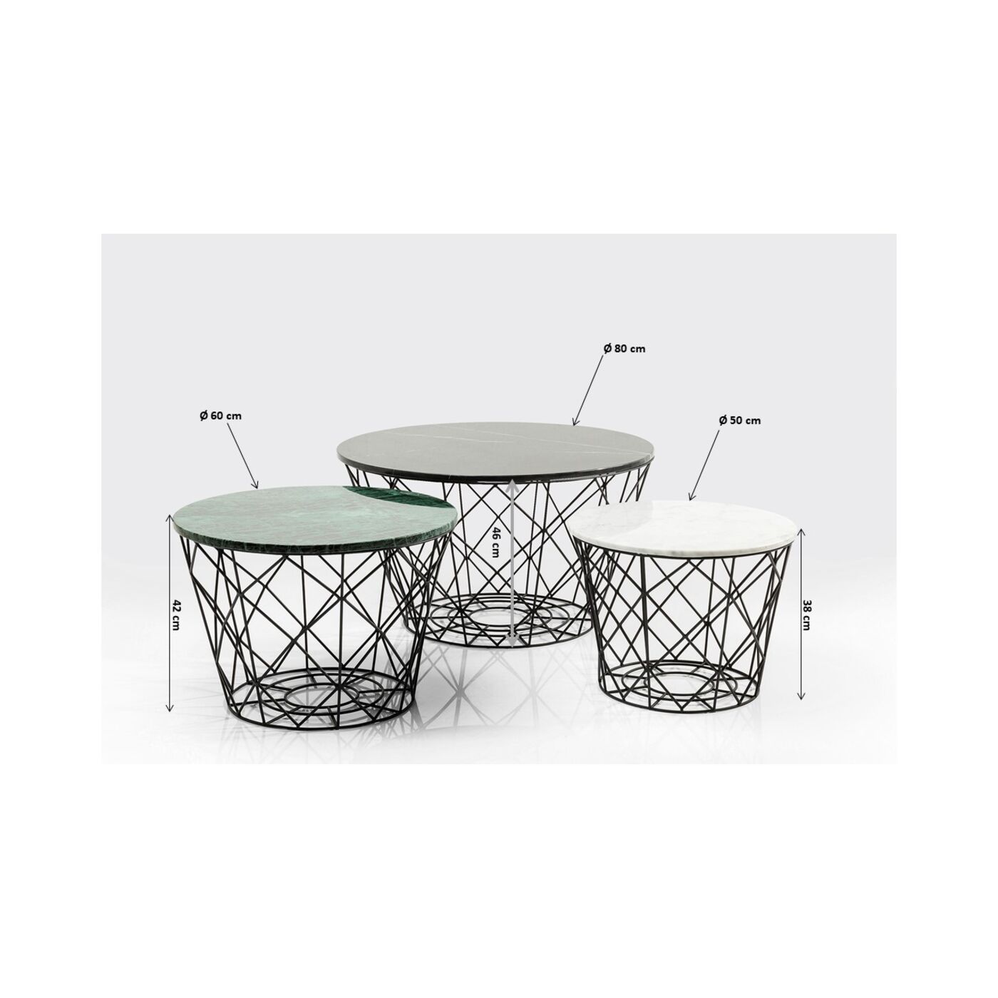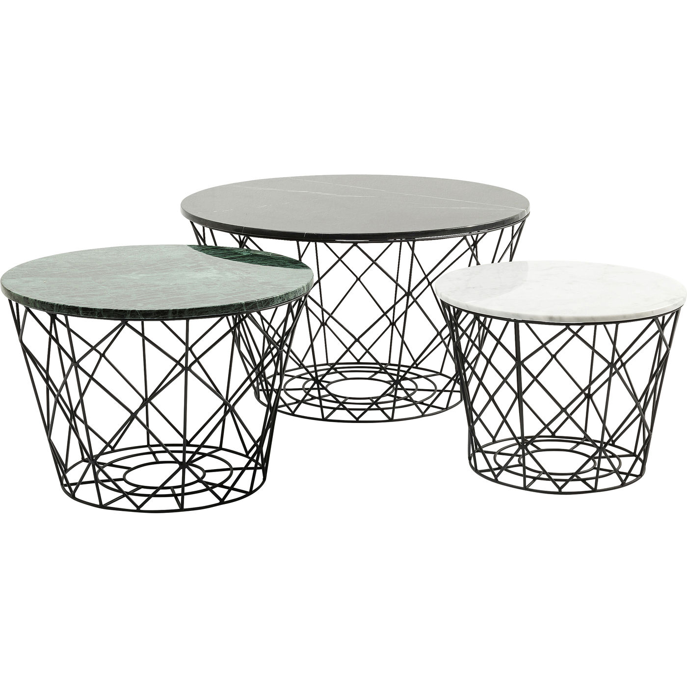Vielseitig einsetzbar und charmante Eyecatcher: Beistelltische. Das Couchtisch 3er-Set East Coast verzaubert mit der einzigartigen Kombination aus verschieden farbigen, luxuriösen Marmorplatten und grafisch gestalteten Drahtkonstruktionen in Schwarz. Ein spannungsreicher Mix, der besonders in einem modernen Ambiente für einen extravaganten Touch sorgt! Ob als Couchtisch-Trio oder einzeln als Nachttisch eingesetzt: Die hübschen Tische lassen sich unglaublich vielseitig einsetzen.