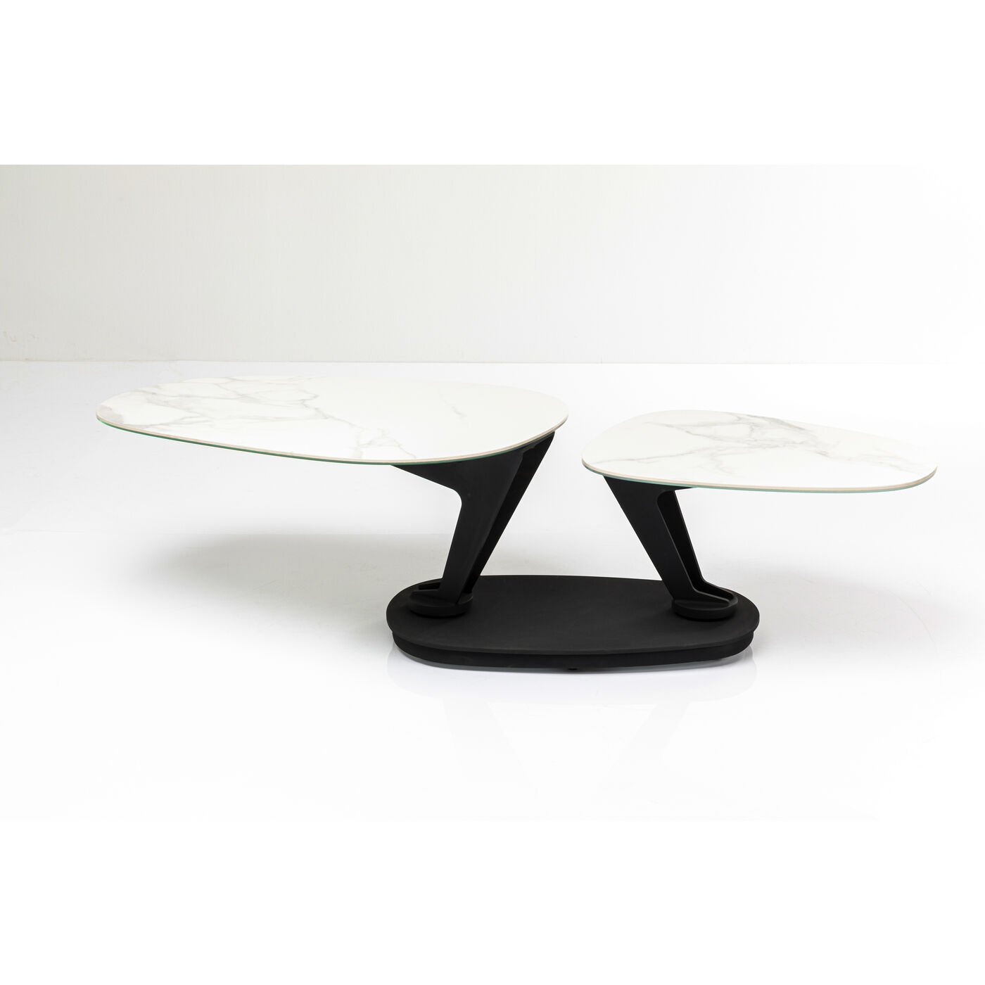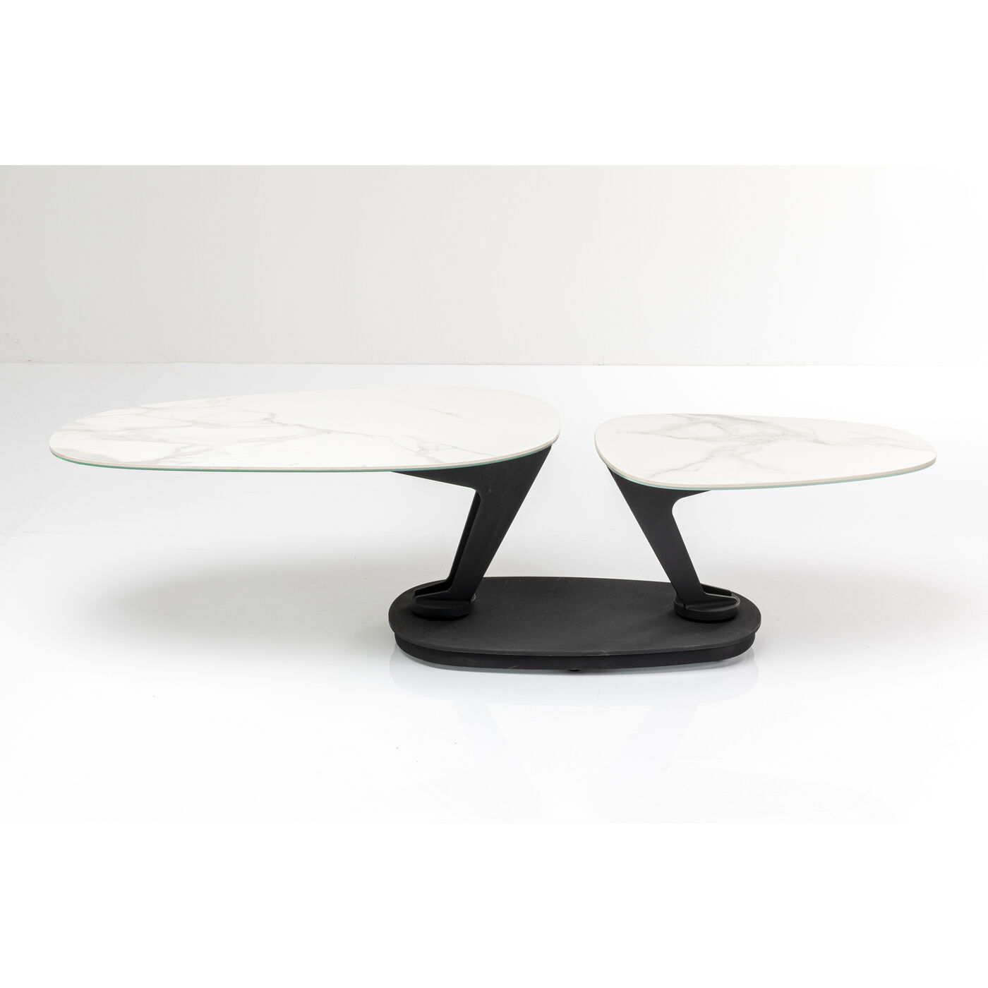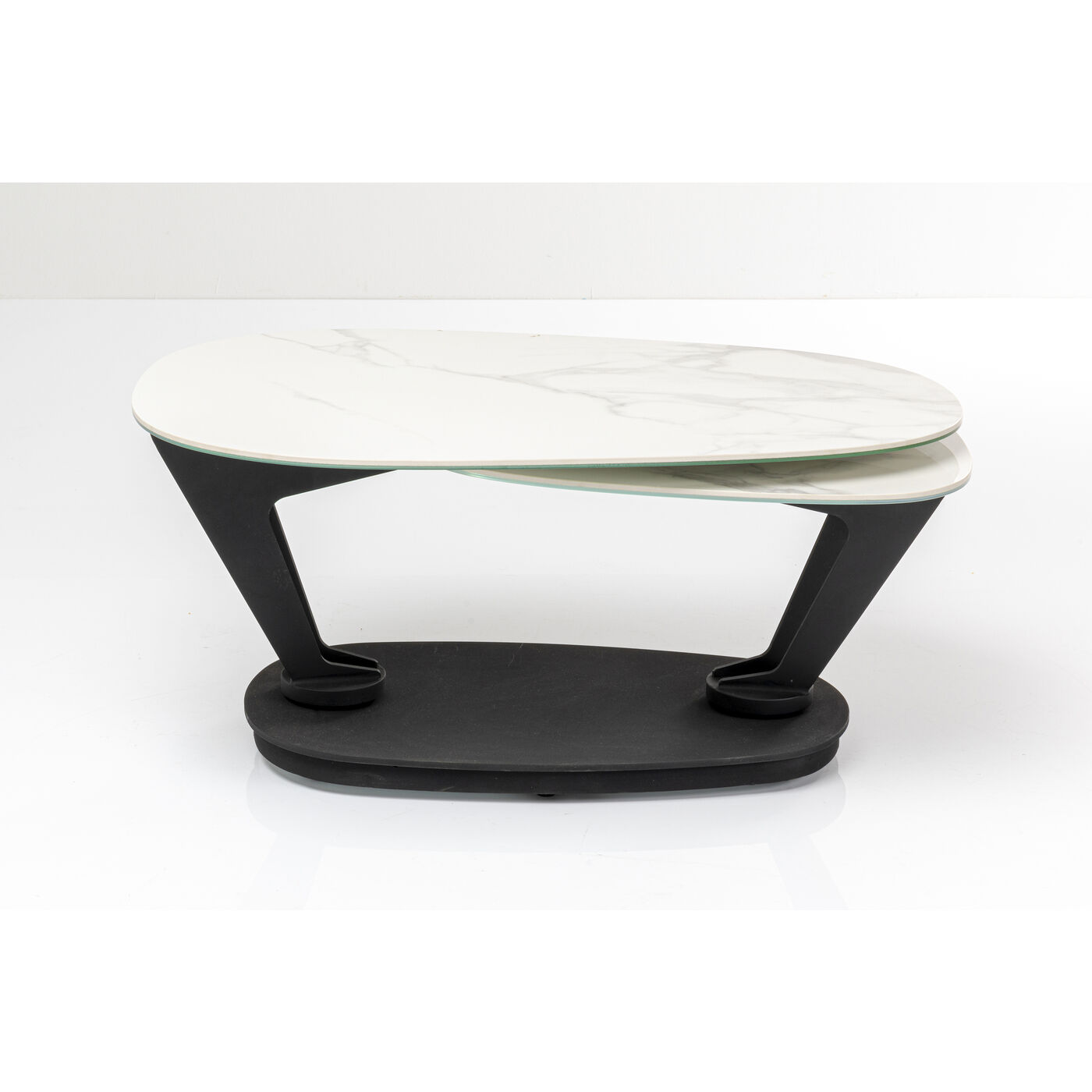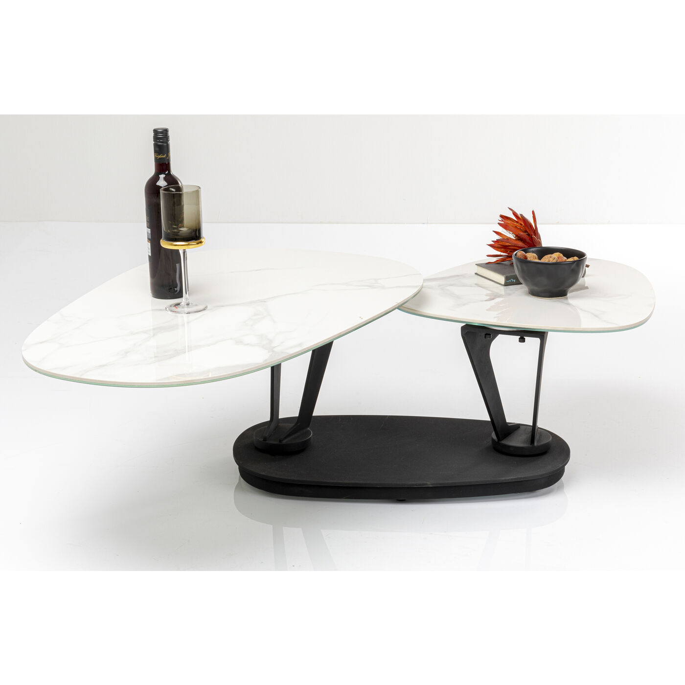 Diese Situation kennen Sie vielleicht: Sie machen es sich auf dem Sofa gemütlich, mal sitzend, mal liegend. Aber irgendwie ist der Sofatisch nicht in der richtigen Reichweite. Statt Tische rücken bietet der Wohnzimmertisch Franklin jetzt eine praktische und stilvolle Lösung. Mit einem Griff können Sie die Tischplatten synchron drehen, so dass Sie ihn bequem als Ablage nutzen können. Möglich macht das eine Mechanik, die sich im Sockel des Wohnzimmertisches verbirgt. Die Designidee zu Franklin ist nicht der einzige Vorteil des edlen Couchtisches. Sie erwerben ein Möbel, das aus hochwertigen und beständigen Materialien gefertigt und darum wertbeständig ist. Sein Stil ist modern und zeitlos und wird auch zur nächsten Couch oder Wohnlandschaft passen.