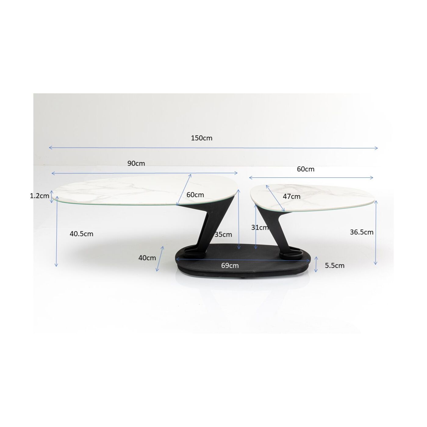 - Couchtisch in schwarz und weiß mit zwei Ablageflächen 42x150x58cm (H/B/T)