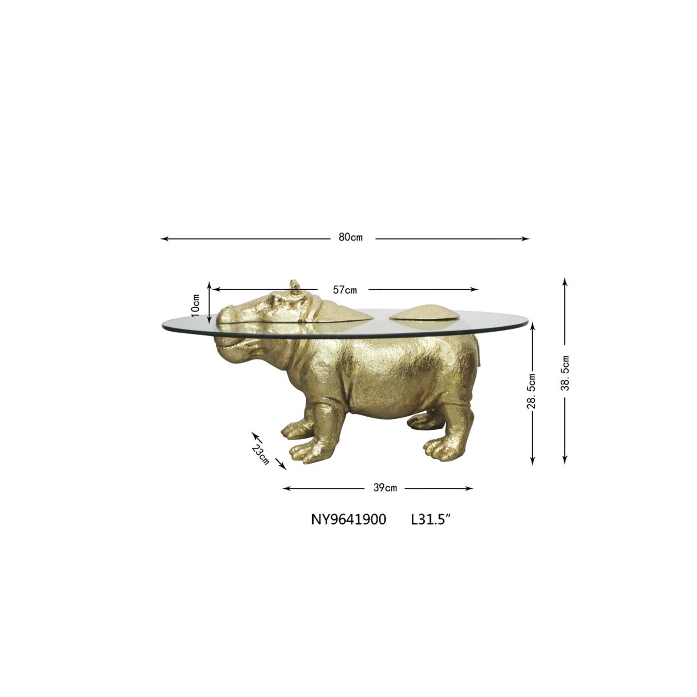 - Das goldige Nilpferd macht diesen Wohnzimmer-Tisch aus Glas zum Eyecatcher