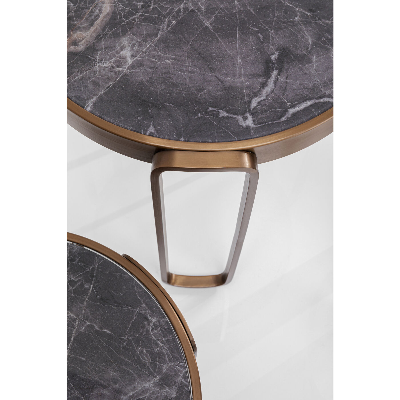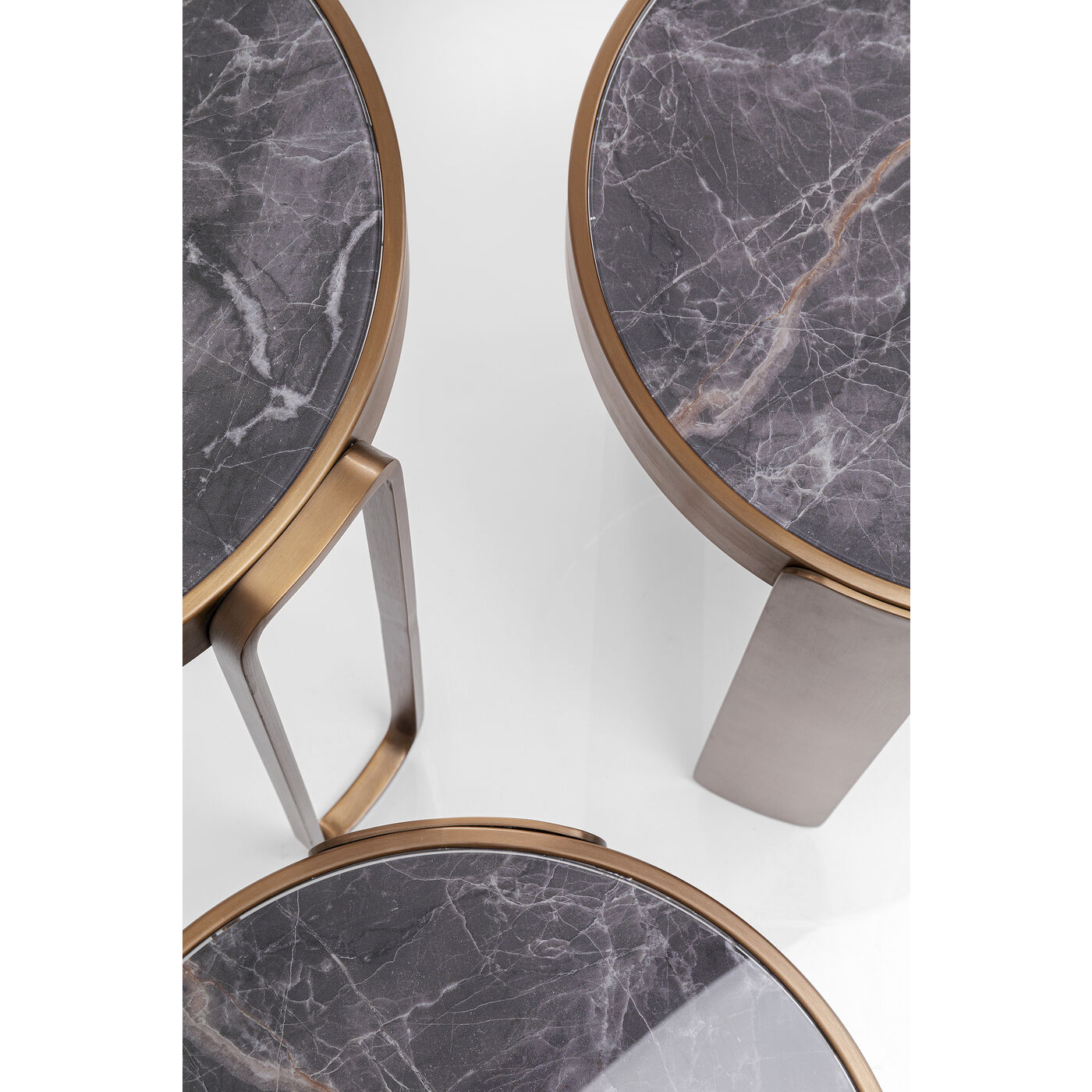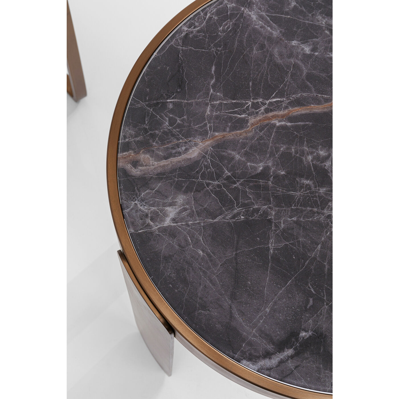 - Extravaganter Beistelltisch im 3er-Set: Drei runde Couchtische in der Trendfarbe Bronze in verschiedenen Größen und mit edlem Marmor-Print