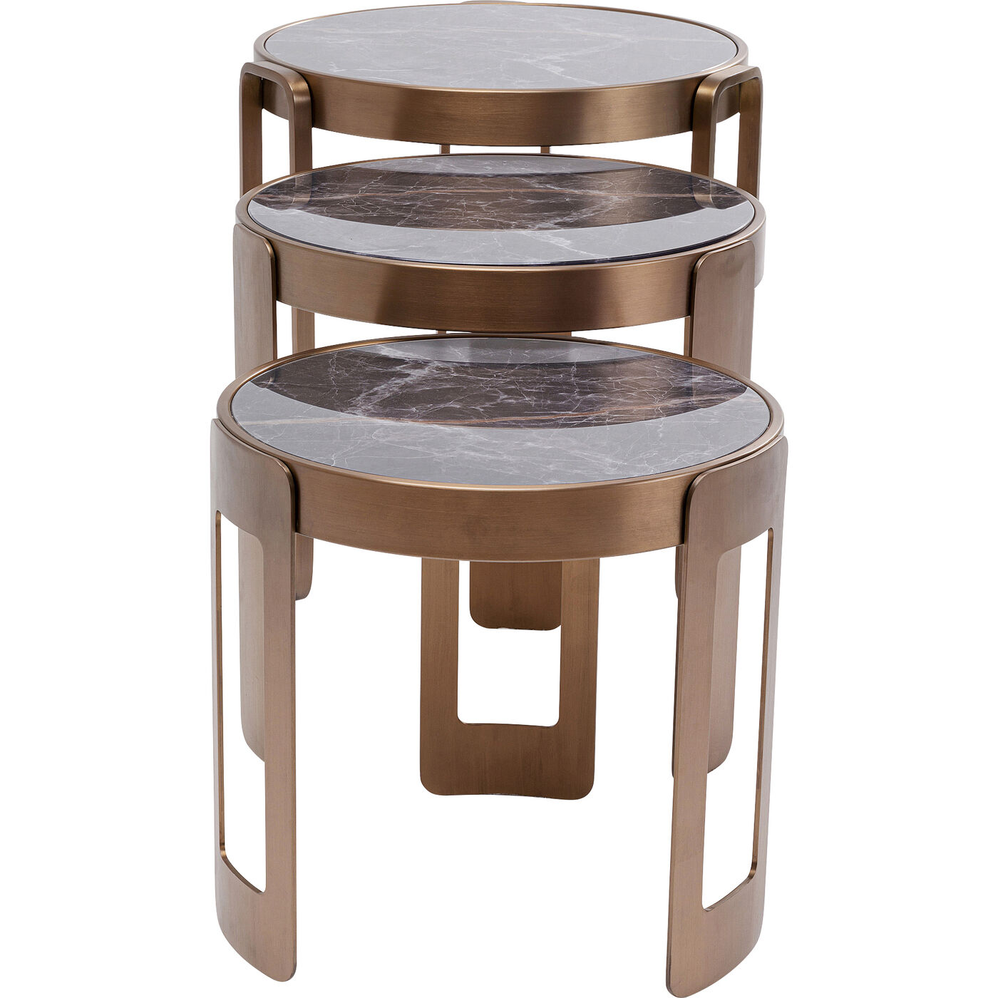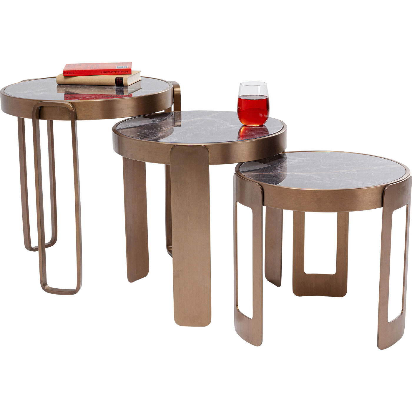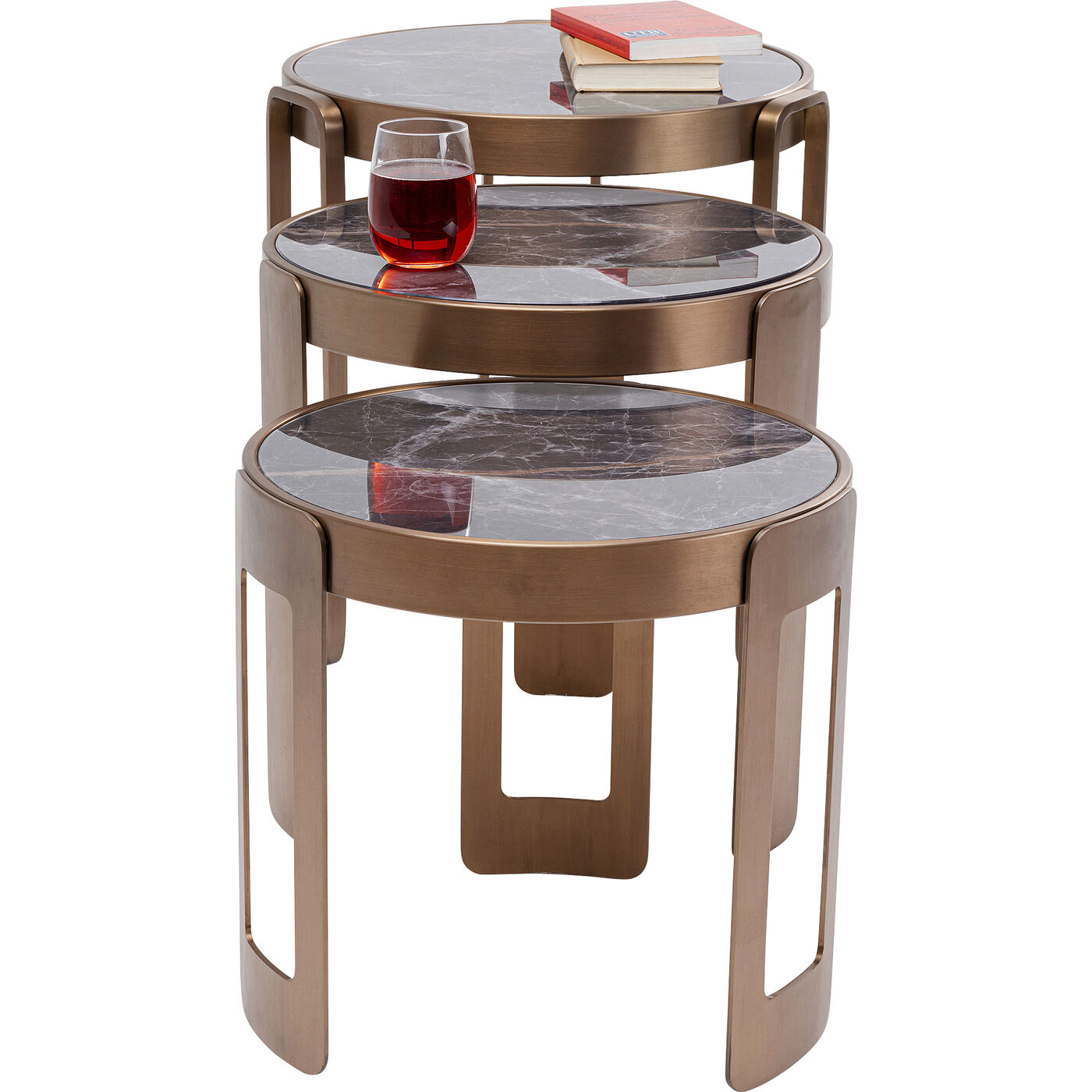 - Extravaganter Beistelltisch im 3er-Set: Drei runde Couchtische in der Trendfarbe Bronze in verschiedenen Größen und mit edlem Marmor-Print