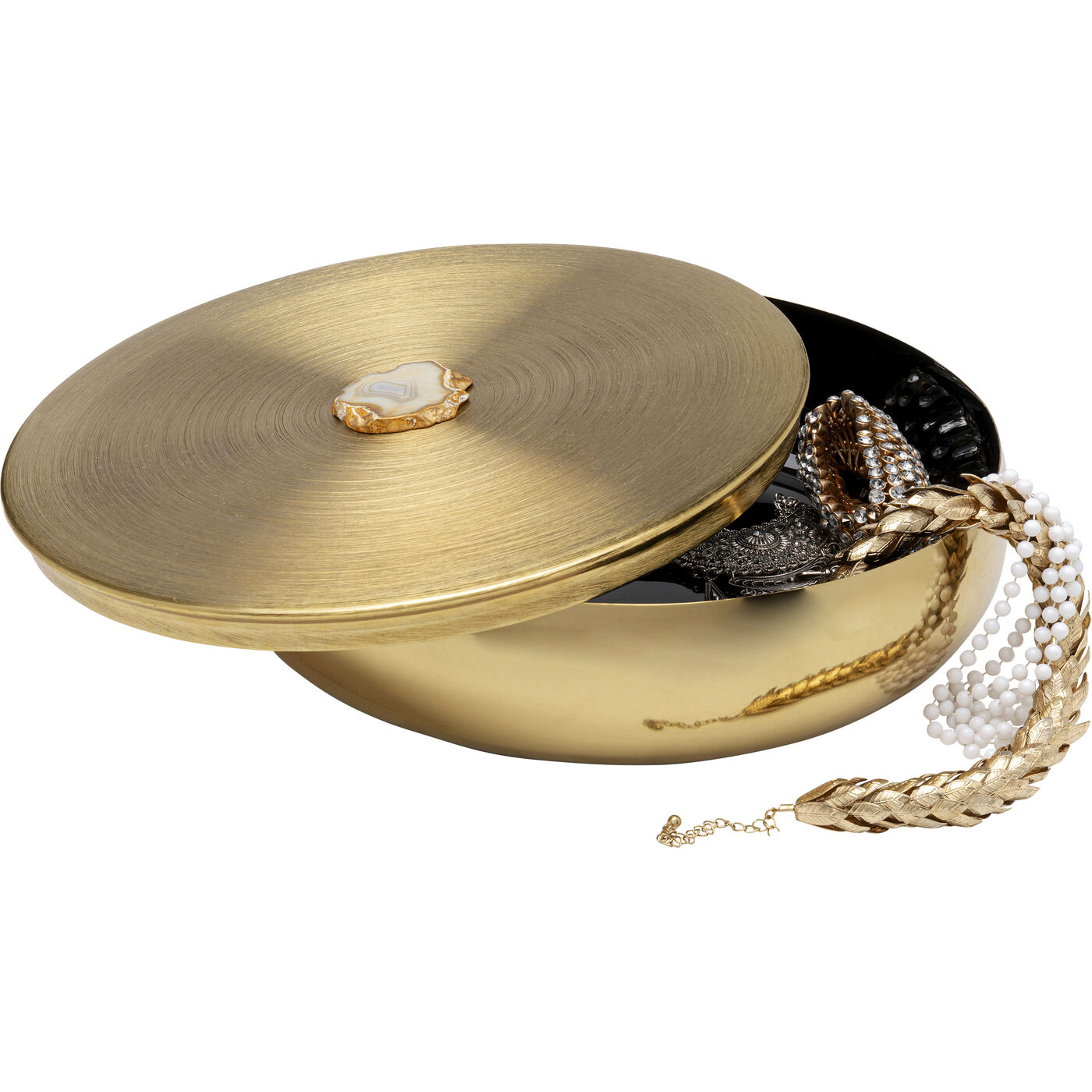 - Goldene Deko-Dose aus Stahl mit Achatstein, 8.5 x 31 x 31 Zentimeter (H/B/T)