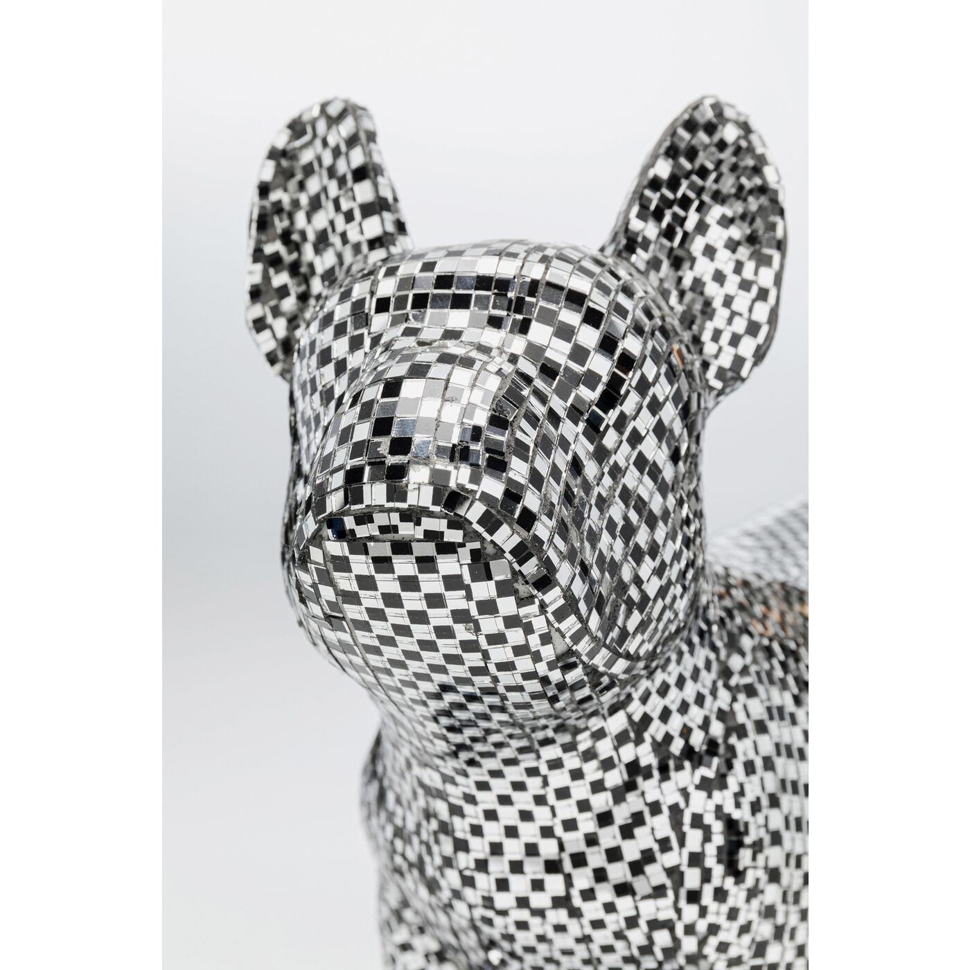 Setzen Sie funkelnde Akzente in Ihrem Zuhause mit dieser glamourösen Hunde-Figur in Silber und Schwarz. Das Mosaik aus spiegelndem Glas reflektiert das Licht und sorgt für ein eindrucksvolles Ambiente. Die Dekofigur lässt sich dank schlichter Farbgebung mit zahlreichen Wohnstilen vereinen und wird auf jedem Regal, Sideboard oder Tisch zu einem charmanten Blickfang. Ein ideales Geschenk für Hundefreunde und alle, die Stil und Glamour schätzen.