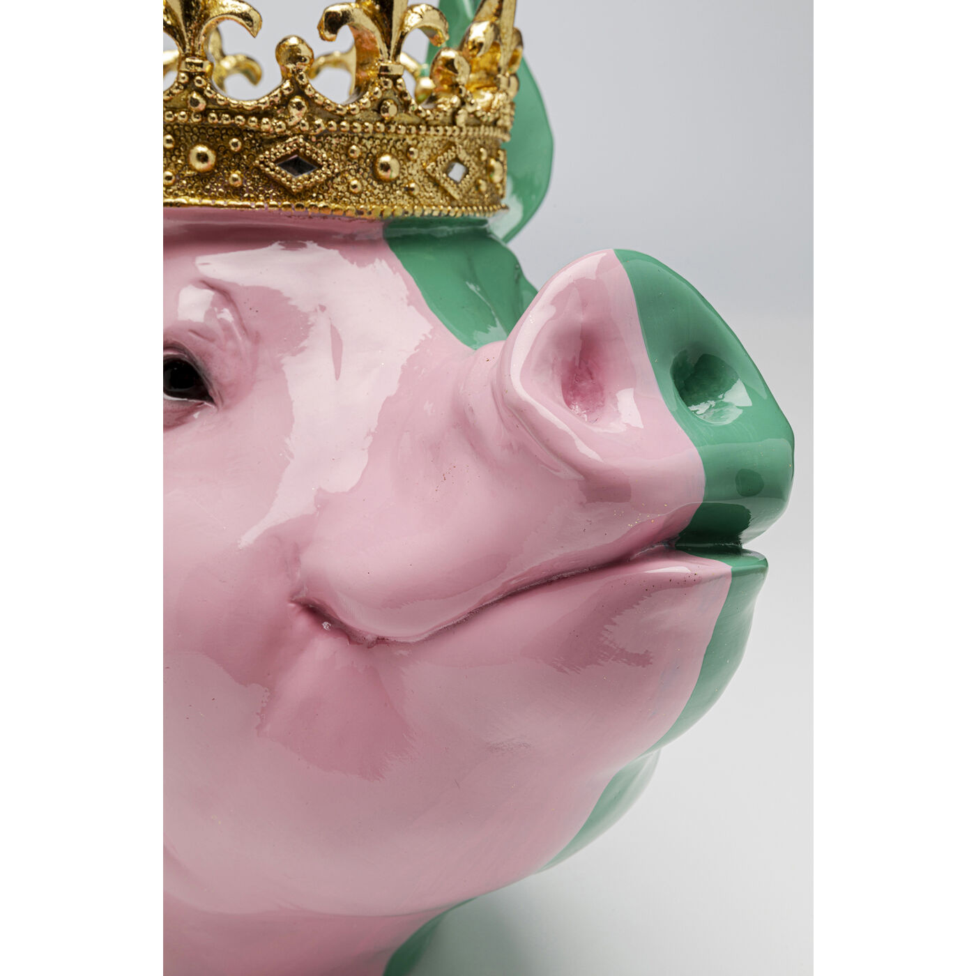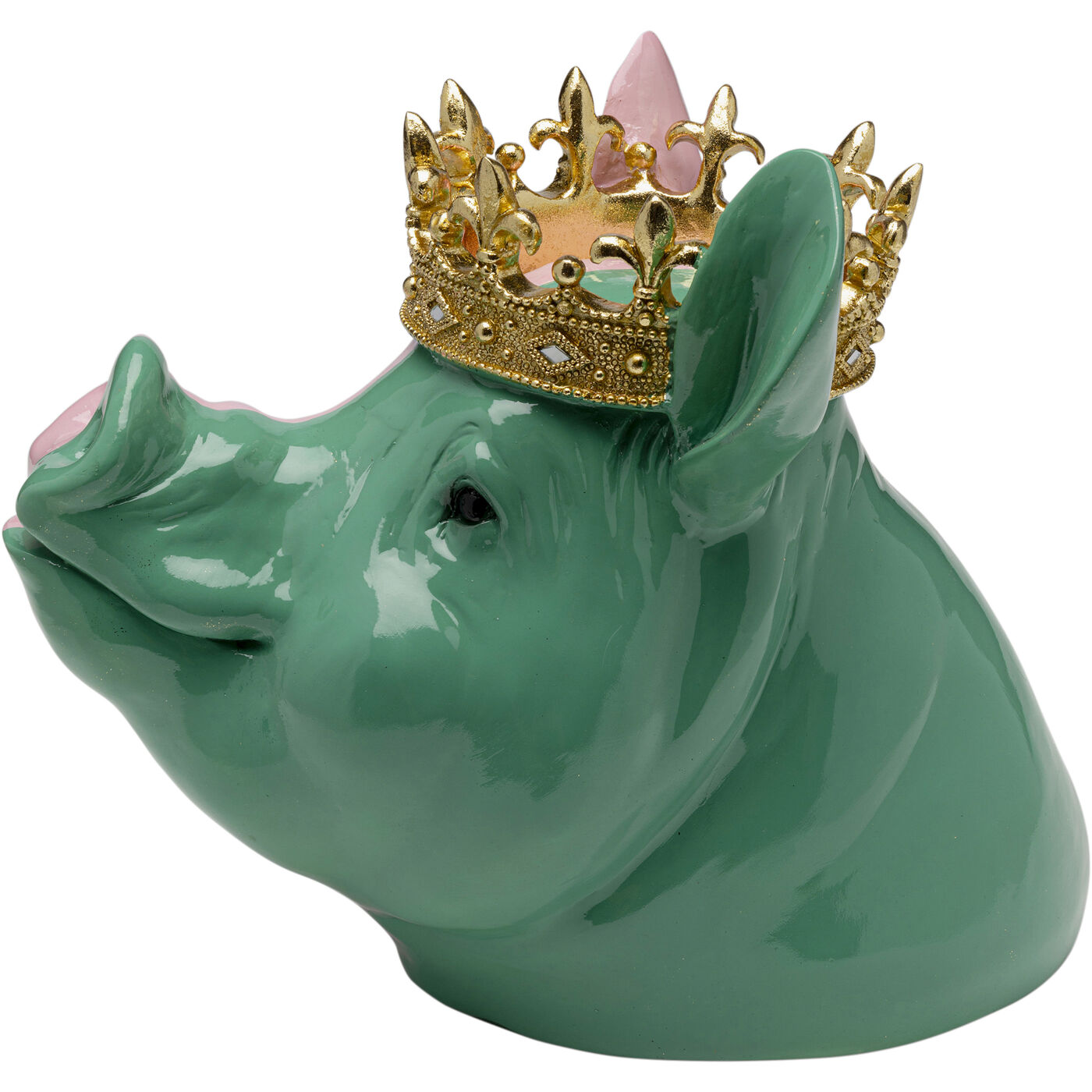 - Raffinierte Tierskulptur Schwein in Rosa und Grün mit goldfarbener Krone