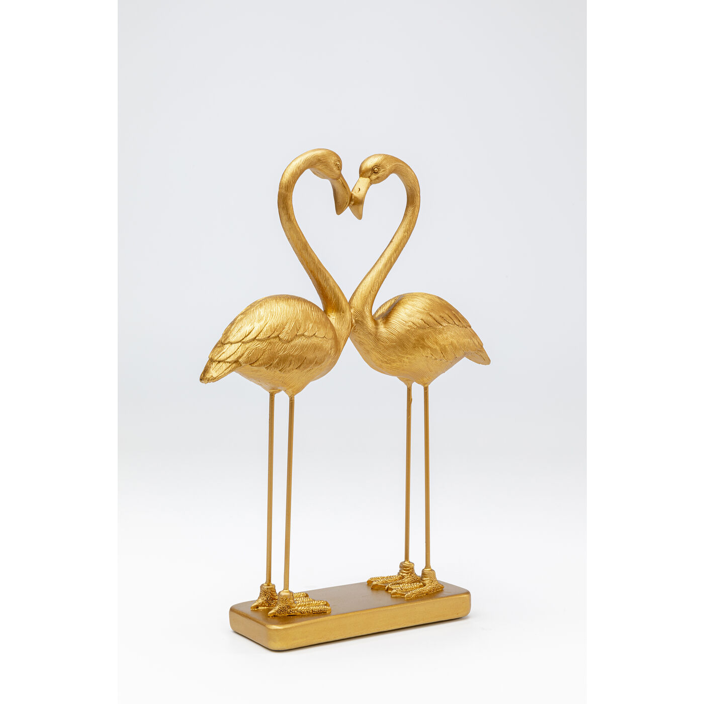 So viel Liebe! Die zwei goldenen Flamingos ganz in Gold bilden mit Hals und Schnabel ein wunderschönes Herz. Diese romantische Deko Figur eignet sich für das Schlafzimmer auf dem Nachttisch oder im Wohnzimmer auf Schreibtisch oder Sideboard. Mit ihrer Größe von 39,3x29,5x8,2cm (H/B/T) passt die Tischdekoration überall hin und zaubert ein Lächeln auf die Lippen aller. Die Dekoration setzt einen besonders schönen goldenen Farbakzent in Ihrem Zuhause. Das herzerweichende Tischaccessoire ist auch eine Geschenkidee für die bessere Hälfte oder zur Hochzeit.