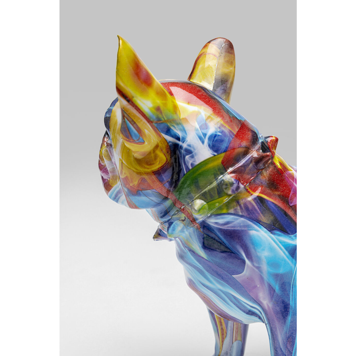 Mit dieser kunterbunten Französischen Bulldogge als Dekoration liegen Sie voll im Trend. Die auffällige Figur aus leichtem Kunststein ist nicht nur für Hundeliebhaber, sondern für alle, die Ihrem Wohnraum einen modernen Touch geben wollen. Dank der Maße 21,5 x 24 x 11,5 besitzt dieser Vierbeiner eine dekorative Größe und stellt ein sensationelles Wohnaccessoire auf jedem Regal, Sideboard oder Fensterbrett dar.