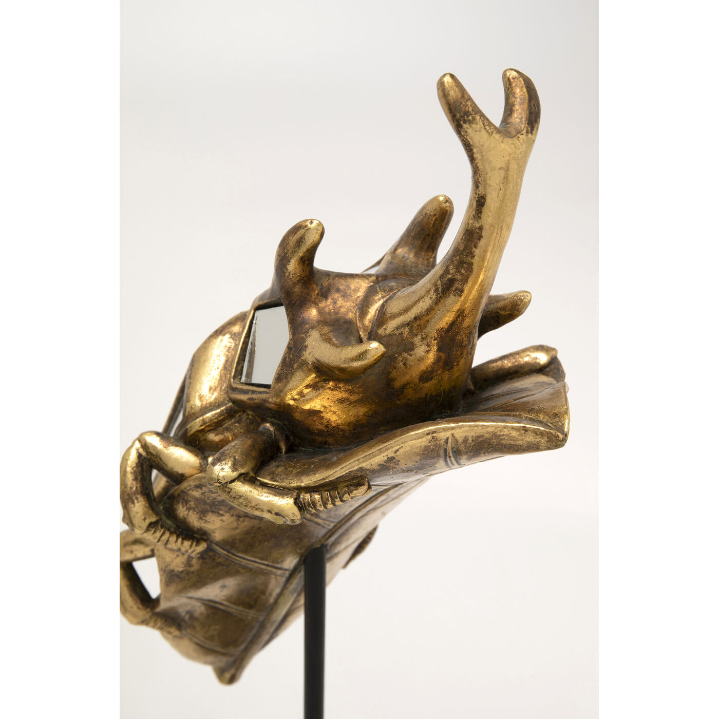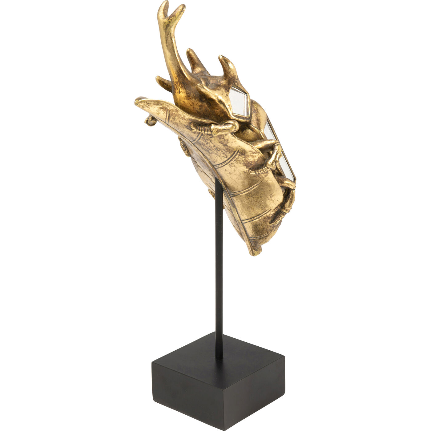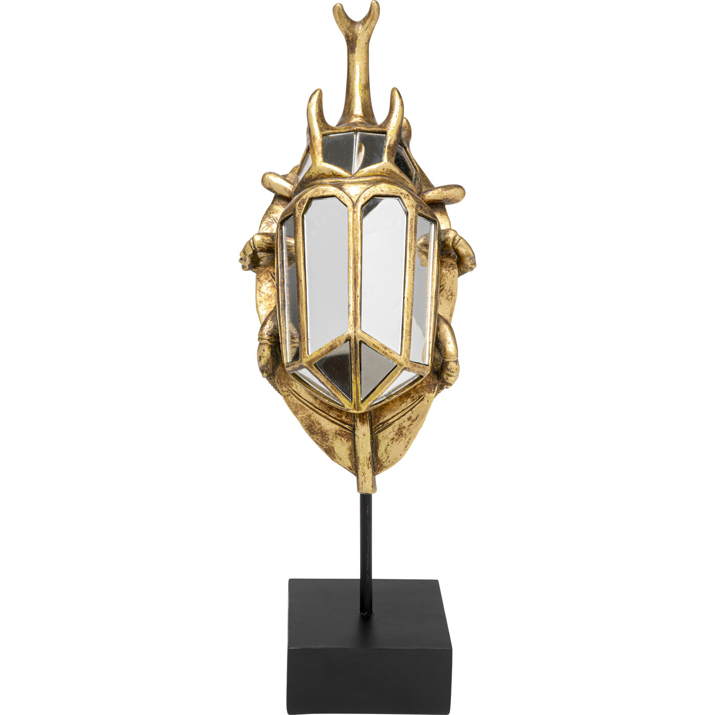 Ein kunstvoller Blickfang mit Symbolkraft: Diese edle Dekofigur in Form eines goldenen Schröter-Käfers zieht mit ihrer detailverliebten Gestaltung alle Blicke auf sich. Die Kombination aus glänzenden Spiegelflächen und metallischen Akzenten bringt funkelnde Lichtspiele ins Interieur, während der schwarze Sockel dem Objekt einen eleganten Stand verleiht. Als Sinnbild für Stärke und Wandel eignet sich der Käfer ideal als dekoratives Statement auf Sideboards, Konsolen oder im Regal. Jedes Stück entsteht in liebevoller Handarbeit und bringt Individualität ins Zuhause – besonders stilvoll in Kombination mit dunklen Farben, Glasflächen oder Naturstein.