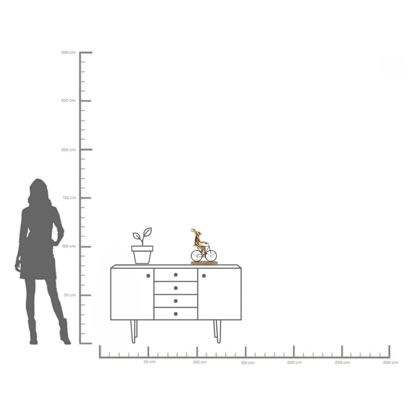 Sie können sich mit diesem radelnden Kaninchen auf immer wiederkehrende gute Laune gefasst machen. Der fröhliche Geselle mit den Langohren sorgt für gute Stimmung in jedem Raum, in dem Sie ihn platzieren. Für dieses Modell wurde strapazierfähiges Polyresin gewählt, das Gestell besteht aus foliertem Stahl. Für die Gestaltung der Details - wie Ohren, Mimik und Schwanz - wurde viel Mühe aufgewendet. Das Ergebnis kann sich sehen lassen. Weiterer Pluspunkt: Jedes von Hand gefertigte Kaninchen ist ein Unikat. Überlegen Sie sich schon einmal, wo dieses muntere Tier seinen zukünftigen Platz in Ihrer Wohnung haben soll. Sie entscheiden sich für einen echten Hingucker, der bei jedem Betrachter für ein Schmunzeln sorgt. Kleines Kaninchen, fahr bloß vorsichtig!