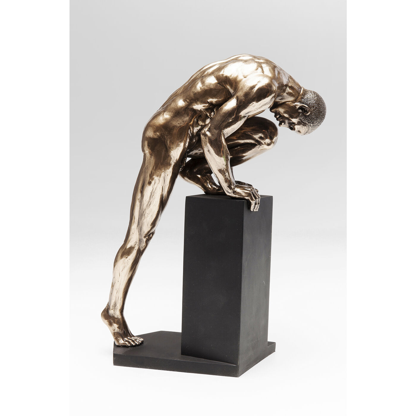 - Bronze-Optik: Die bronzefarbene Figur auf schwarzem Sockel erinnert an eine antike Skulptur
