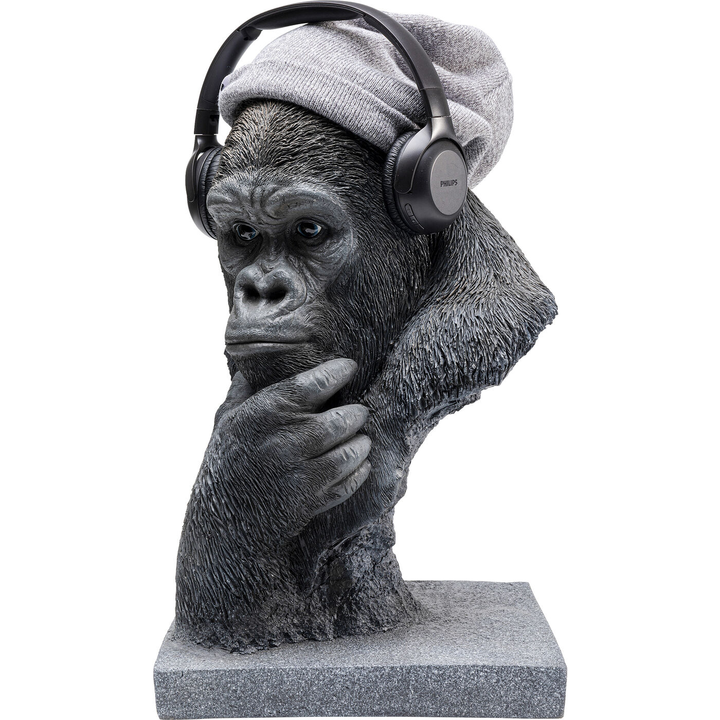 Mit dieser Deko-Figur drücken Sie Individualität aus: Der Affe ist auch aufgrund seiner Größe ein Blickfang im Eingangsbereich oder im Wohnzimmer. Das handgefertigte Unikat ist detailreich gearbeitet und erfüllt nicht nur dekorative Zwecke: Mit Mütze und Kopfhörern wird der Gorilla zum lässigen Begleiter in modern eingerichteten Räumen.