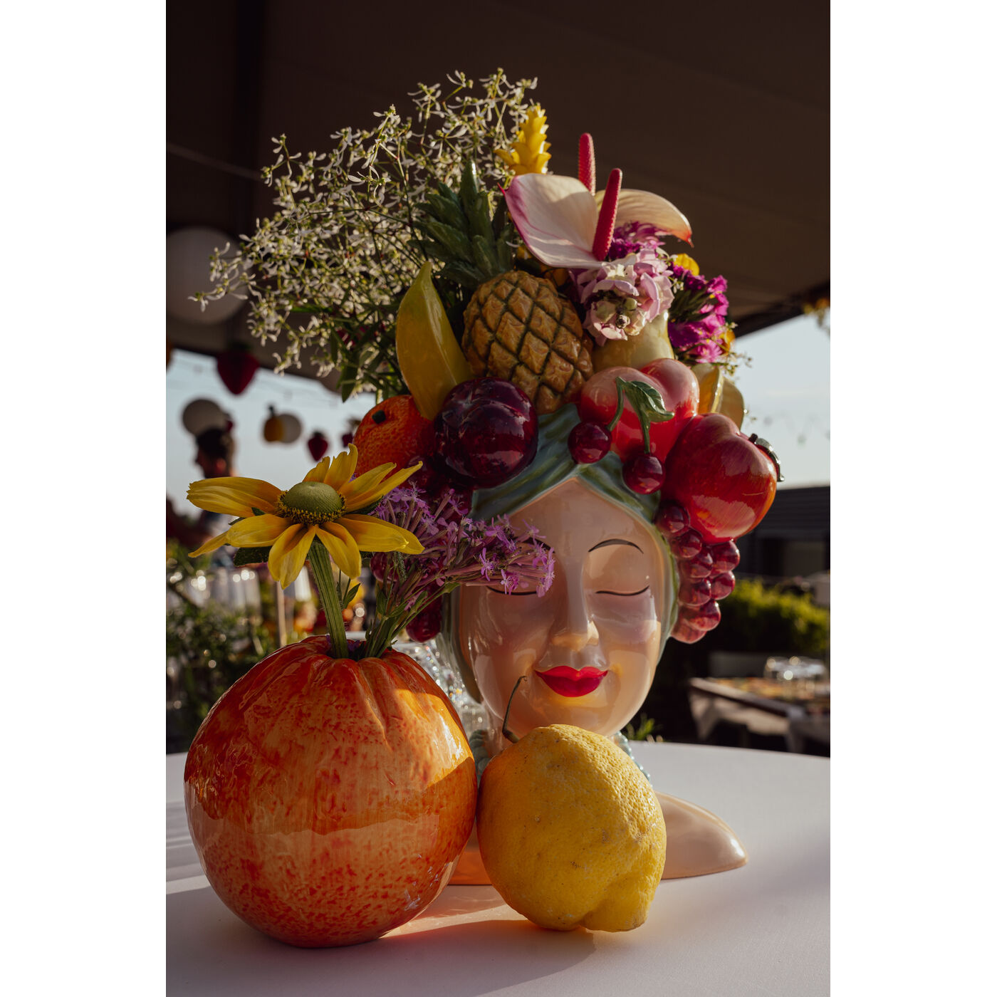 Früchtchen sind ein zuckersüßer Trend in der Fashion und für die Wohndekoration. Sie tauchen auf Kleidern italienischer Luxusmarken genauso oft auf, wie bei dekorativen Heimtextilien. Bei dieser Motiv-Vase aus bedrucktem Polyresin spielt die Funktion als Vase fast eine untergeordnete Rolle. Als Couchtisch- Deko im Stil sizilianischer Keramik weckt sie Sinnlichkeit und Lebensfreude. Da die Vase wegen der Fertigung von Hand nicht 100 Prozent wasserdicht ist, nutzen Sie bitte für Sträuße oder Topfblumen einen wasserdichten Einsatz.