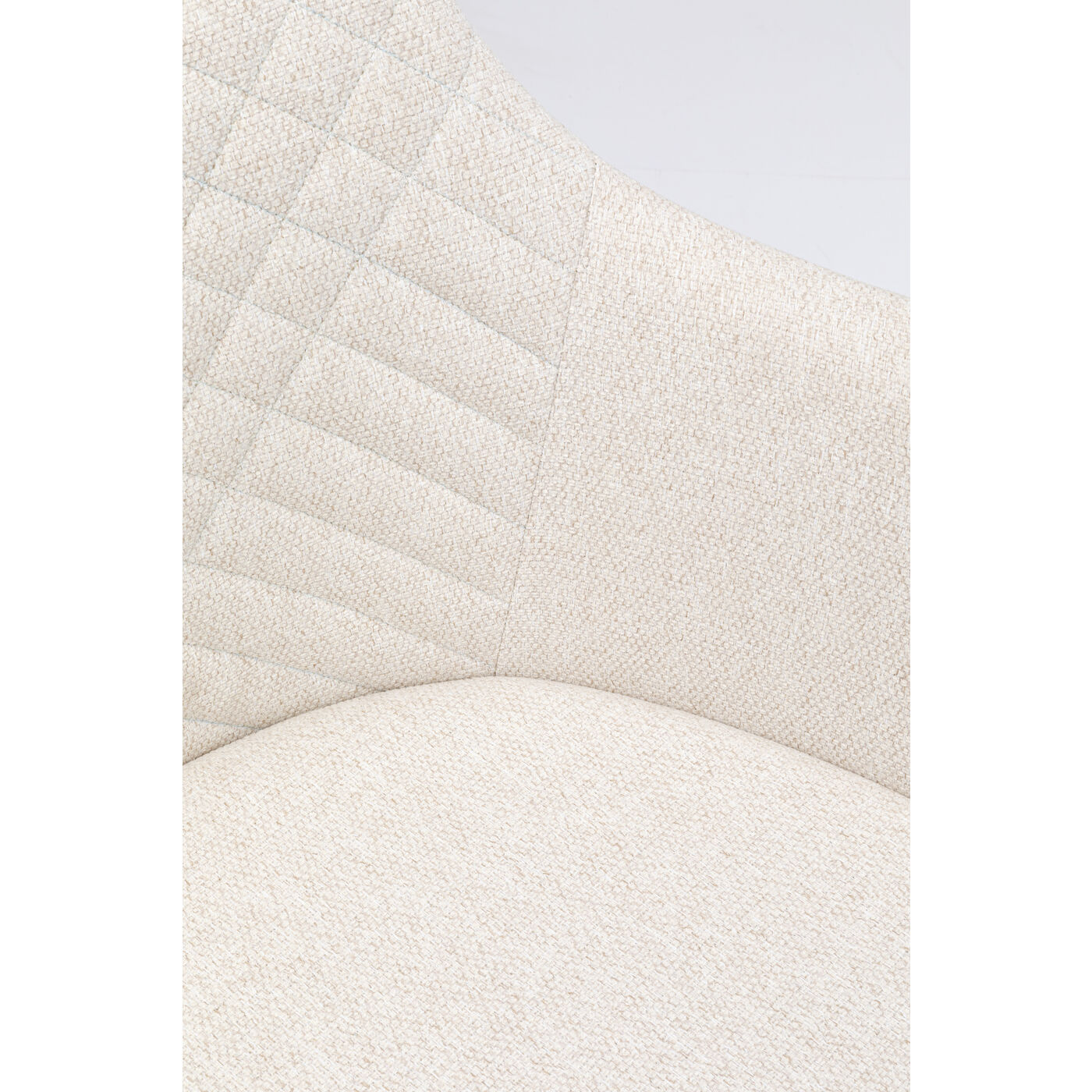 Dreht sich um 360 Grad und verfügt zusätzlich über eine Rückstellfunktion - das macht diesen gepolsterten Drehsessel mit Armlehnen noch komfortabler. Bequem ist er durch seine großzügige Schalenform, seine Sitzhöhe von 48cm und die angenehme Unterpolsterung sowieso. Seine Einsatzmöglichkeiten sind durch das moderne Design vielfältig: zum Esstisch oder dem Schreibtisch oder als Sitzgelegenheit am Schminkplatz. Der helle Bezugsstoff aus Chenille-Webstoff ist nicht nur schadstoffgeprüft und zertifiziert. Die Easy-Clean Technologie des Textils weist Wasser ab und selbst Flecken lassen sich im Handumdrehen entfernen. Sie brauchen also keine Angst vor Flecken auf dem hellen Polstermöbel zu haben.