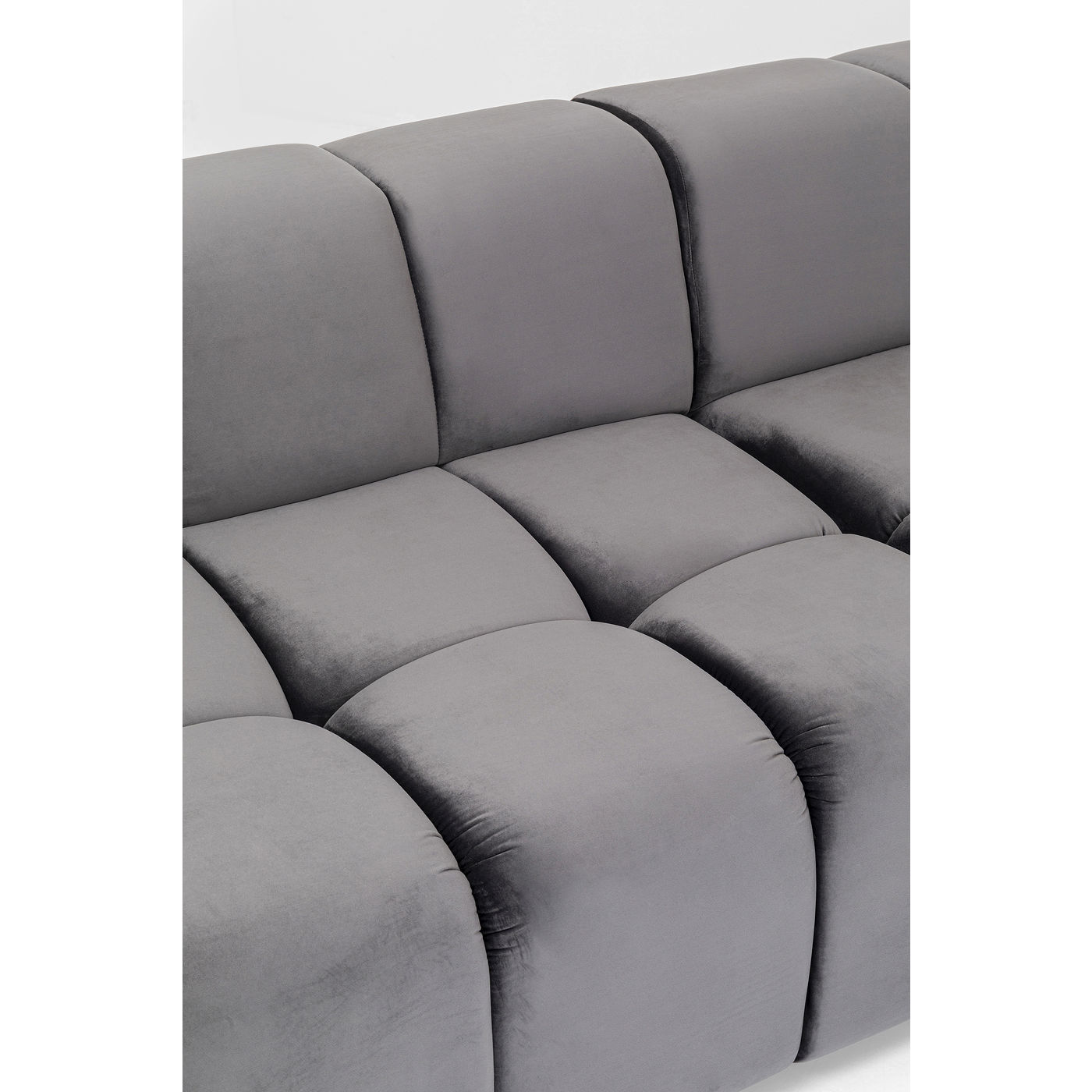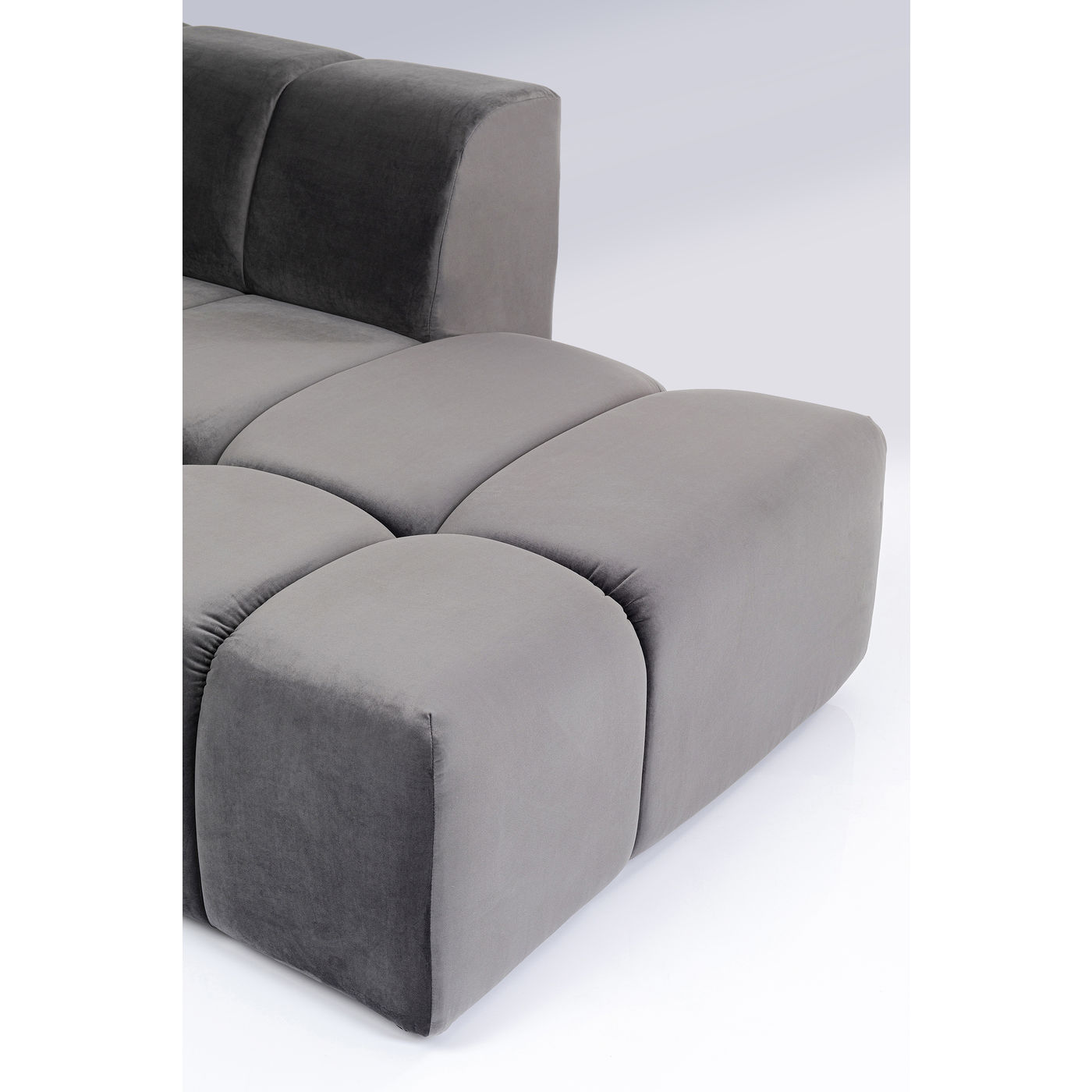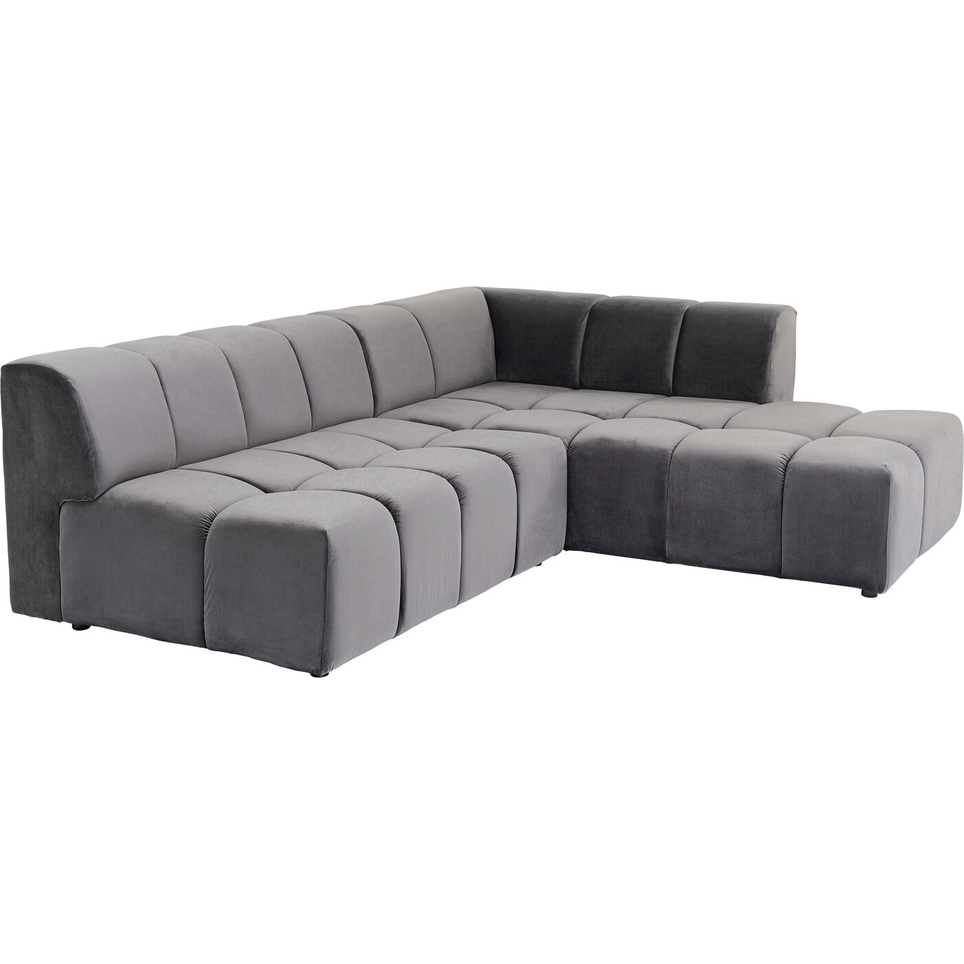 Kompaktes Sofa als Ecklösung für jedes Wohnzimmer. Sich einfach mal fallenlassen und anlehnen – sehr gut. Die Füße hochlegen– noch besser! Genau aus diesem Grund kombiniert Ecksofa Belami großzügige Sitzflächen mit einer Chaiselongue, alles ultrabequem. Die Lieblingswohnfarbe Grau ist super leicht zu kombinieren die würfelförmige Polsterung macht diese knuffige Couch zum Design-Highlight.