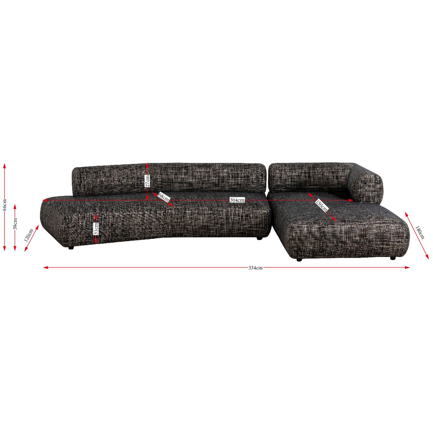 - Großes Ecksofa mit Chaiselongue in Grau, 334x180cm