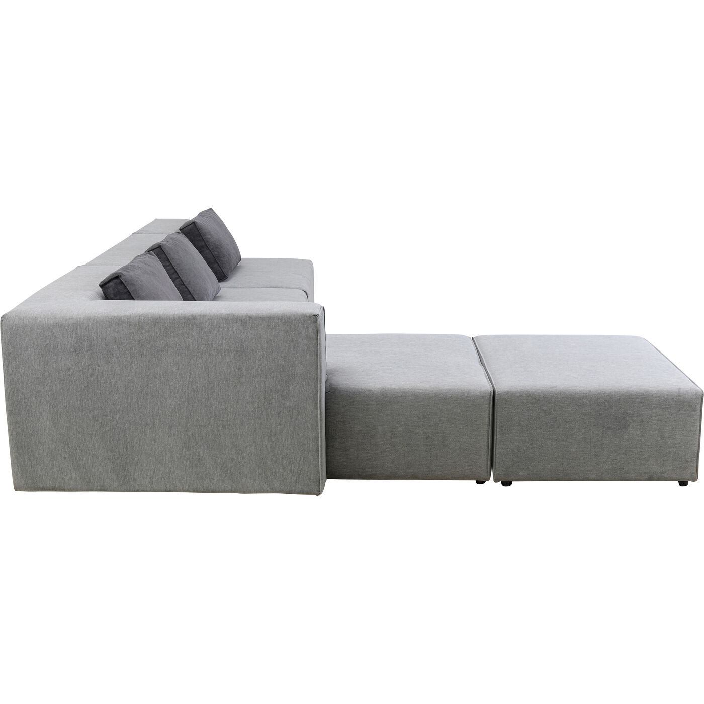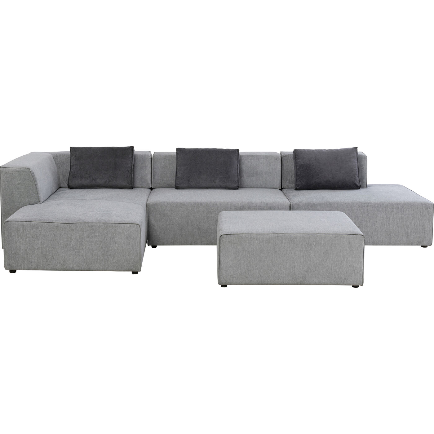- Modernes Ecksofa mit Ottomane links und Hocker, 70 x 357 x 182 Zentimeter (H/B/T)
