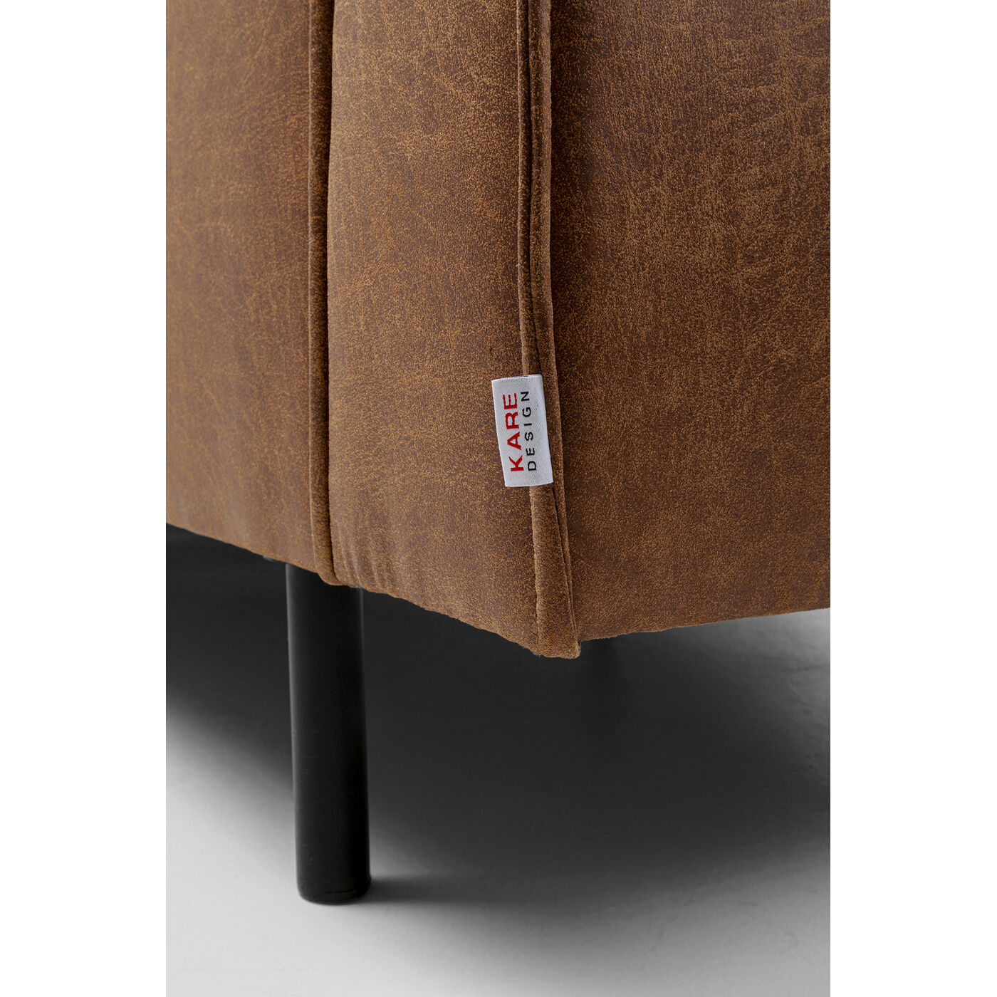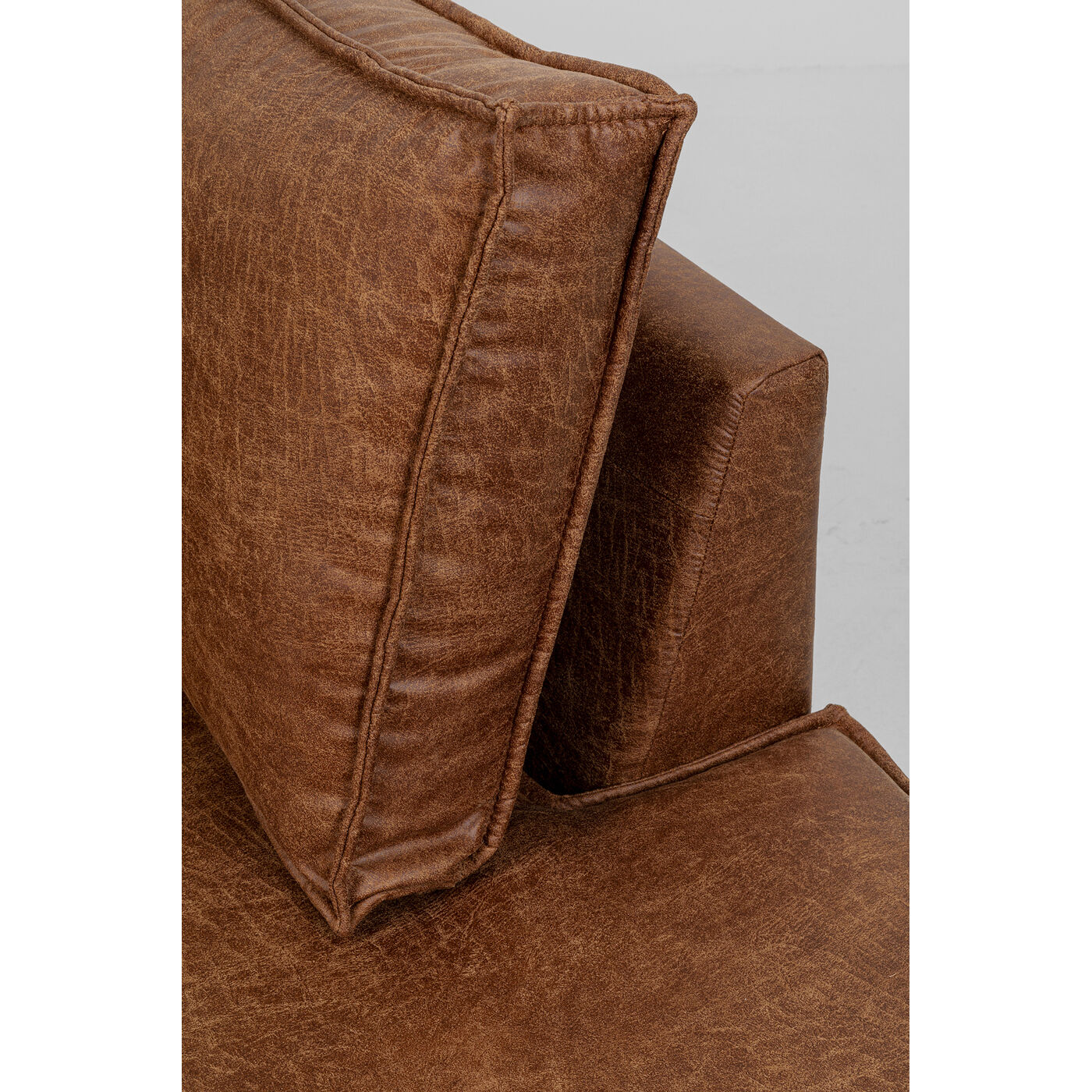 - Dieses große Sofa begeistert mit klarer Formsprache und dem Bezug in Vintage-Leder Optik in warmem Braun