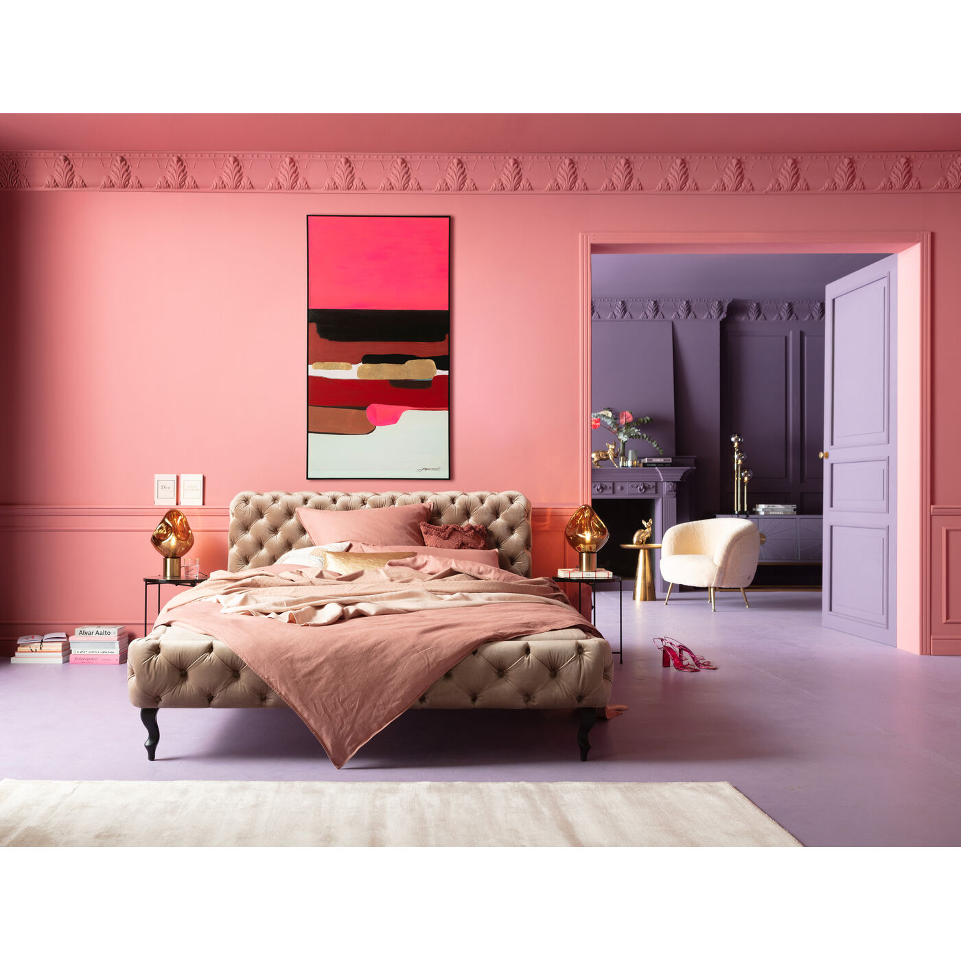 - Abstraktes Wandbild mit kräftigem Pink, 143 x 73 x 4.5 Zentimeter (H/B/T)