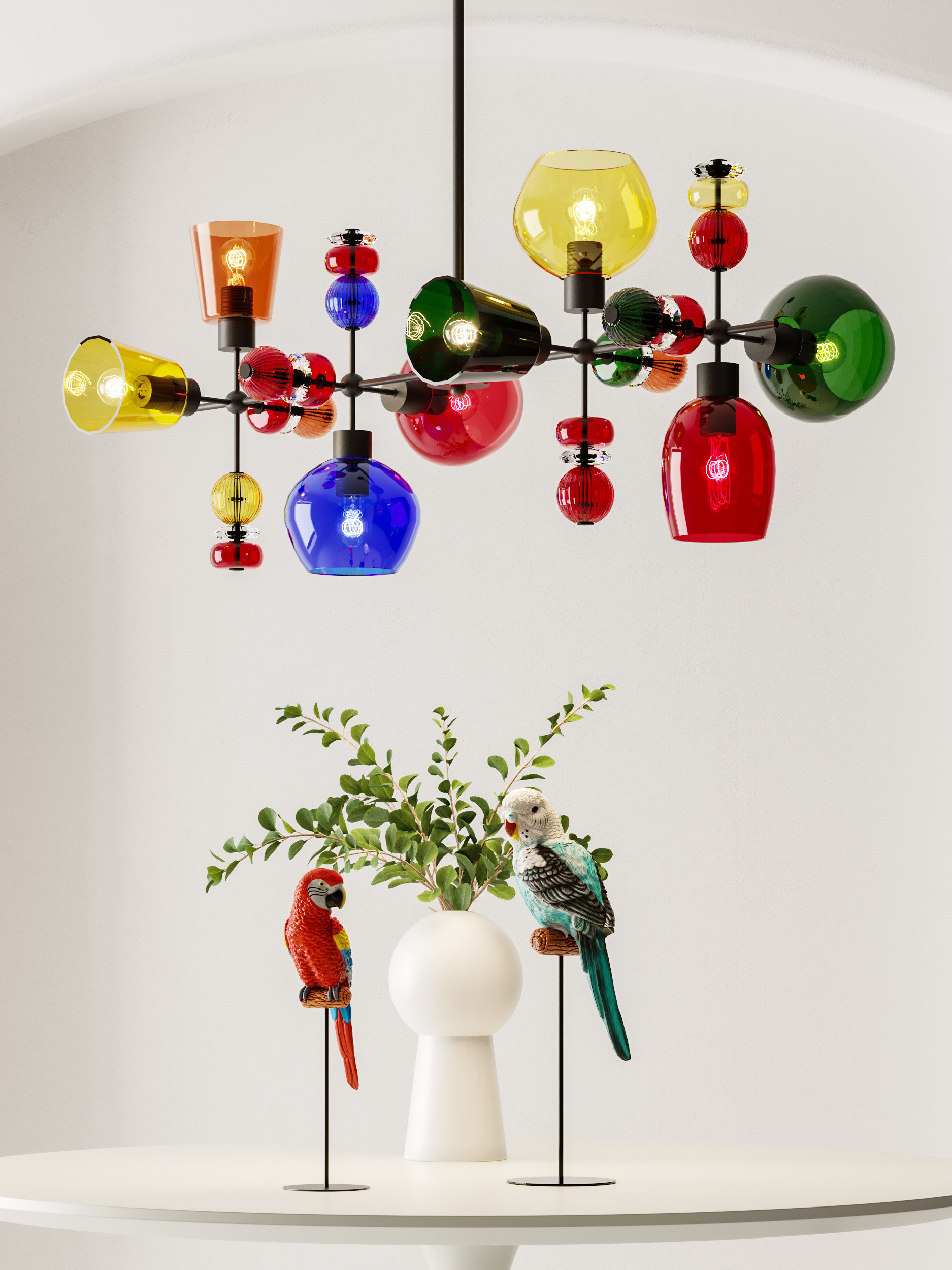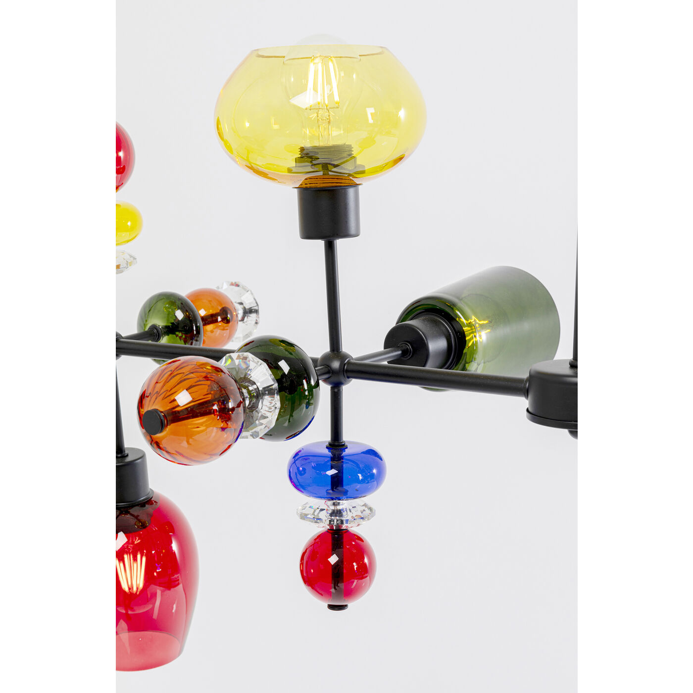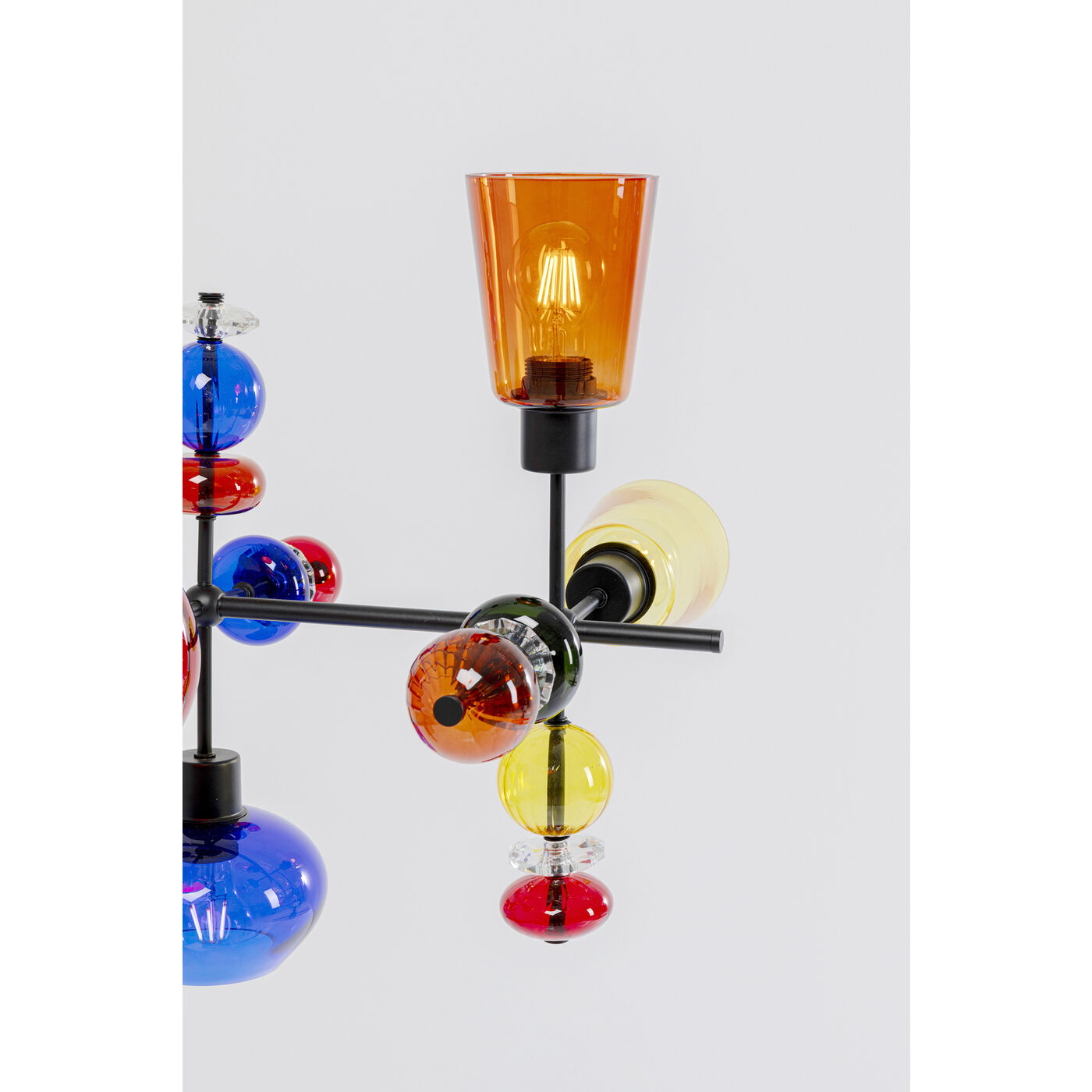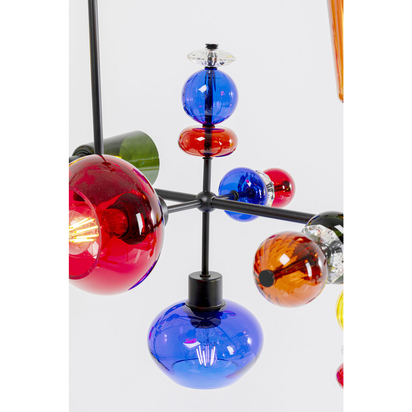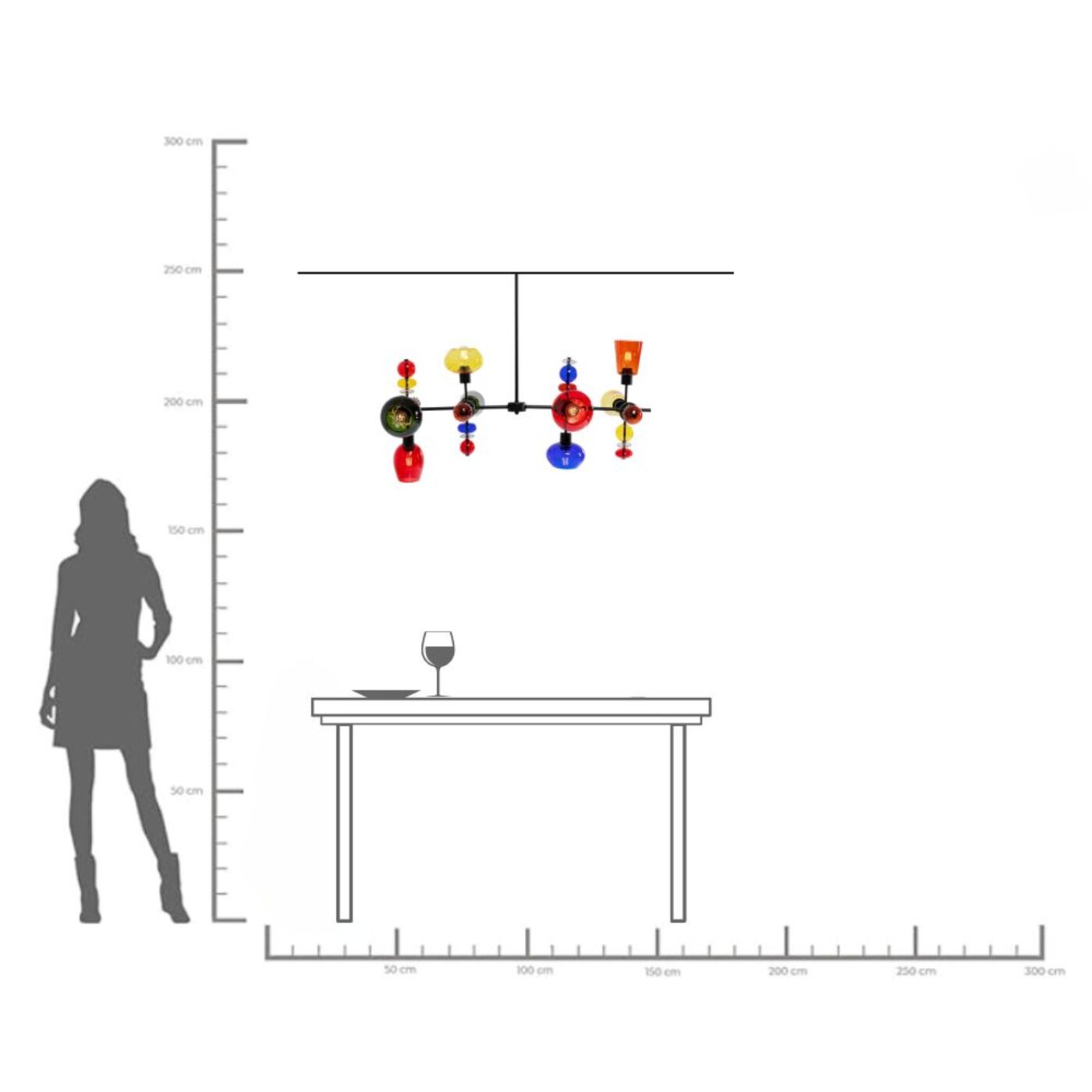 Die Leuchtenserie Mazzo überzeugt mit einem gekonnten Mix aus Farben und Formen und schwebt im Raum wie ein kunstvolles Perpetuum Mobile. Jedes Modell wurde individuell in Zusammenarbeit mit Glasmanufakturen gestaltet. Die Hängeleuchte vereint Design und Funktionalität auf einzigartige Weise. Mit den bunten Glasobjekten als Leuchtenschirme sorgt sie für eine individuelle Lichtquelle. Der moderne Stil wird durch die kreativen, bunten Glaskunstwerke unterstrichen. Mit Mazzo wird eine gemütliche Atmosphäre geschaffen und die Einrichtung auf ein neues Level gehoben - im Wohnzimmer, über dem Esstisch oder in der Leseecke. 230 V, 50/60 Hz, Fassung E27, Anzahl Leuchtmittel 8, max. 40 Watt, Leuchtmittel nicht inklusive, Leuchtmittel austauschbar