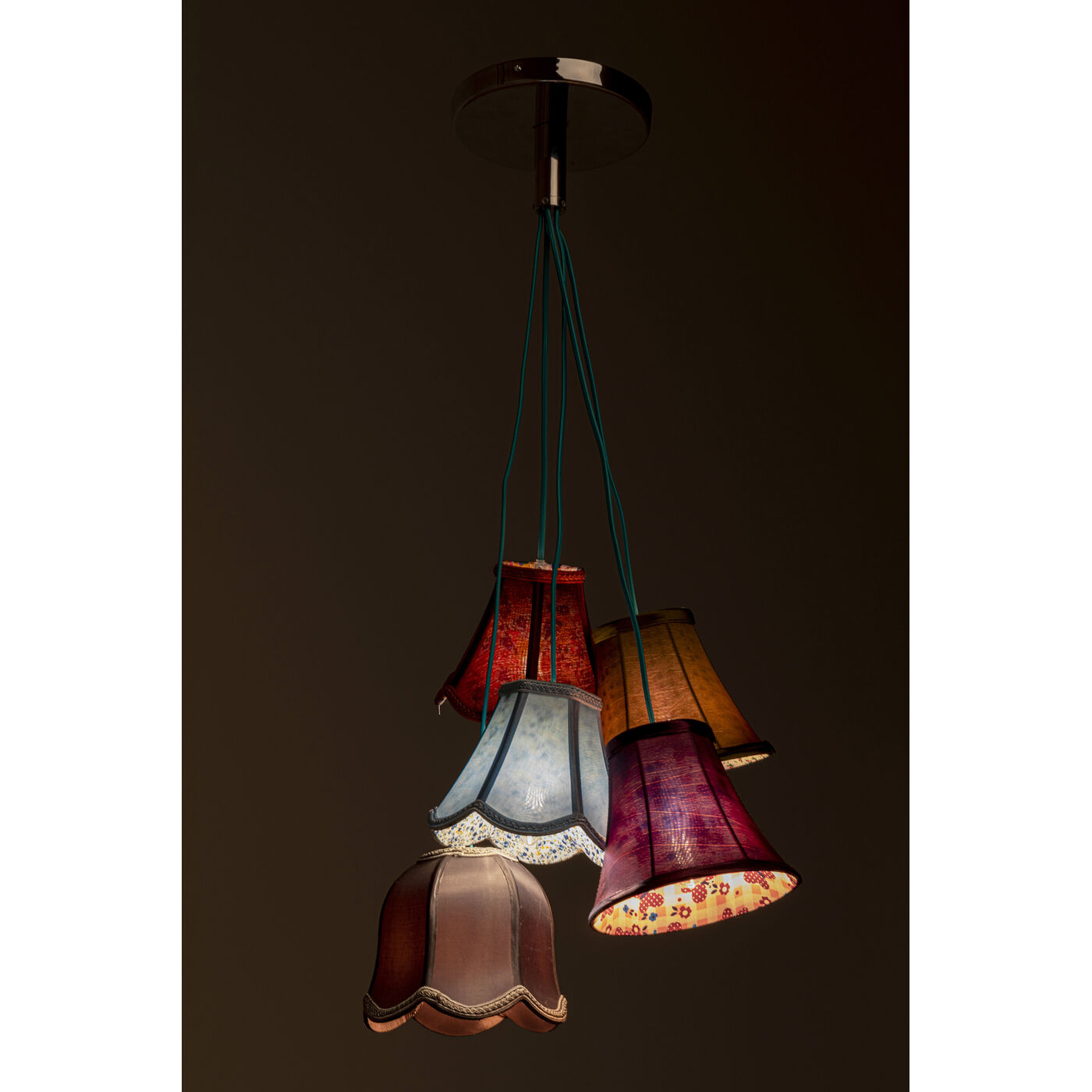 Ein Hauch Boho trifft auf nostalgischen Charme: Diese farbenfrohe Hängeleuchte bringt mit fünf individuell gestalteten Schirmen frischen Schwung ins Ambiente. Seidige Stoffe, florale Muster und harmonisch abgestimmte Farben schaffen eine warme, wohnliche Atmosphäre – ideal für gemütliche Stunden am Esstisch, über dem Sofa oder im Schlafzimmer. Als stilvoller Blickfang im Landhausstil oder spannender Kontrast zu klaren Linien und modernen Möbeln verleiht sie jedem Raum Charakter und Lebendigkeit. Hängeleuchten wie diese sind nicht nur Lichtquelle, sondern auch Ausdruck von Lebensfreude und Sinn für das Besondere. 230 V, 50/60 Hz, Fassung E14, Anzahl Leuchtmittel 5, max. 25 Watt, Leuchtmittel nicht inklusive, Leuchtmittel austauschbar