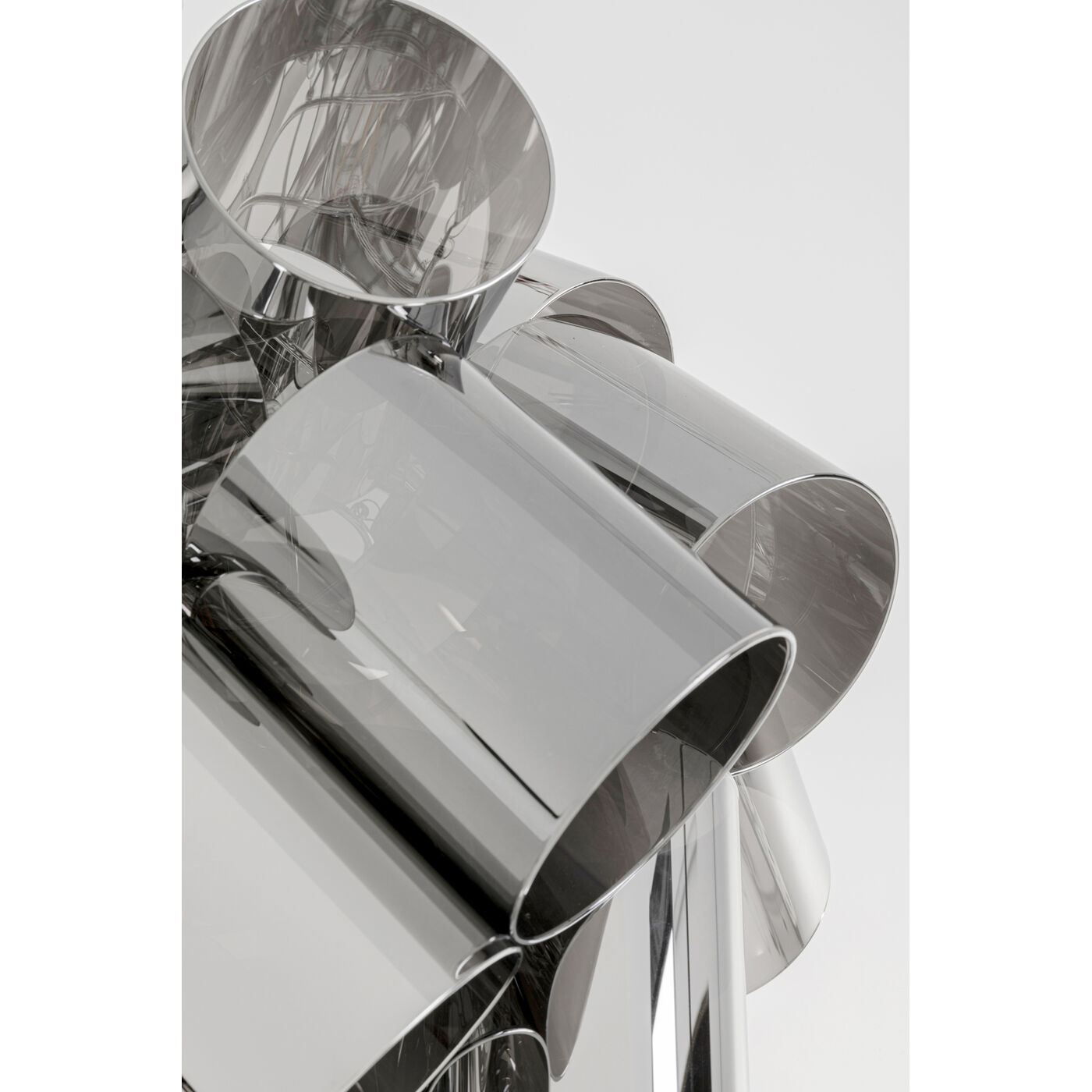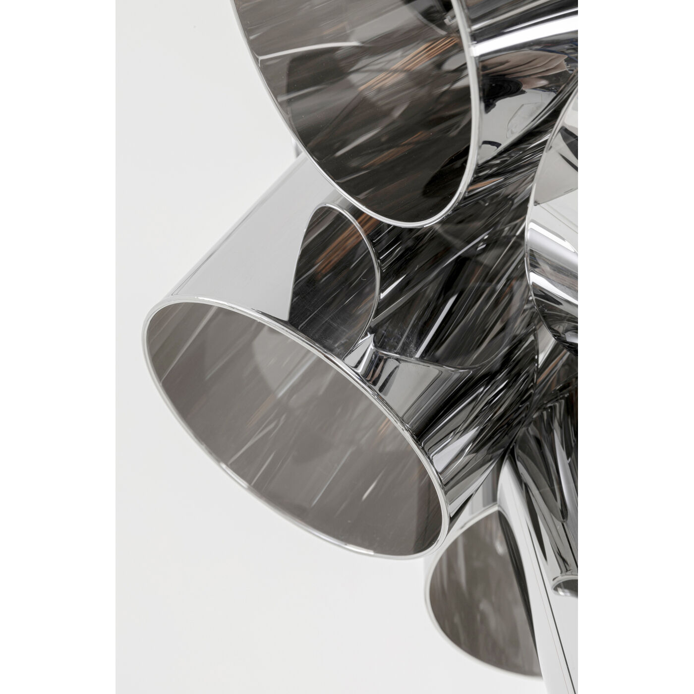 Gestell: Stahl verchromt, Schirm: Glas beschichtet, 150 cm Kabellänge, 12 x 10 x 10 cm Schirm, 2,50 x 12 x 12 cm Baldachin, 196 - 50 cm höhenverstellbar, Kabel kunststoffummantelt, teilzerlegt,