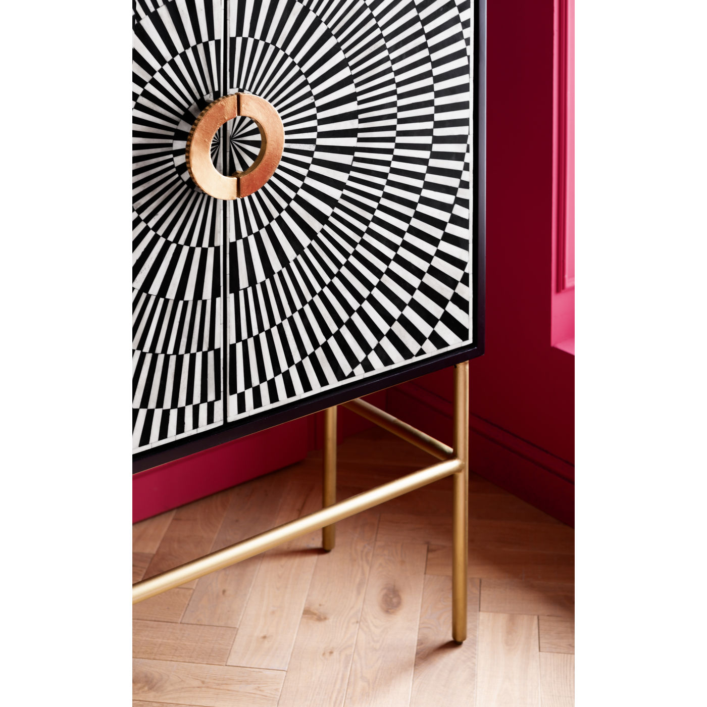 - Magic: Die Türfronten sind mit Intarsienarbeiten in Schwarz und Weiß in bester Handwerkstradition gearbeitet. Jedes Stück ein Unikat