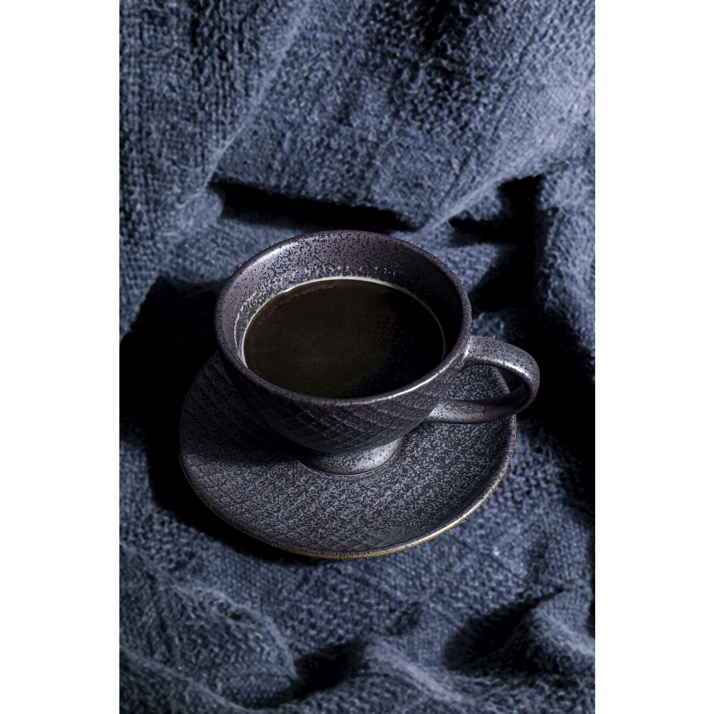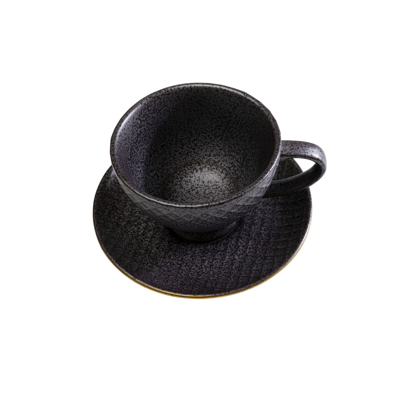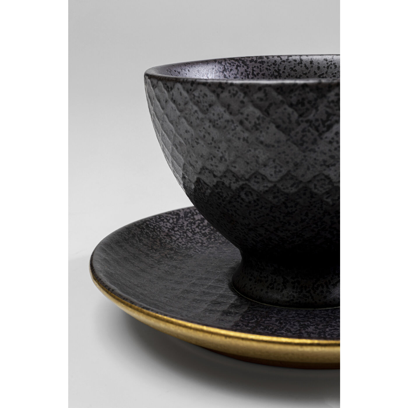 - Set aus Kaffeetasse unter Untertasse in Schwarz mit Gold, 7.5 x 13.5 x 10 Zentimeter (H/B/T)