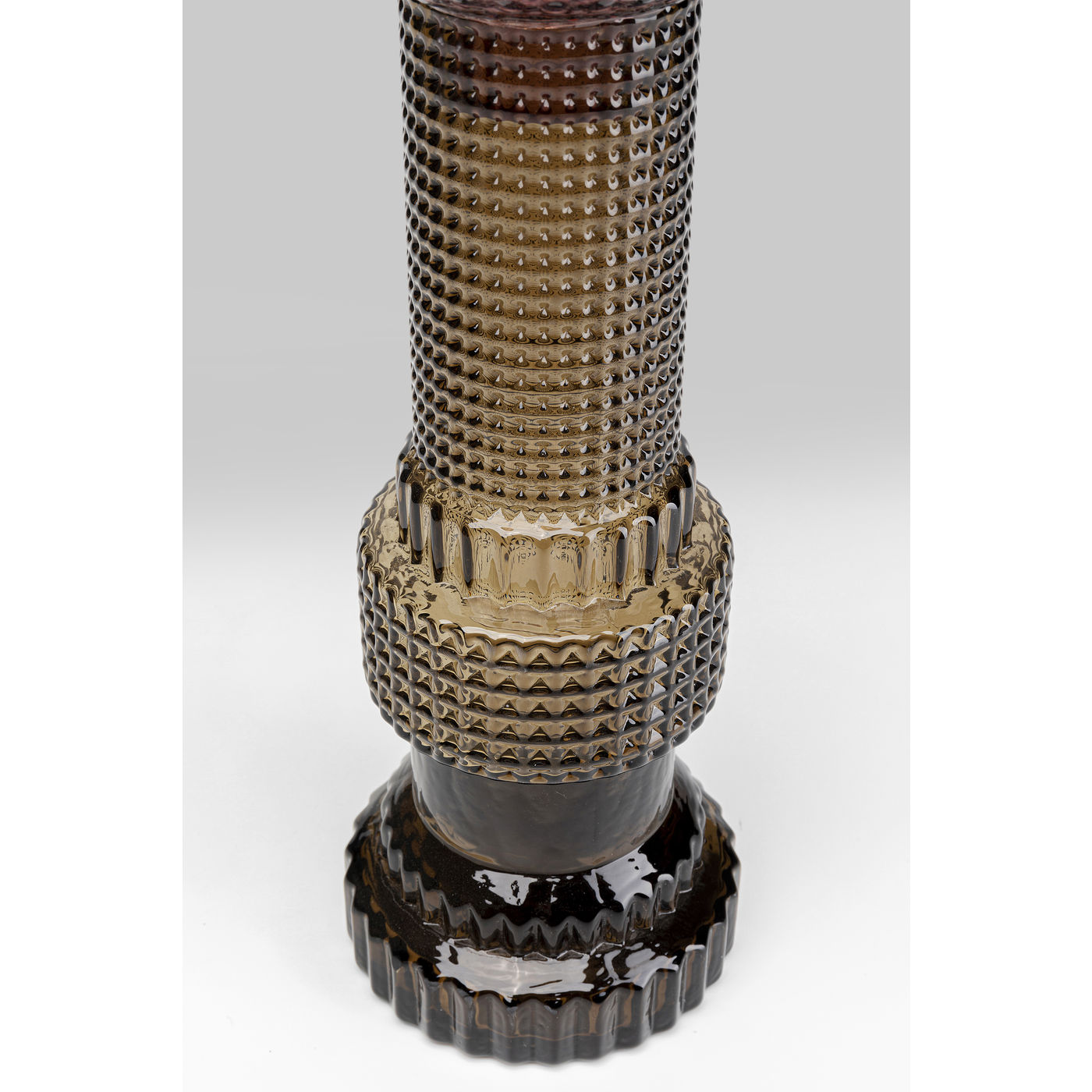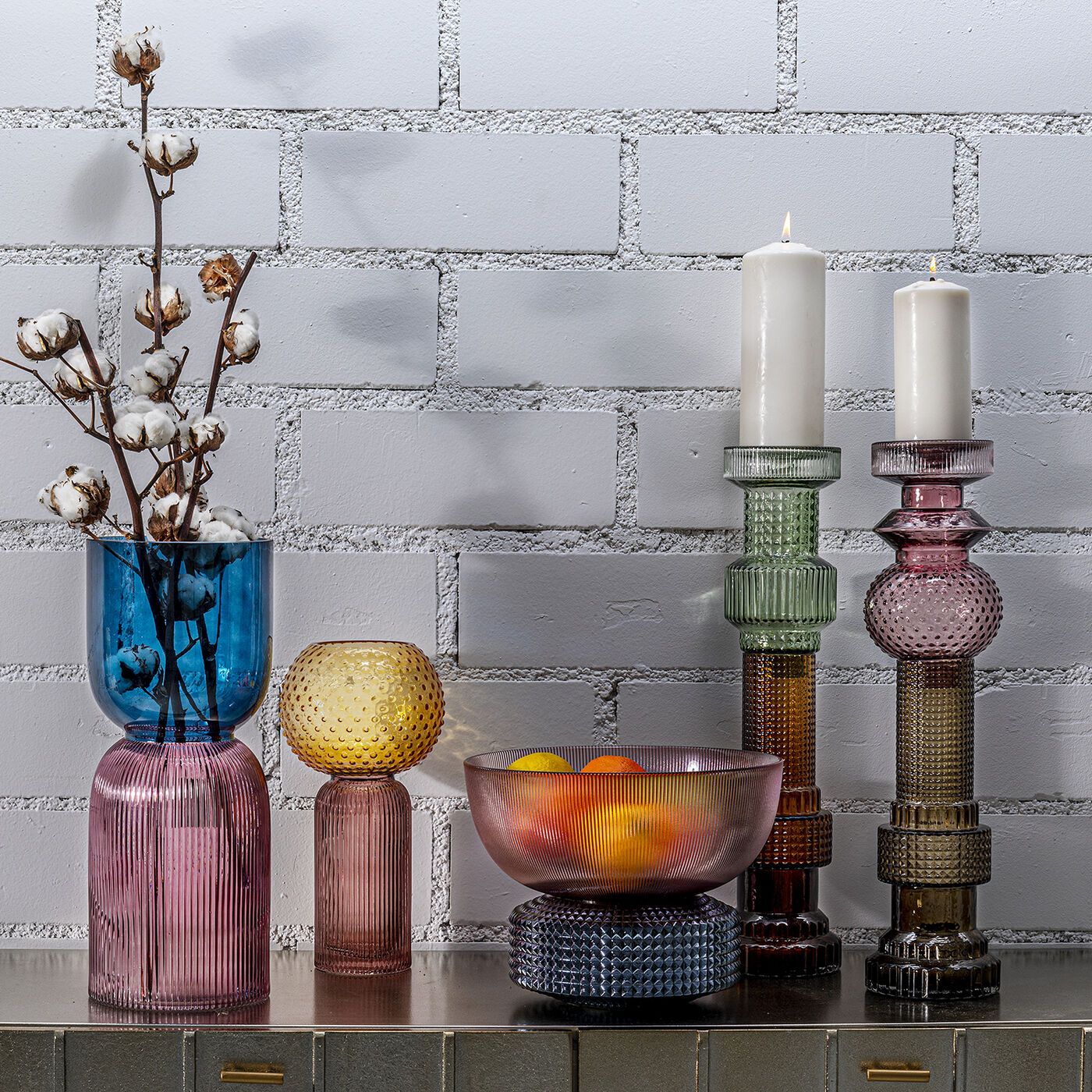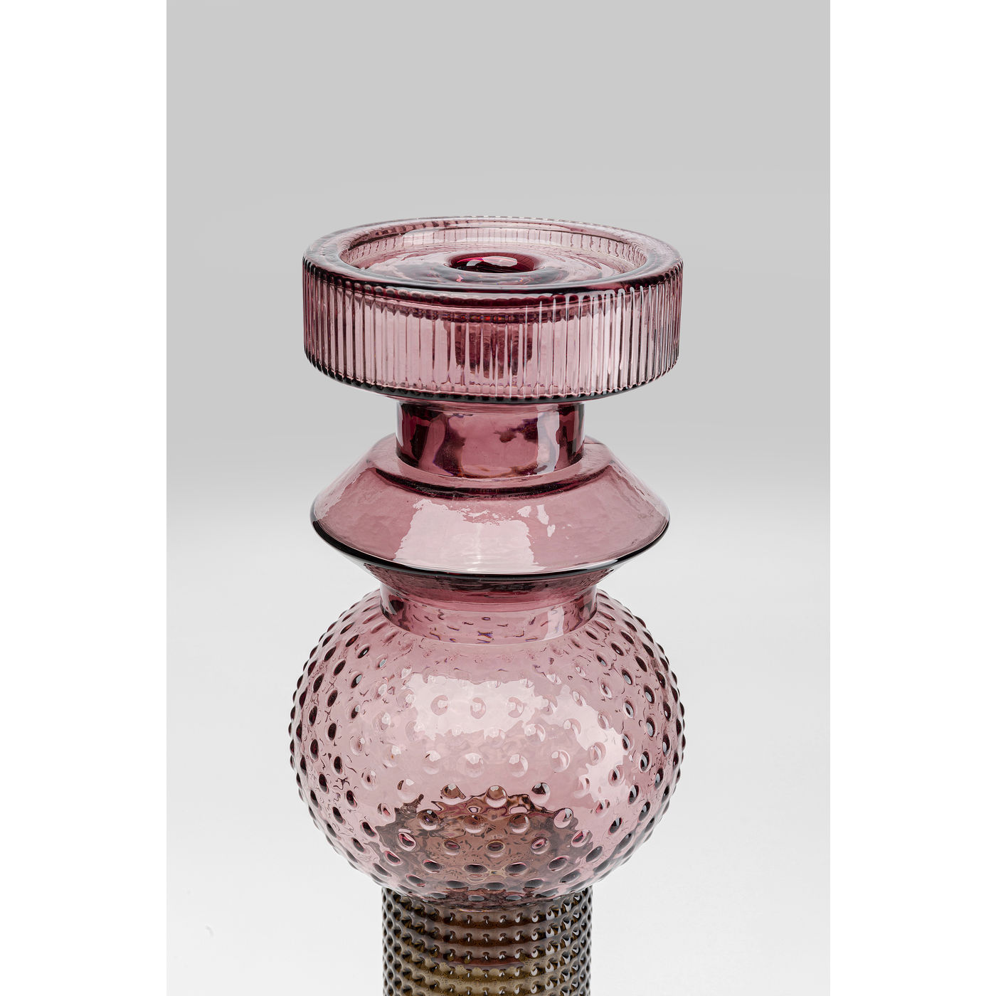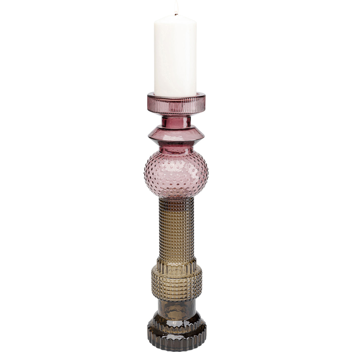 - Hoher Kerzenhalter aus unterschiedlich farbigem und geprägtem Glas in Grün-Grau und Lila-Rosé für Stumpenkerzen