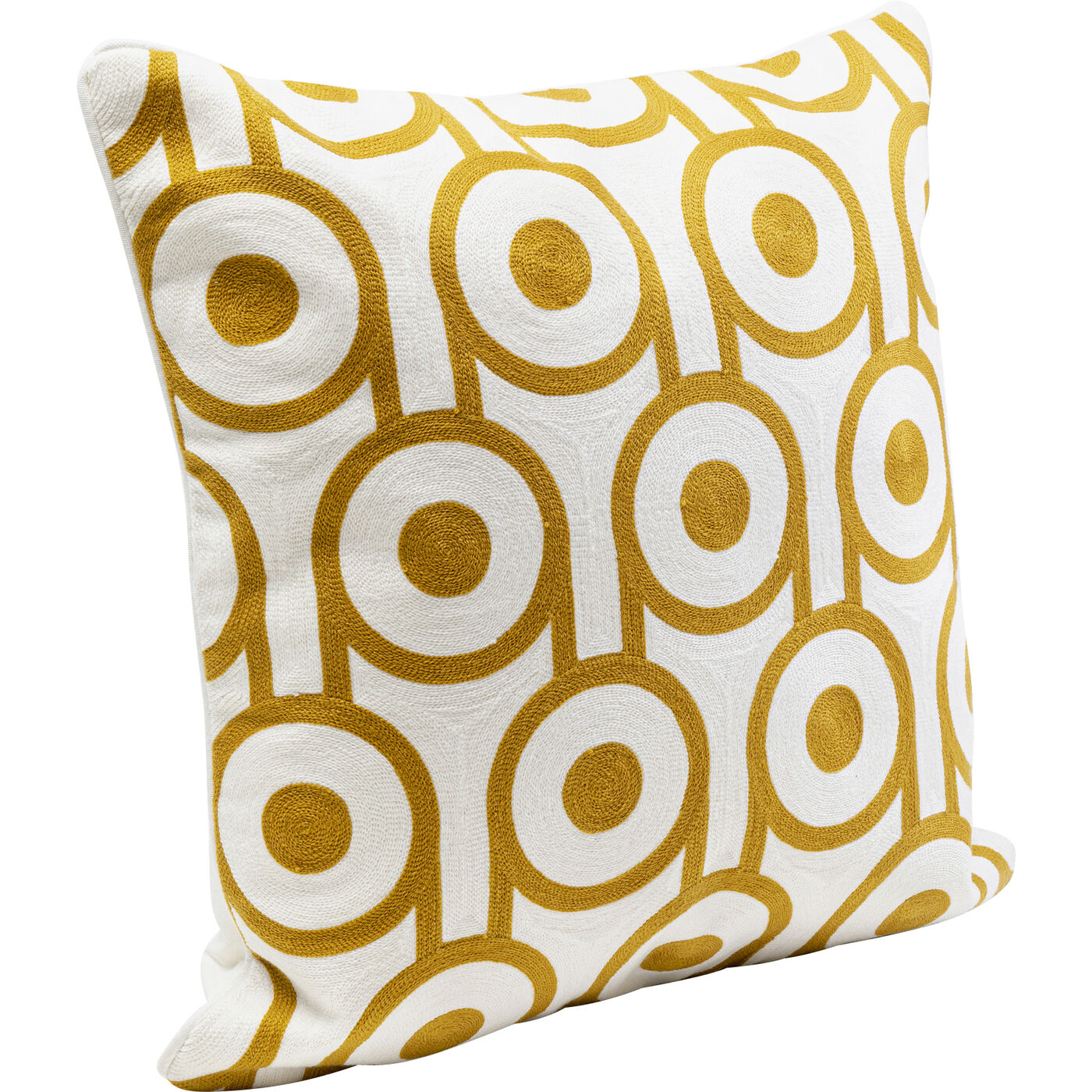 - Quadratisches Sofa-Kissen mit grafischem Muster in Weiß und Gelb in den Maßen 50x50 Zentimeter