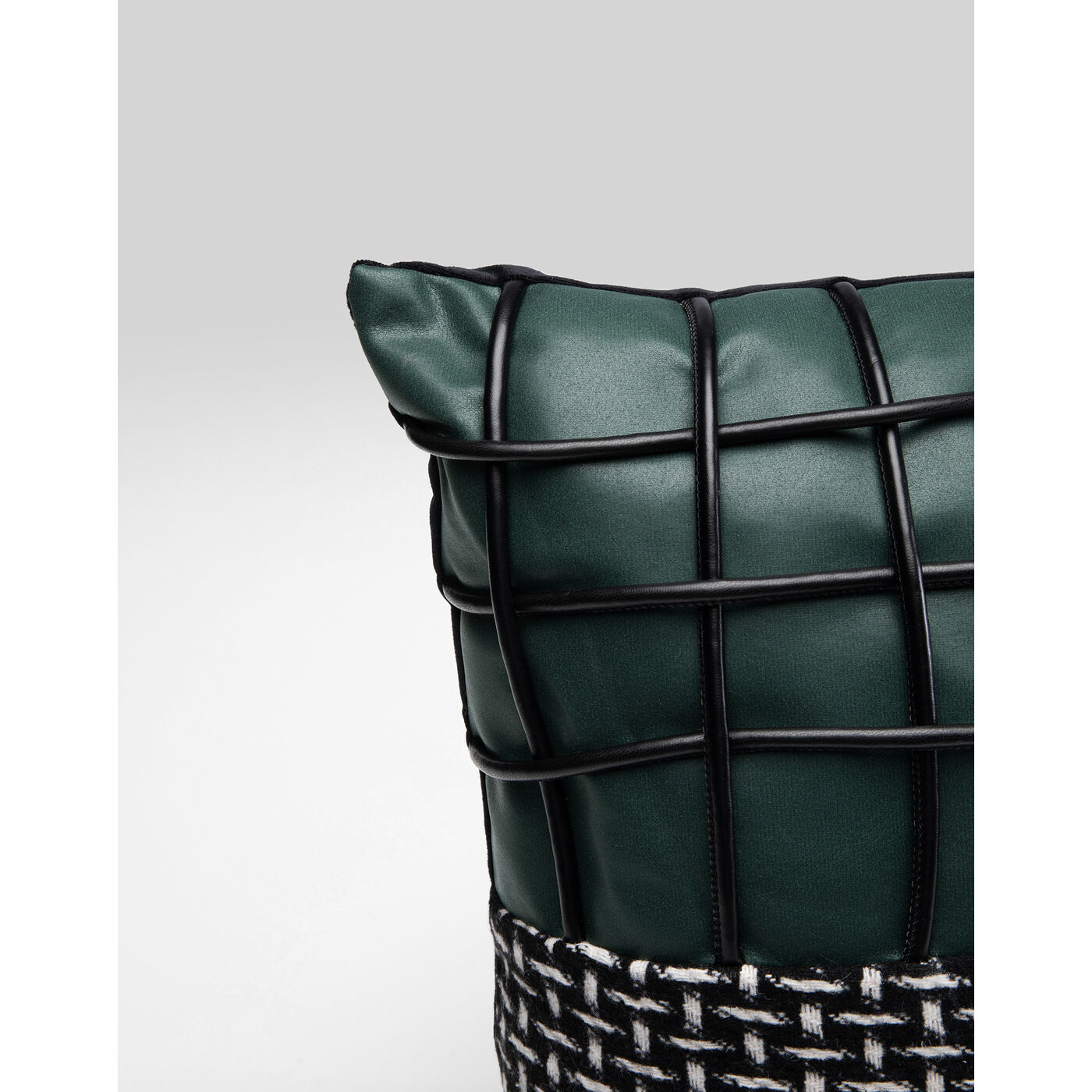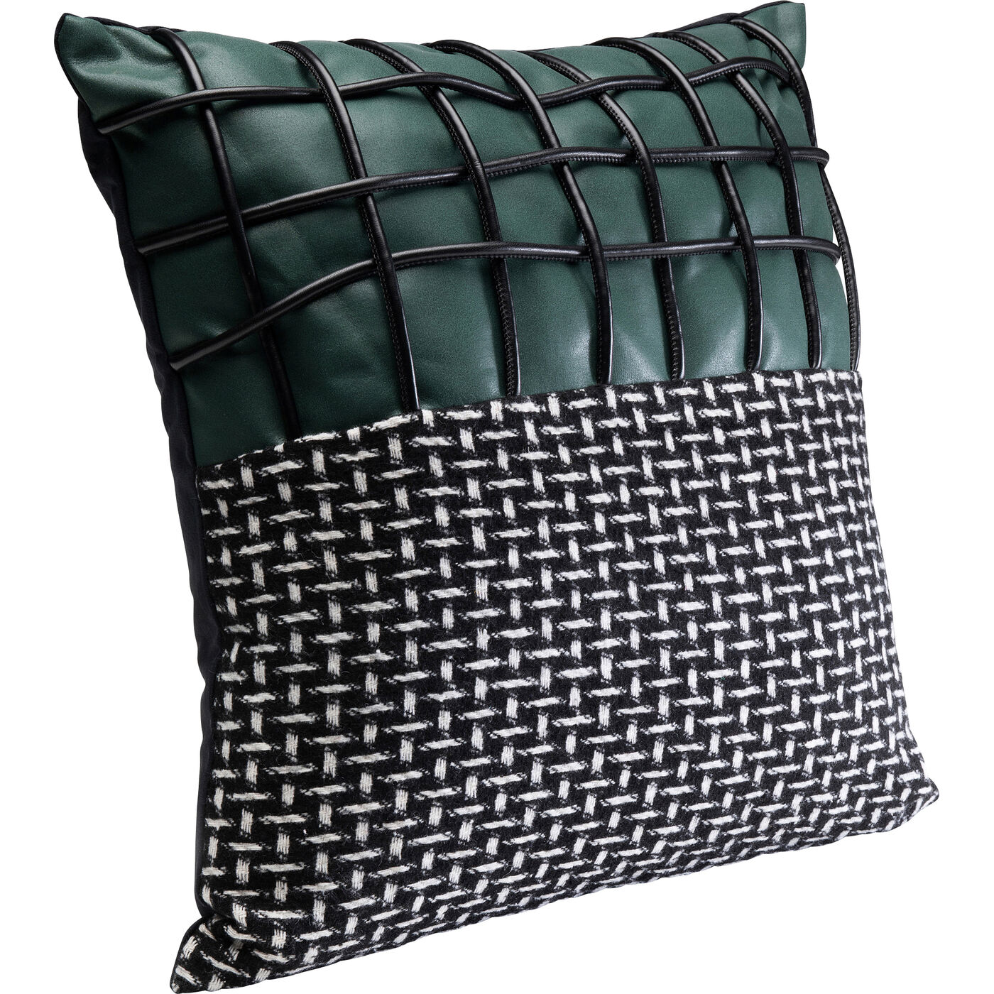 - Luxuriöses Kissen mit Struktur-Mix in Schwarz-Weiß und Grün, 45 x 45 x 10 Zentimeter (H/B/T)