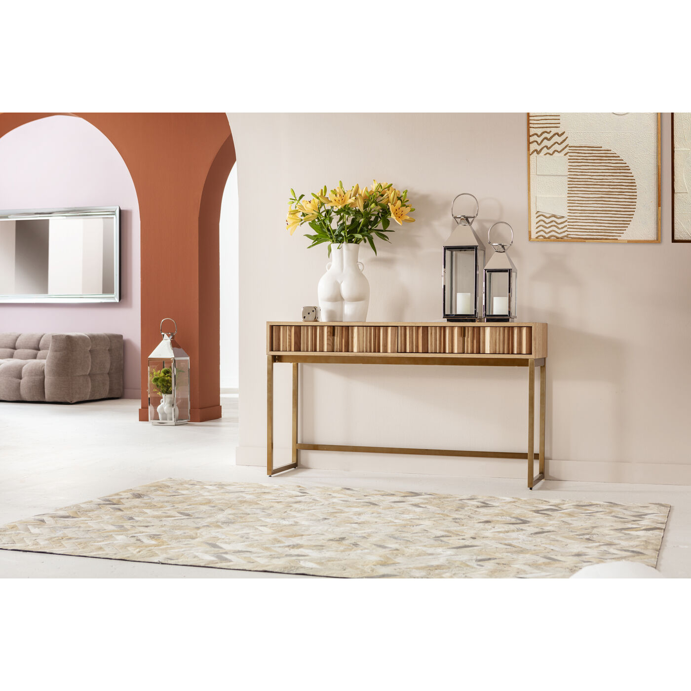 Der renommierte dänische Möbeldesigner Morten Georgsen hat das Design der Kollektion Concertina exklusiv für KARE entwickelt. Der Meister des dänischen Minimalismus verwendet klare Linien und kombiniert sie mit Holz zu hochwertigen Möbelstücken. Sowohl haptisch als auch optisch besonders aufregend sind bei dieser Konsole die handgefertigten Fronten der Schubladen. Das Spiel mit Licht und Schatten, Höhen und Tiefen, Holz und Metall verleiht dem Konsolentisch einen eigenständigen Charakter. Trotz des verspielten Umgangs mit dem Werkstoff Holz folgt die Konsole klaren Linien und Formen und passt deshalb sowohl in moderne als auch nordisch inspirierte Einrichtungskonzepte.