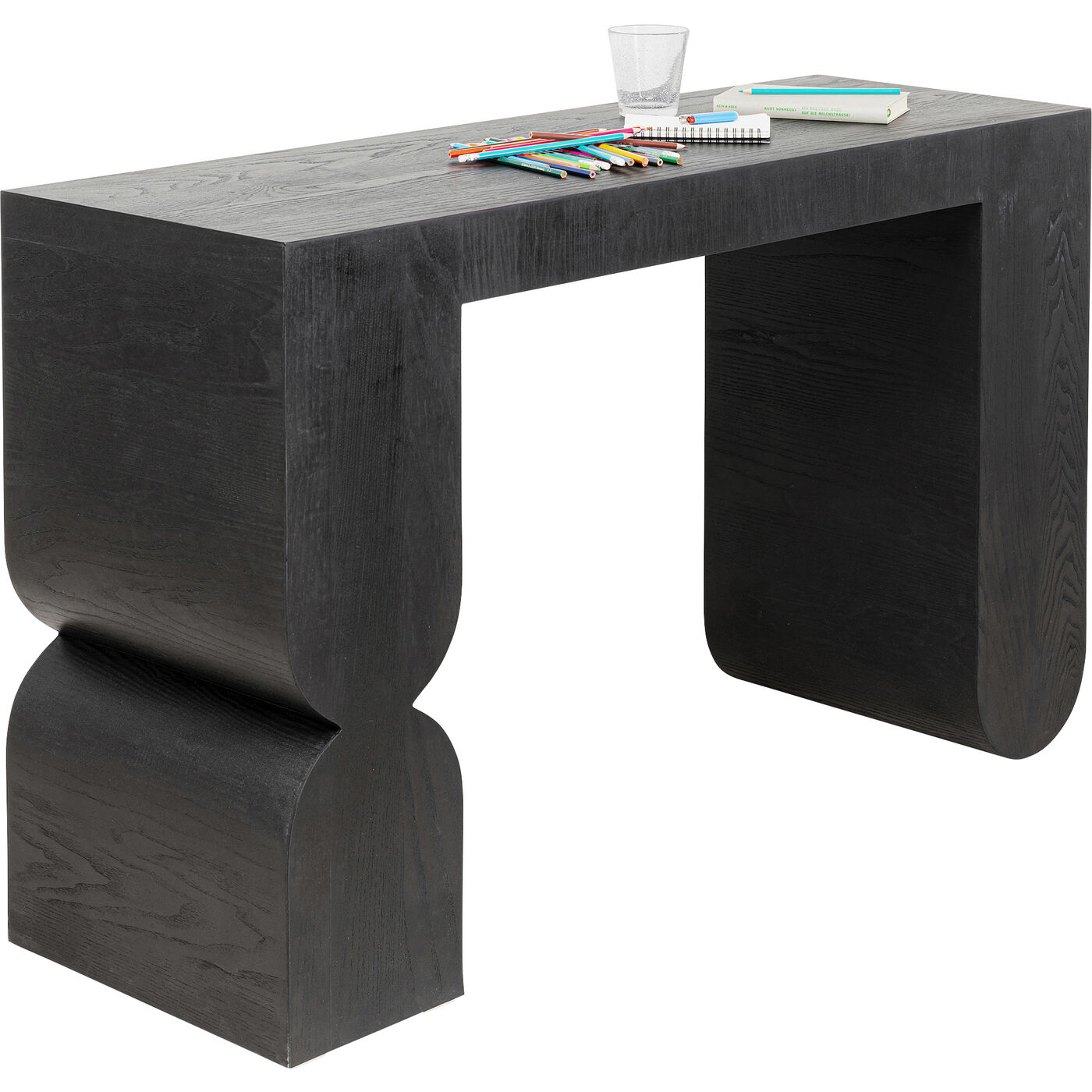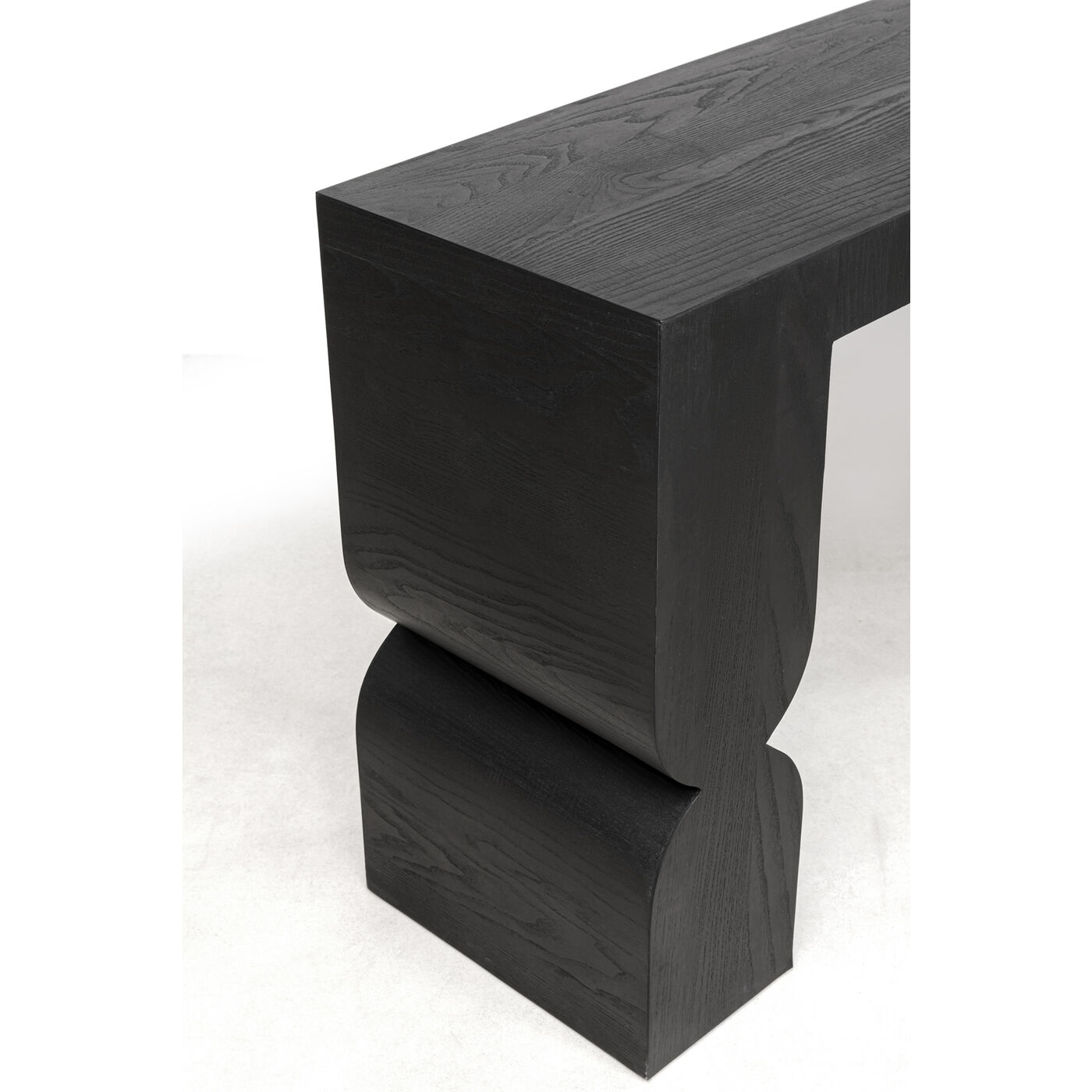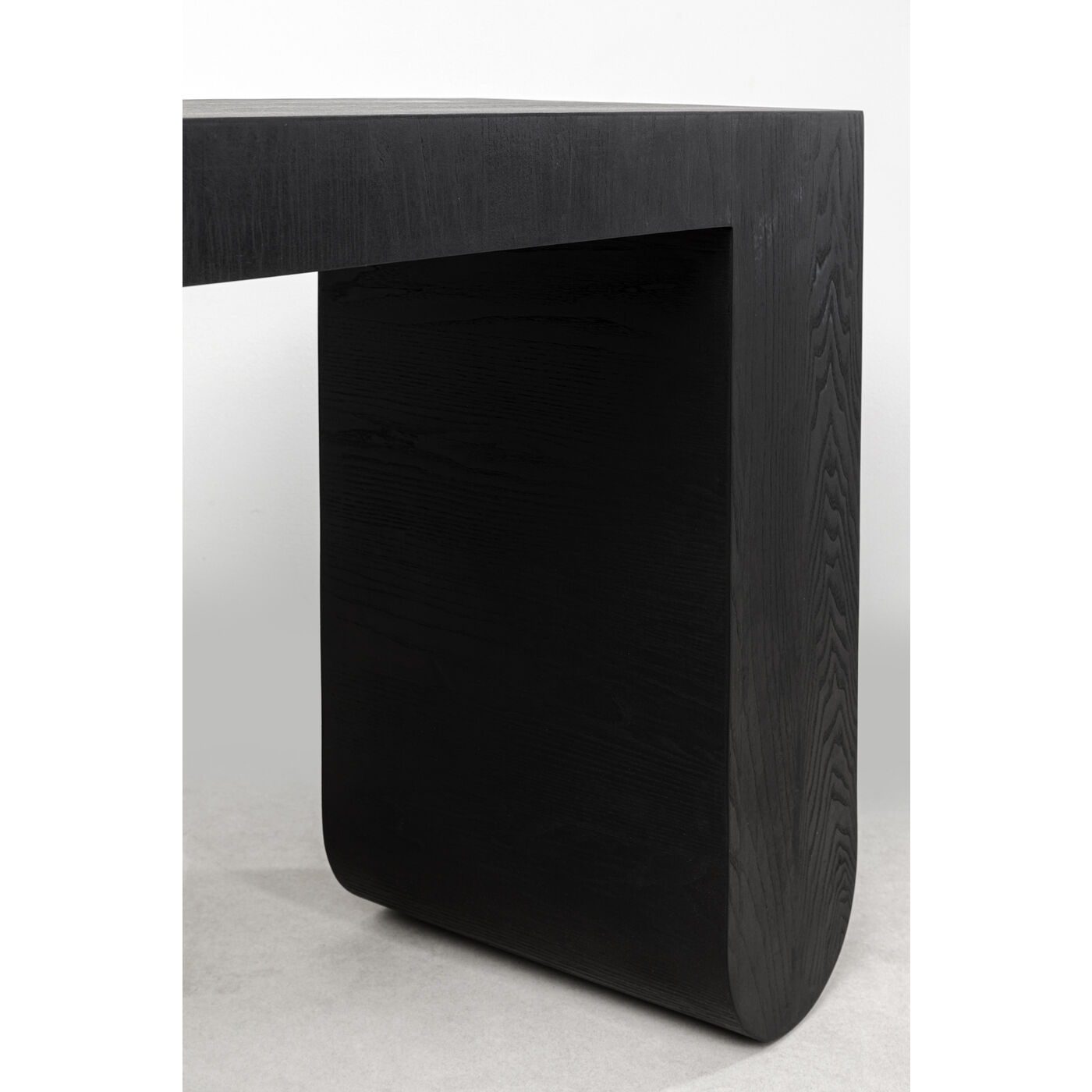 Die schwarze Konsole Curve mit Esche- Furnierholz ist ein zeitloses Möbelstück, das in jedem Raum eine stilvolle Atmosphäre schafft. Mit ihrer skulpturalen Formgebung ist sie der Inbegriff für individuelle Wohnideen. Großer Produktvorteil ist zudem, dass die Tischkonsole fertig montiert geliefert wird. Ob im Flur, Wohnzimmer oder Schlafzimmer - der Konsolentisch Curve ist in jedem Raum ein ganz besonderer Eyecatcher.