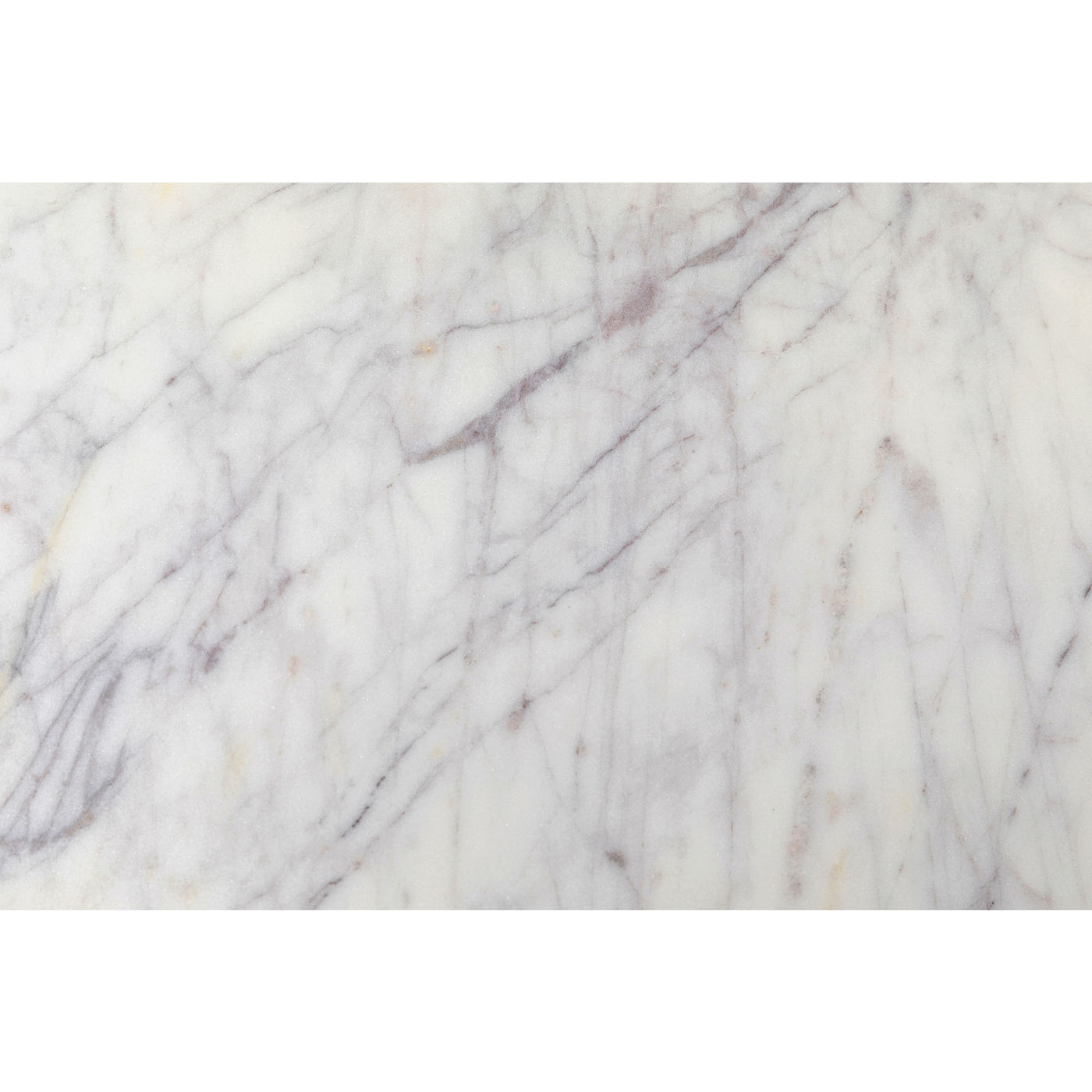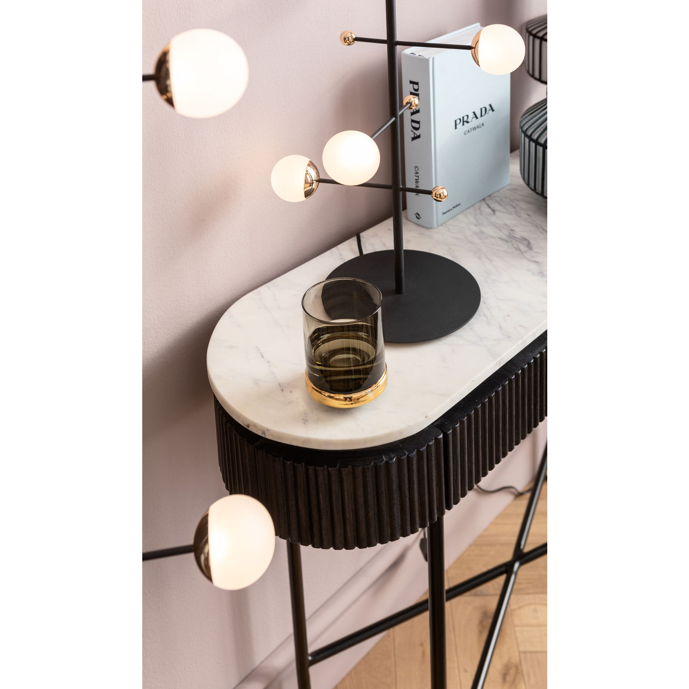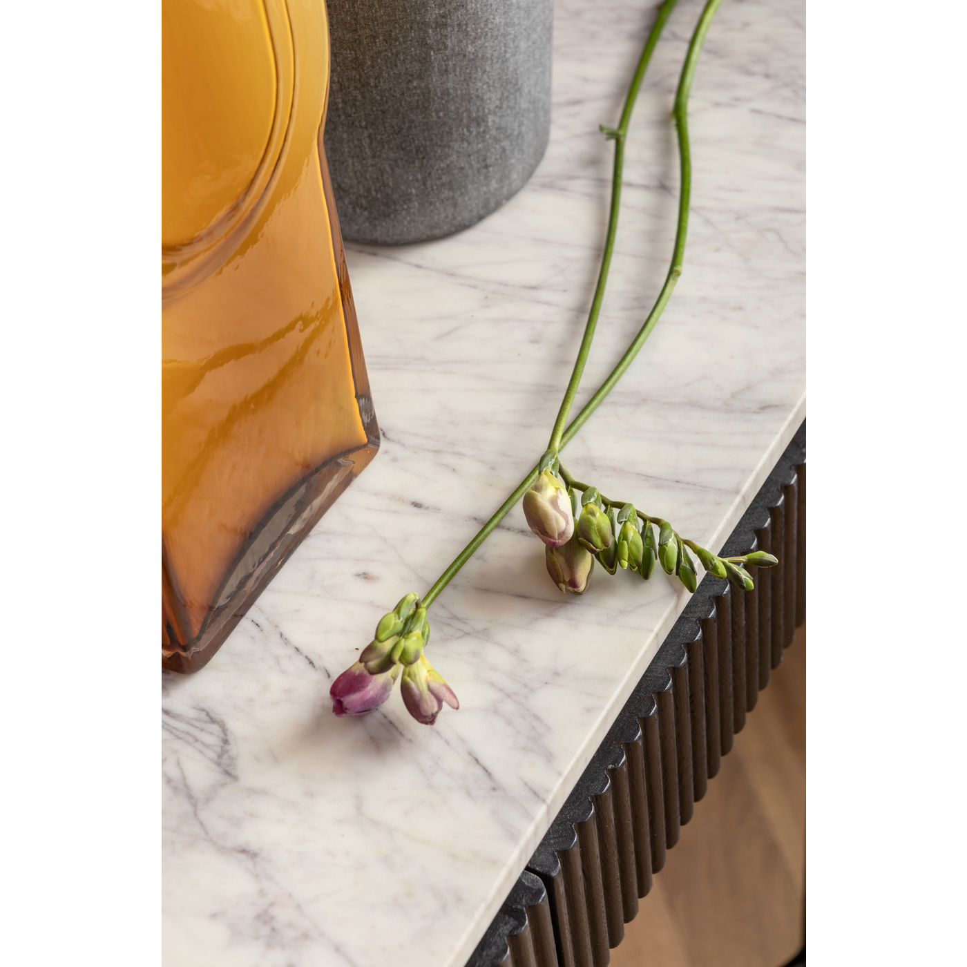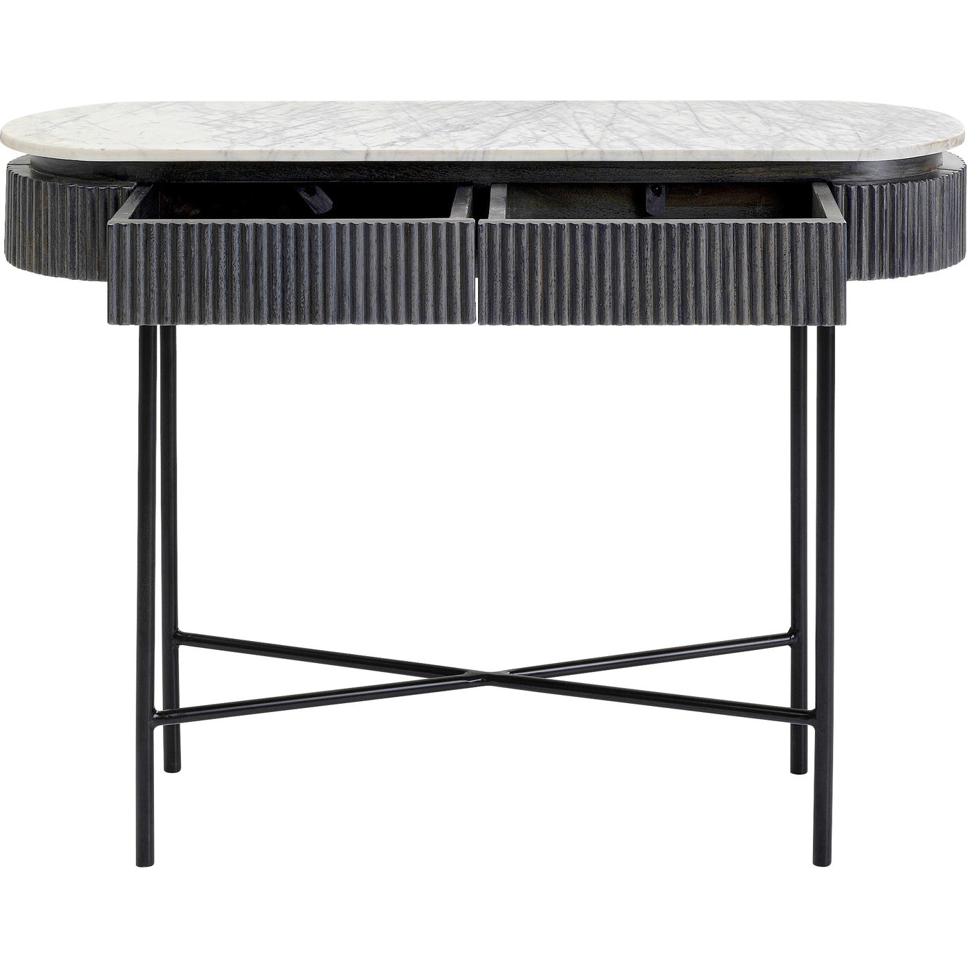 - Spielt mit dem Schwarz-Weiß-Kontrast: elegante Flurkonsole mit heller Marmorplatte und dunkelgrauem Massivholz-Korpus auf filigranem Stahlgestell in Schwarz