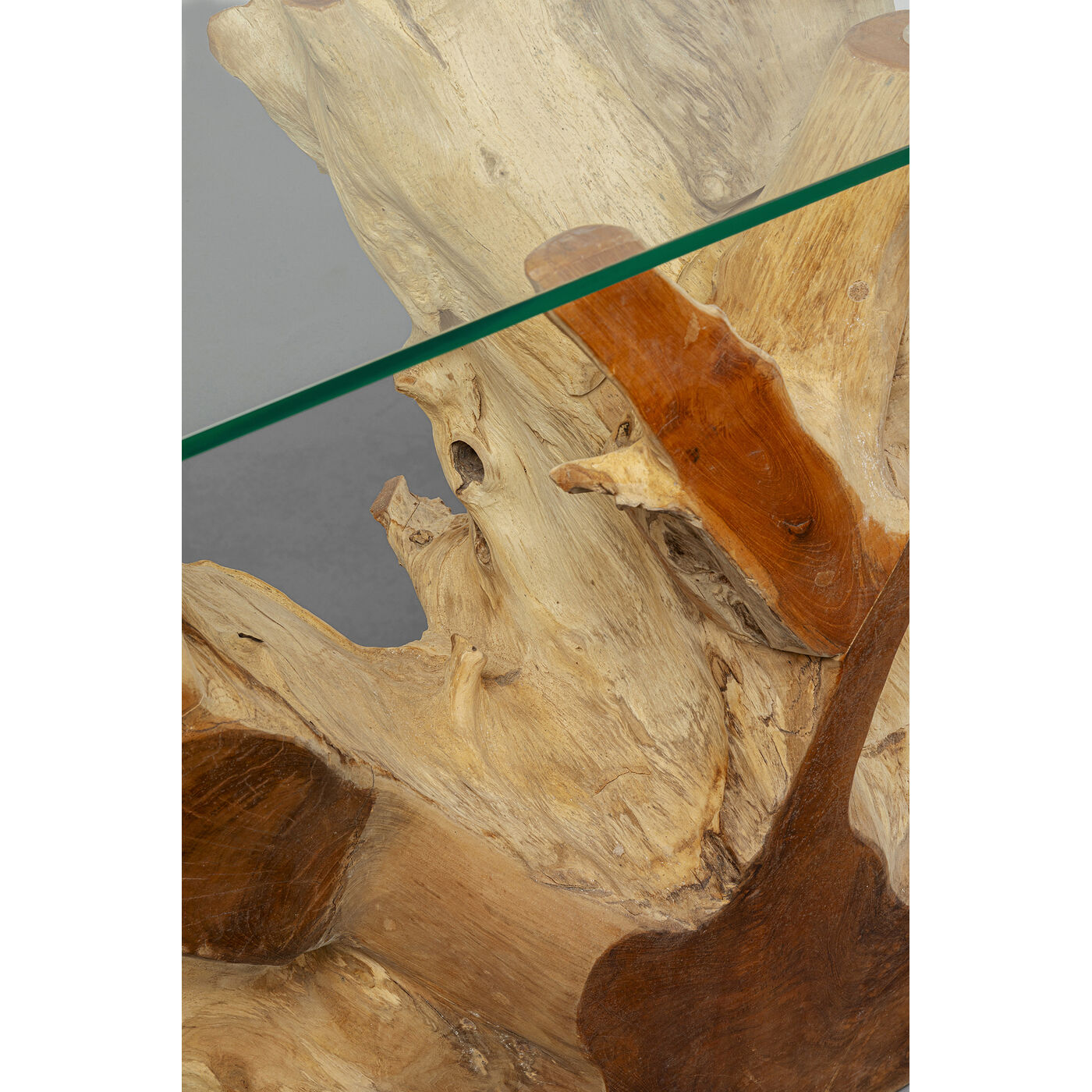 Die Konsole Roots verbindet natürlichen Charme mit moderner Eleganz. Das wurzelförmige Holzgestell aus naturbelassenem Teak-Holz trägt eine 1 cm dicke Glasplatte: Eine einzigartige Kombi, die in jedem Raum sofort für eine extravagante Note und einen echten Wow-Effekt in Ihrem Zuhause sorgt. Ein Interior Highlight, das die Herzen aller Exzentriker höher schlagen lässt!