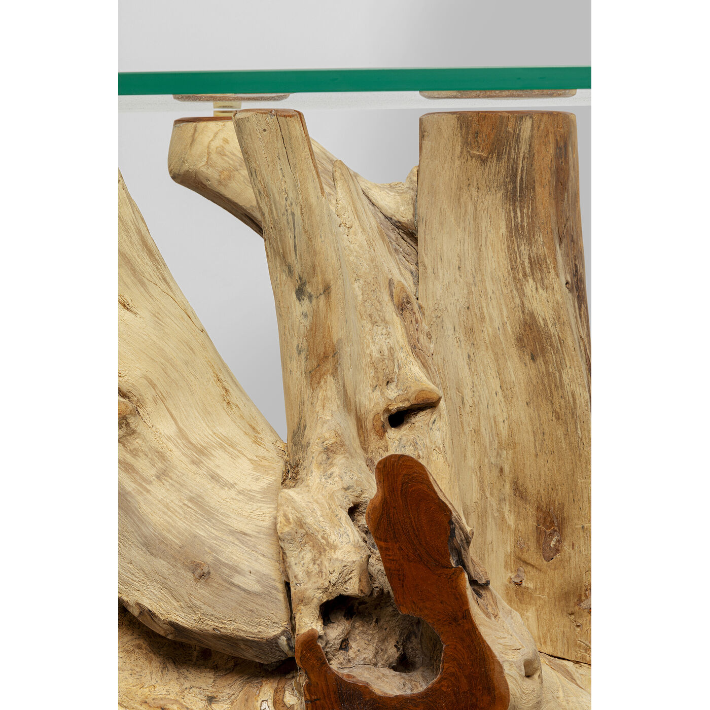 - Das Wurzelgestell und die Glasplatte als konträre Kombi machen den Konsolentisch zum Showpiece im Flur oder Wohnzimmer