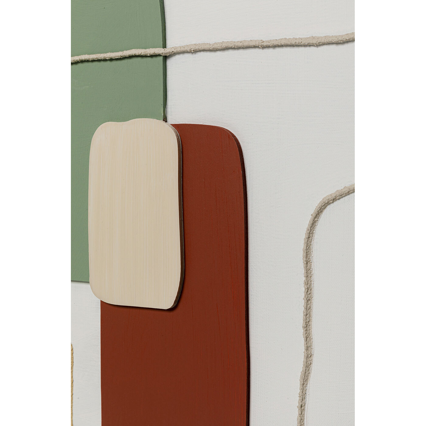 - Das Wandbild begeistert mit abstrakten Motiven und Formen in gedeckten, hellen Farben