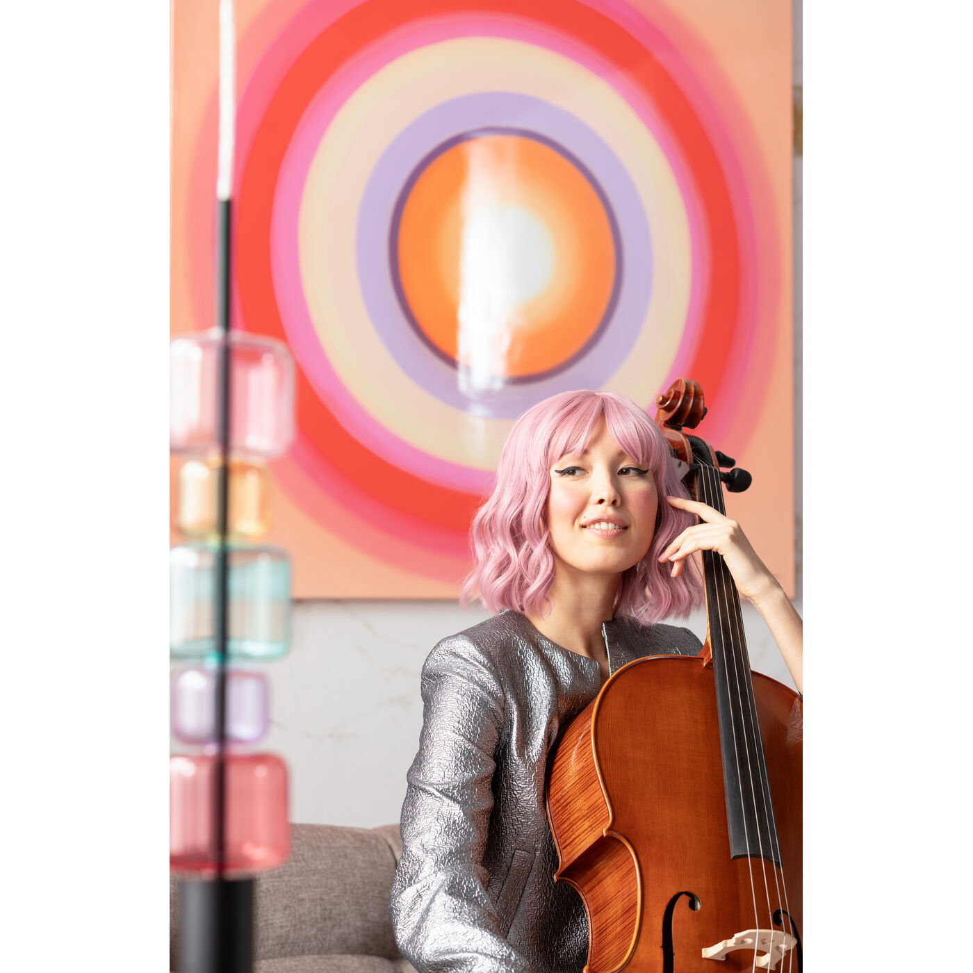 - Quadratisches Leinwandbild in Rosa, Orange und Lila, 120 x 120 x 3.5 Zentimeter (H/B/T)