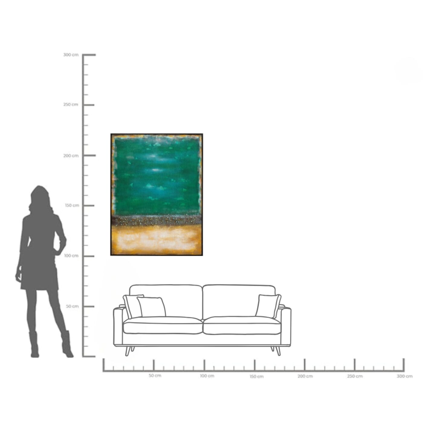 - Abstraktes Leinwandbild in Grün im Hochformat, 122 x 92 x 4.8 Zentimeter (H/B/T)