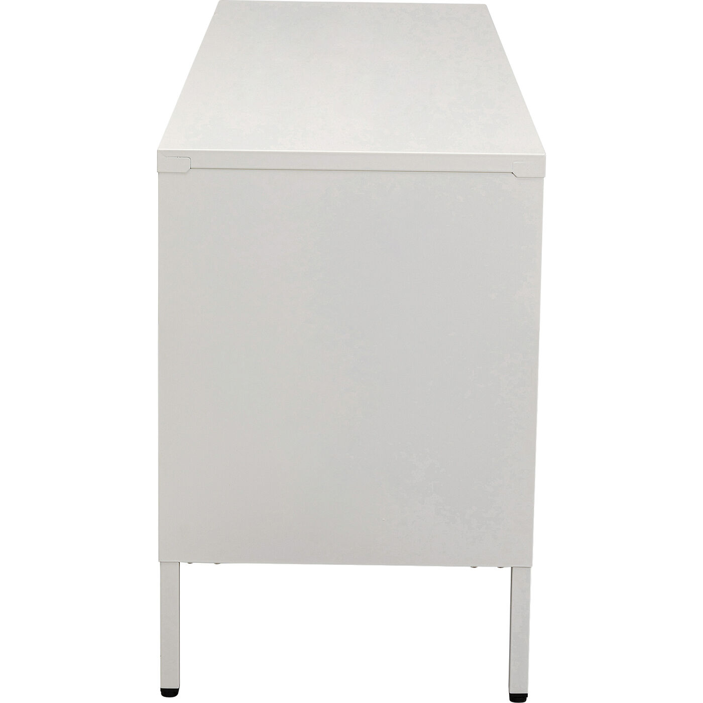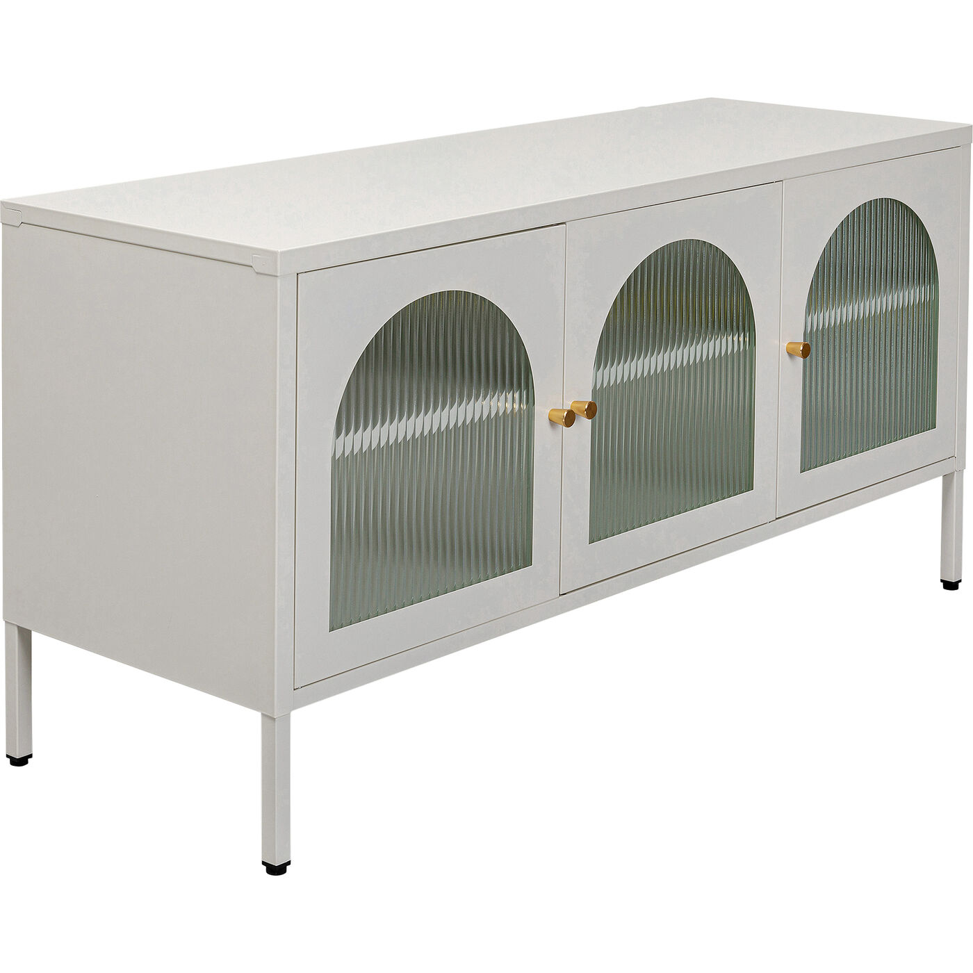 - Weißes Lowboard mit Glaselementen und goldenen Details, 60 x 120 x 40 Zentimeter (H/B/T)