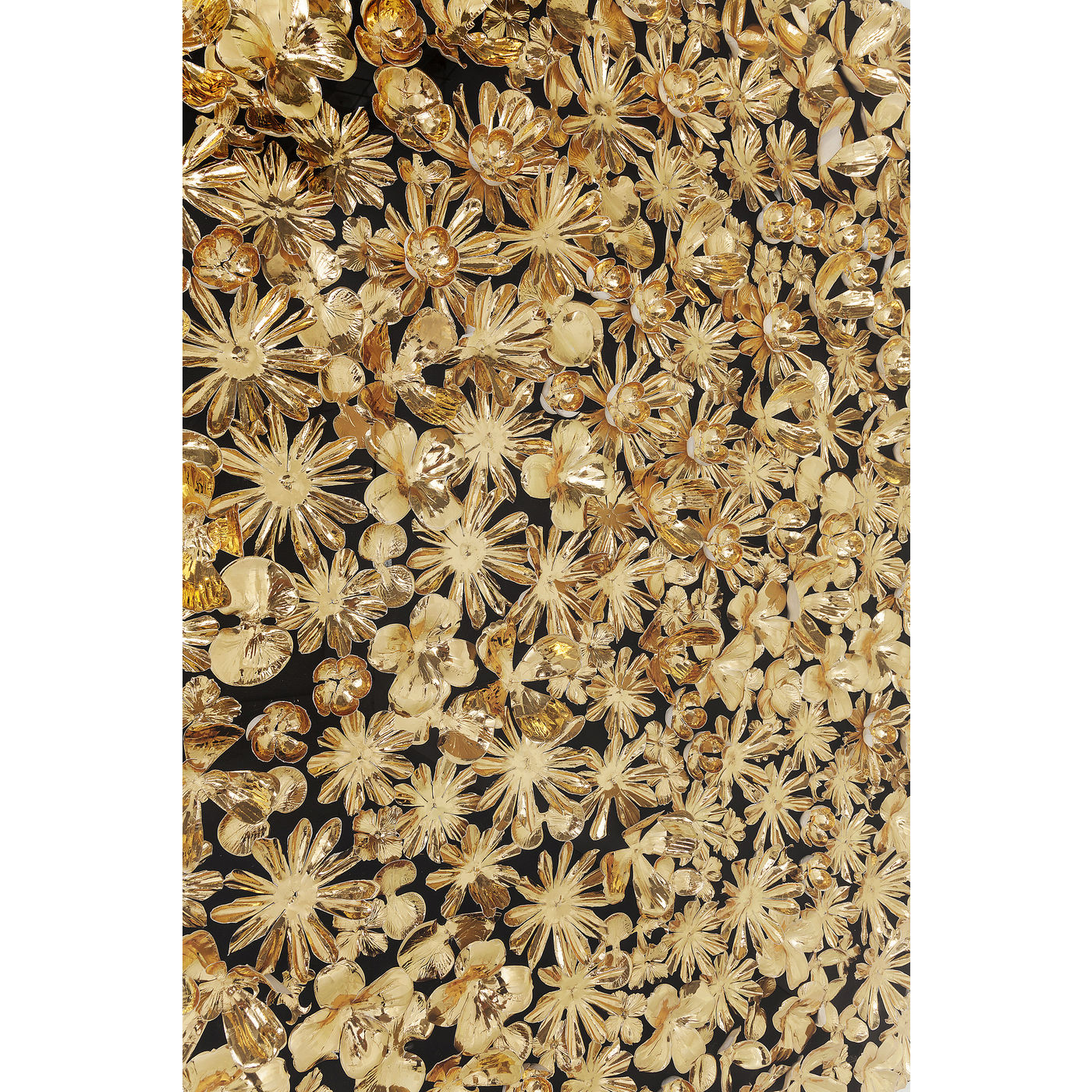 - Dreidimensionales, quadratisches Wandbild mit einem Meer aus goldfarbenen Blüten auf schwarzem Grund