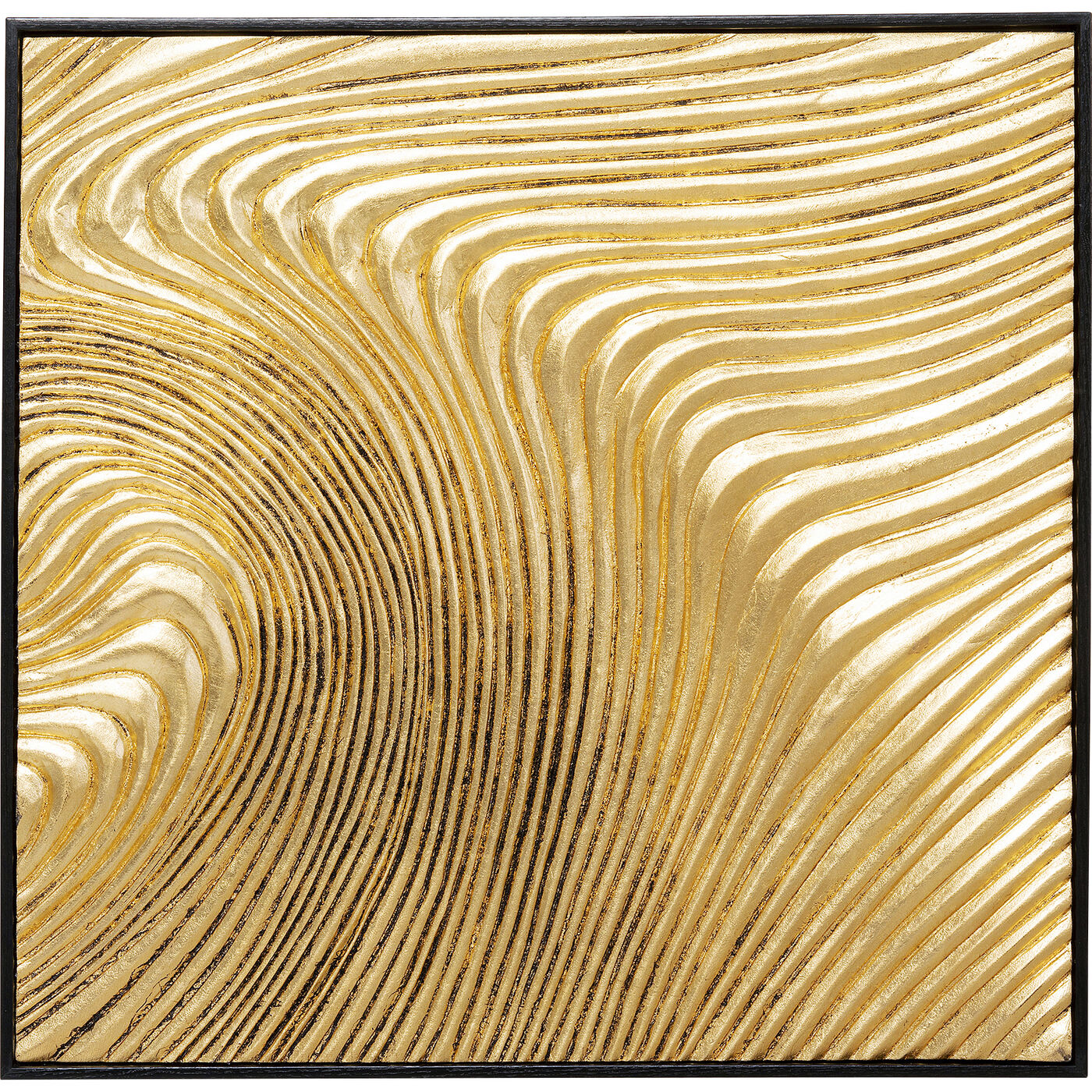 Das Objektbild Wave Gold ist ein Set bestehend aus zwei hochwertigen Wandbildern im modernen Wellenmuster. Die abstrakte und plastische Oberfläche verleiht den Bildern Tiefe und Dimension. Der Rahmen besteht aus robustem Pinie Massivholz und ist in schwarz lackiert. Durch die vormontierten Bilderhaken ist eine einfache Wandmontage gewährleistet. Jedes Stück ist handgearbeitet und somit ein einzigartiges Unikat für Ihre Wanddekoration.