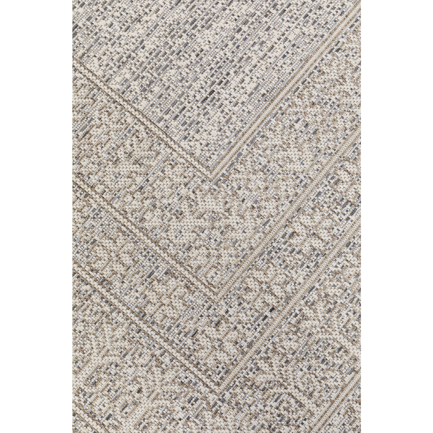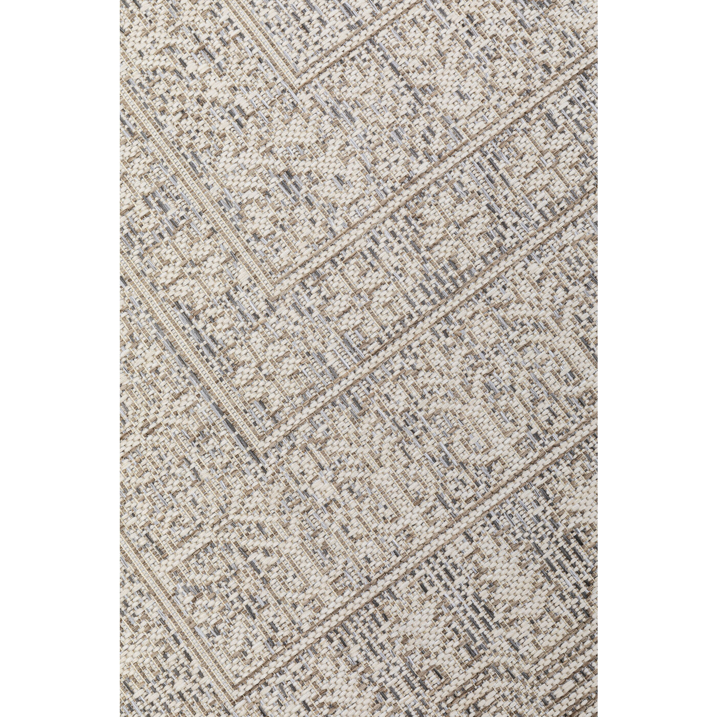 - Pflegeleichter Web-Teppich mit dezentem Muster für drinnen und draußen