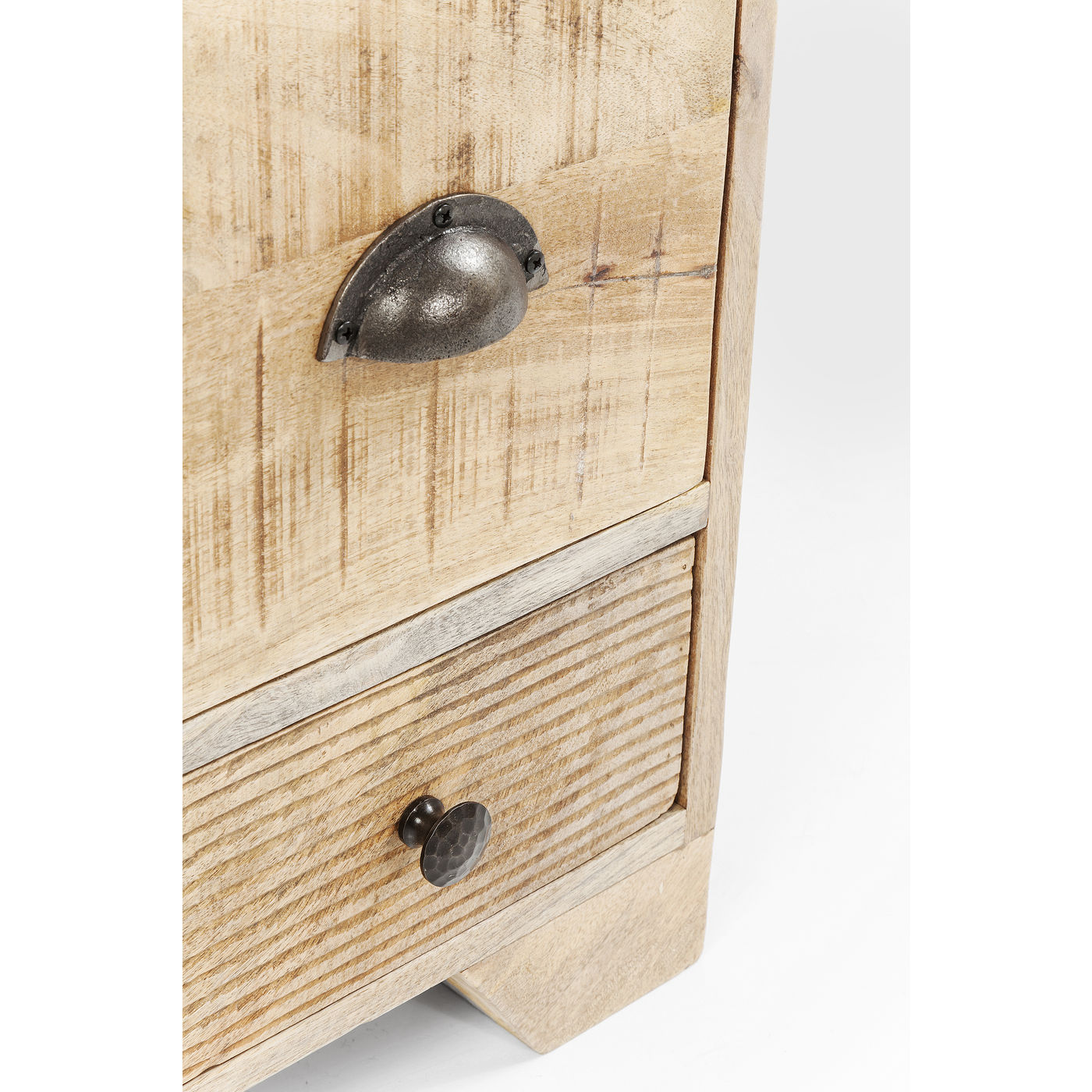 Die Möbelstücke der Puro Serie verbinden wertvolle Handwerkskunst und helles Mango-Massivholz mit natürlichem und behaglichem Wohndesign. Kunstvolle Schnitzereien zeugen vom Können indischer Handwerker und machen jedes Möbelstück einzigartig. Wer sich für ein Design der Serie entscheidet, holt sich ein echtes Schmuckstück ins Zuhause, das eine stilvolle und stimmungsvolle Atmosphäre schafft.40 kg max. BelastbarkeitGriffe: Glas klar, Büffelknochen, Mango Massivholz lackiert Hauptbestandteil, mitteldichte Faserplatte lackiert Schubladenboden, 40 kg max. Belastbarkeit