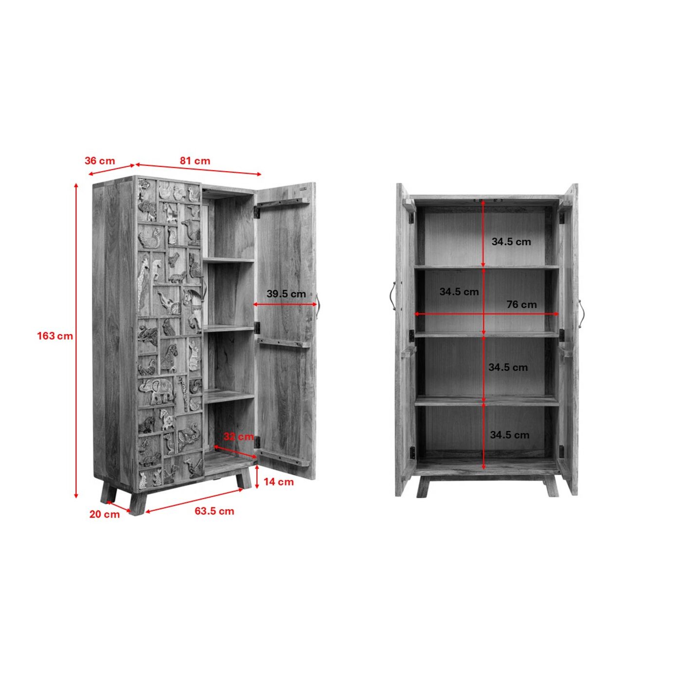 - Charmanter, handgearbeiteter Holz-Schrank mit Tier-Motiven, 163 x 81 x 36 Zentimeter (H/B/T)