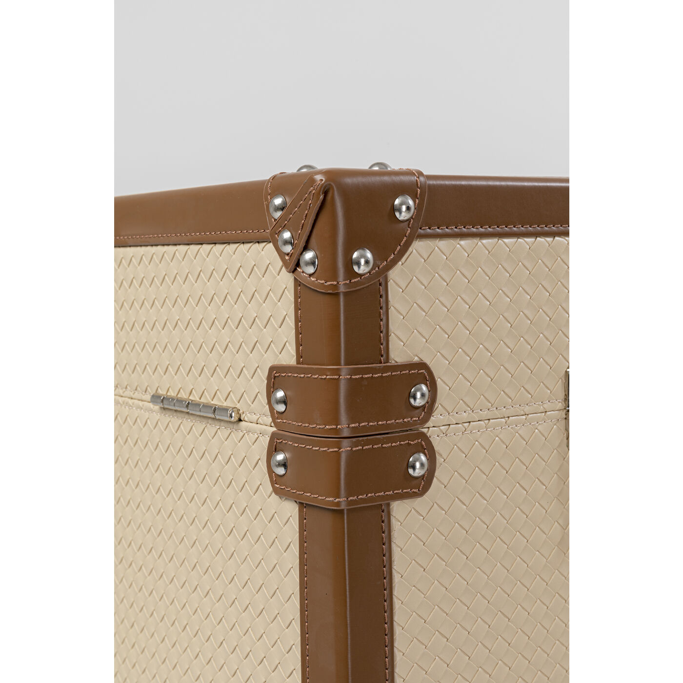 Wie lassen sich Funktion, platzsparende Lösungen und Stil kombinieren? Mit Möbeln im Look von Reisekoffern auf Rollen, die ein Haute Couture Outfit tragen! Mit der Kollektion Venezia bringen Sie Stil und Reiselust in Ihren Wohnbereich. Die Oberfläche des Schrankkoffers hat einen pflegeleichten Bezug aus beschichtetem Textil in edler Flechtoptik. Durch das kreative Design in Form eines Koffers wird der Schrank zum echten Highlight. Im Schlafzimmer als Kleiderschrank bietet das kreative Möbelstück genügend Platz für Kleider. Auch als Garderobenschrank im Flur eine super Lösung. Praktische Rollen machen ihn mobil und vielseitig einsetzbar. Der Schrank ist ein Must-have für alle, die modernes Design mit Funktionalität kombinieren möchten.
