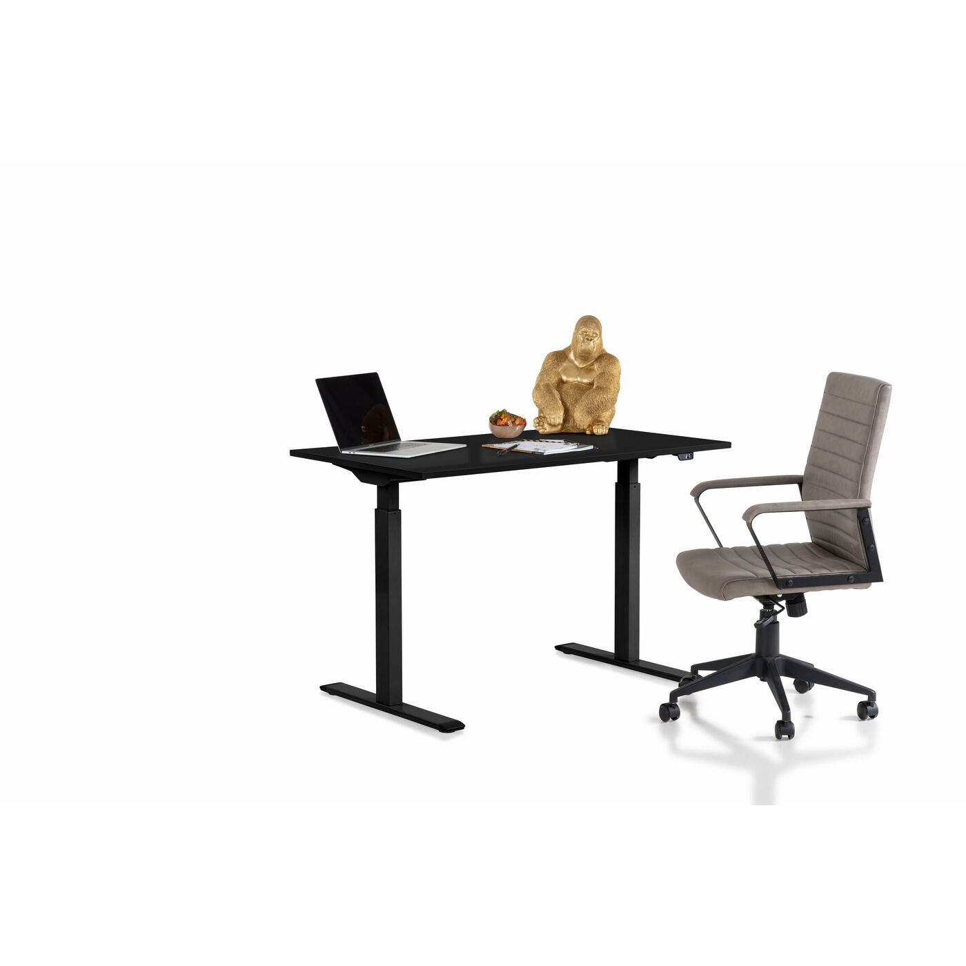 Unser elektrisch höhenverstellbare Schreibtisch ist eine echte Bereicherung für den Büroalltag: Er wirkt dank des Wechsels von Sitzen & Stehen einem monotonen Sitzverhalten entgegen und regt außerdem die Leistungsfähigkeit an. Die schwarze, seidig-matte Struktur der MFC Dekor-Platte und das weiß lackierte Stahl-Gestell sehen außerdem absolut stilvoll in jedem Home Office und Büro aus. So geht modernes Arbeiten heute!69 kg max. Belastbarkeit 70 - 12020 cm höhenverstellbarGestell: Stahl pulverbeschichtet, Tischplatte: Spanplatte melaminbeschichtet, 69 kg max. Belastbarkeit, 70 - 120,20 cm höhenverstellbar, Pflege und Reinigung: Art. 25002 Möbel Kur