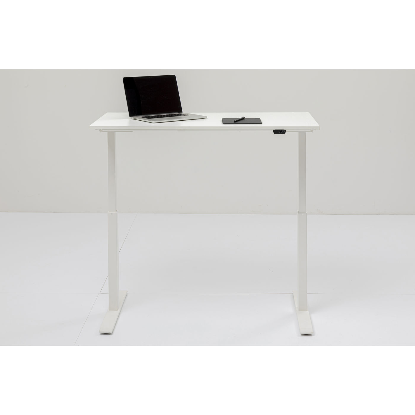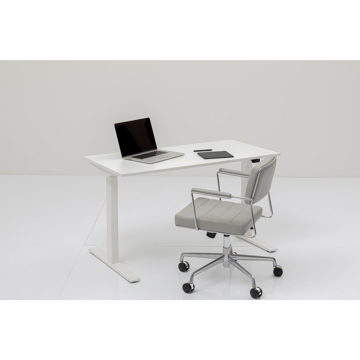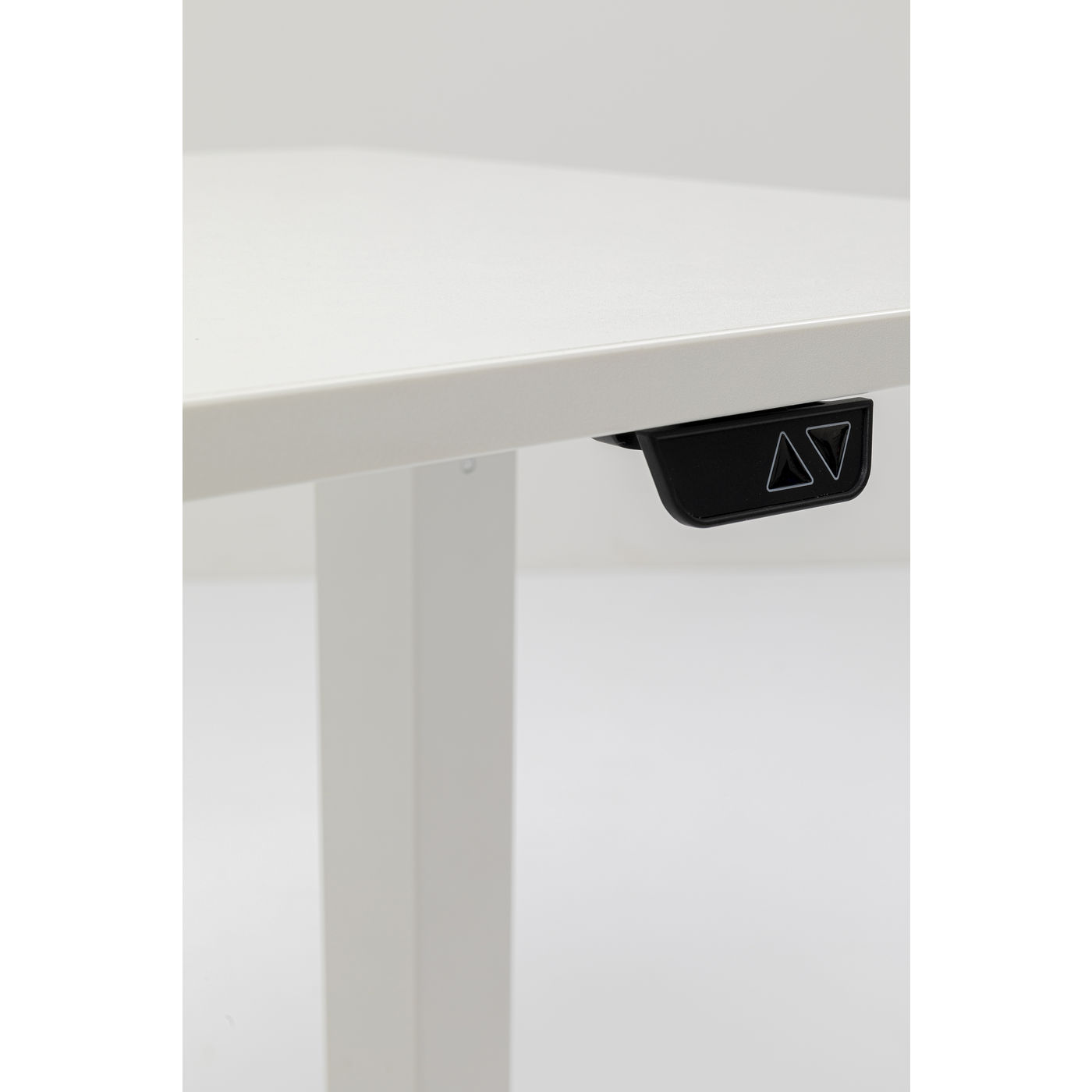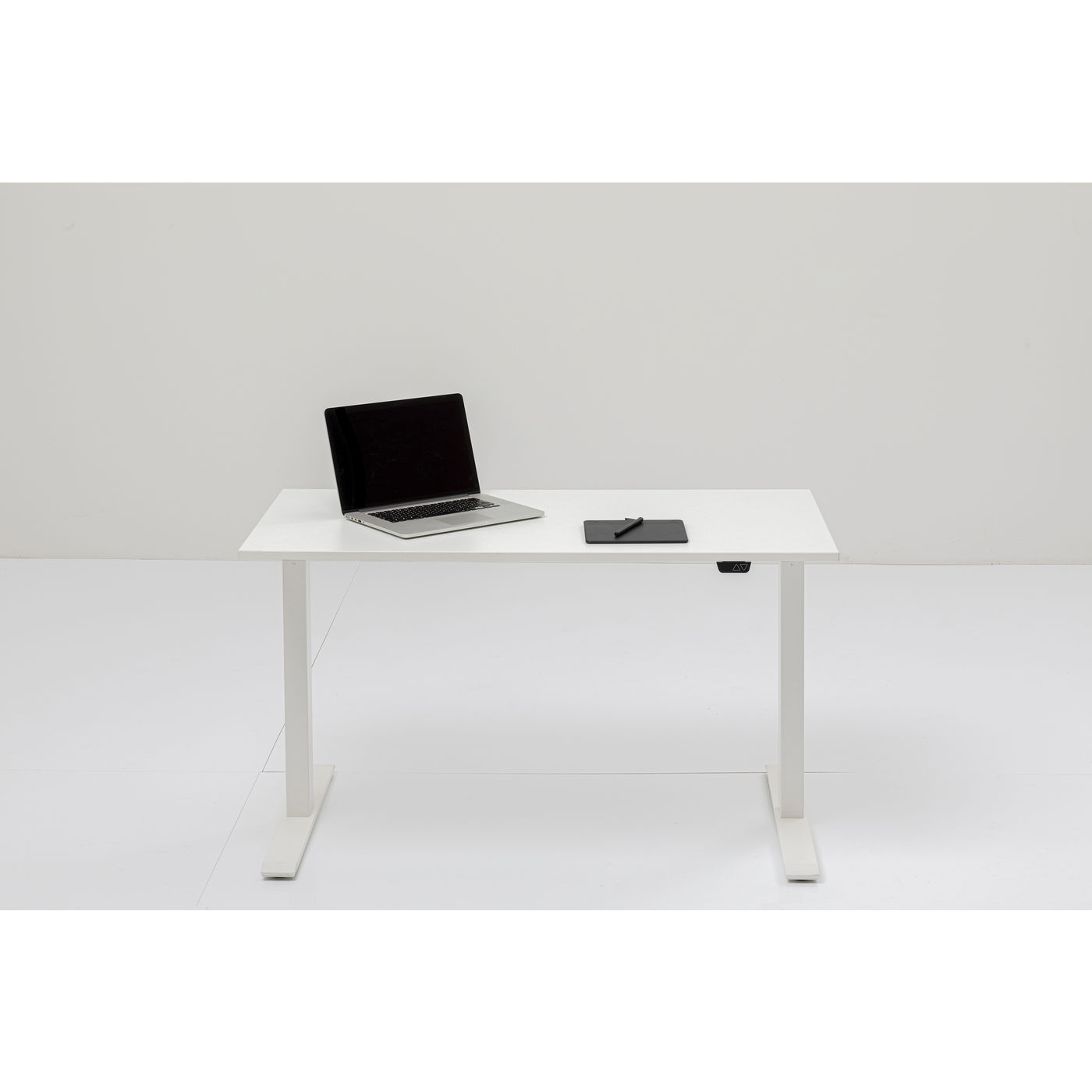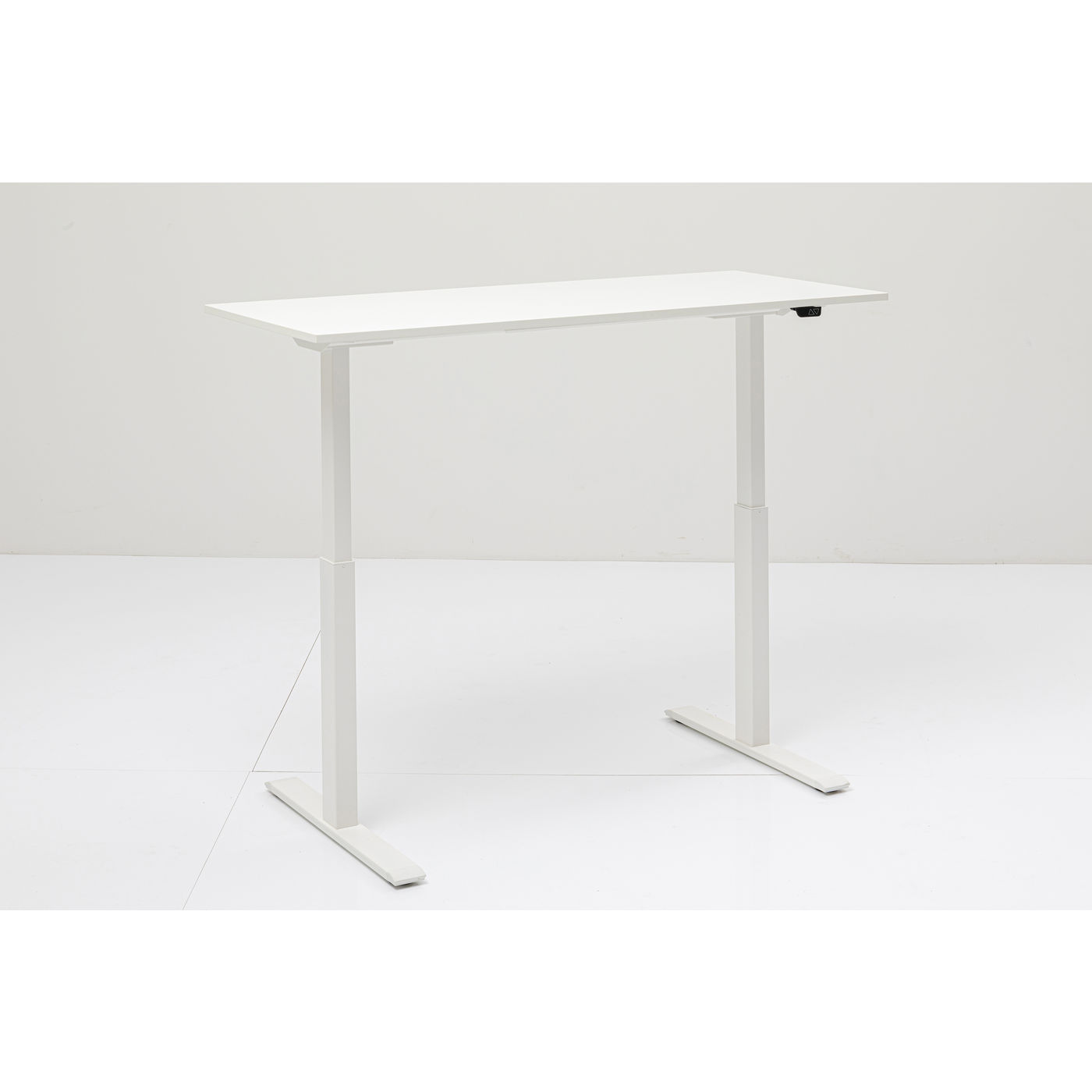 - Rechteckiger, elektrisch höhenverstellbarer Schreibtisch mit robuster, weißer MFC Dekor-Platte und lackierten Stahl-Kufen in Weiß