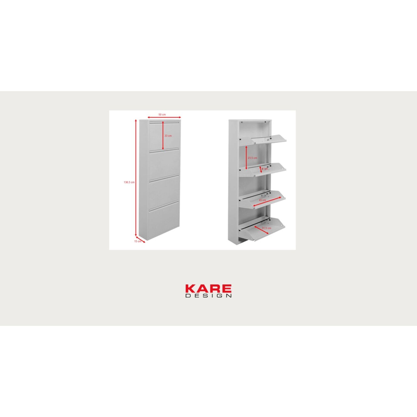 Schuhe kann man nie genug haben, richtig? Nur gut verstaut müssen sie sein. Darum kümmert sich hingebungsvoll dieser Schuh-Spezialist: ein geradliniger Schrank, der dank praktischer Kippfächer schlank an der Wand steht. Die KARE Schuhkipper aus der Serie Caruso sind pflegeleicht und robust. Wählen Sie unter unterschiedlichen Größen der Schuhkipper und finden Sie Ihre Lieblingsfarbe in unserem Shop. In verschiedenen Ausführungen erhältlich.