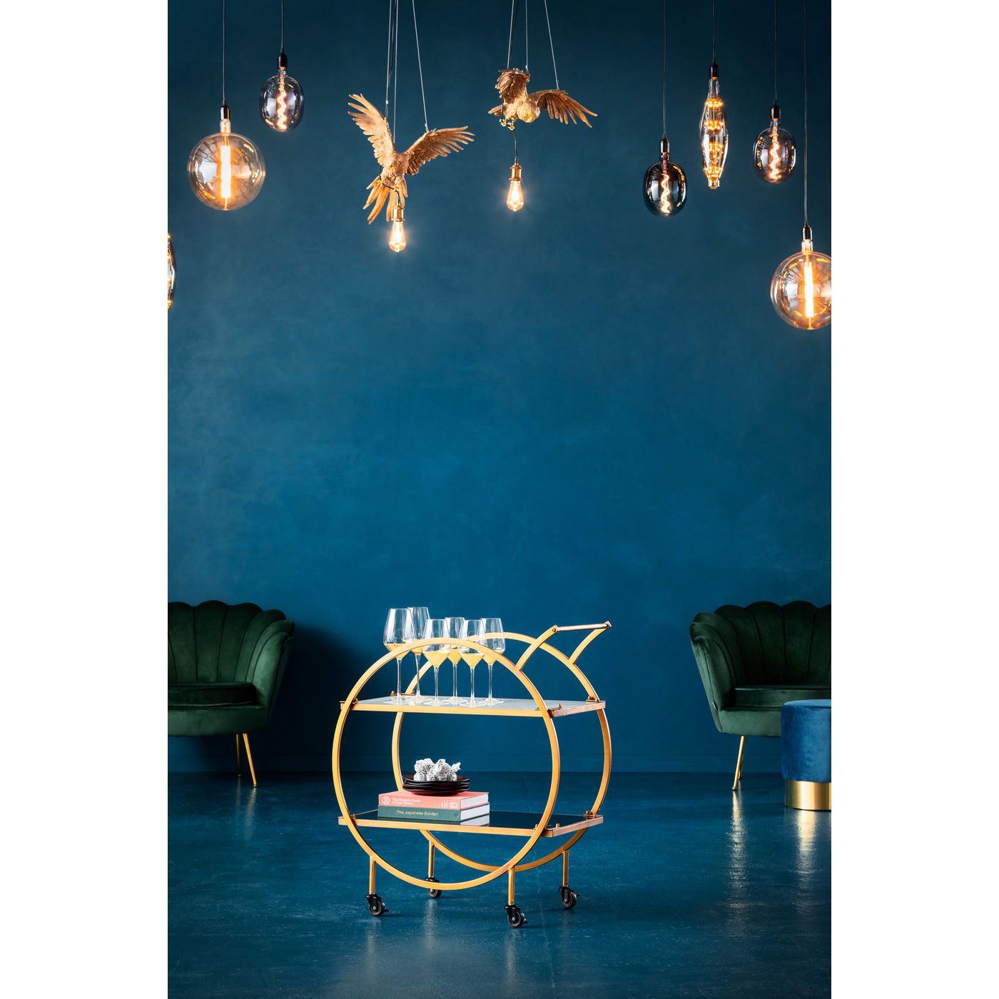 Jeder Tag ein Fest! Ein Barwagen hat etwas herrlich Mondänes, man ist immer bereit, spontanen Besuch zu bewirten. Die Form erinnert an das Design des Art déco und wirkt durch das Messing-Finish besonders elegant. Außerdem ist er wunderbar flexibel und hilft in Küche, Schlafzimmer oder Bad als mobiles Regal.