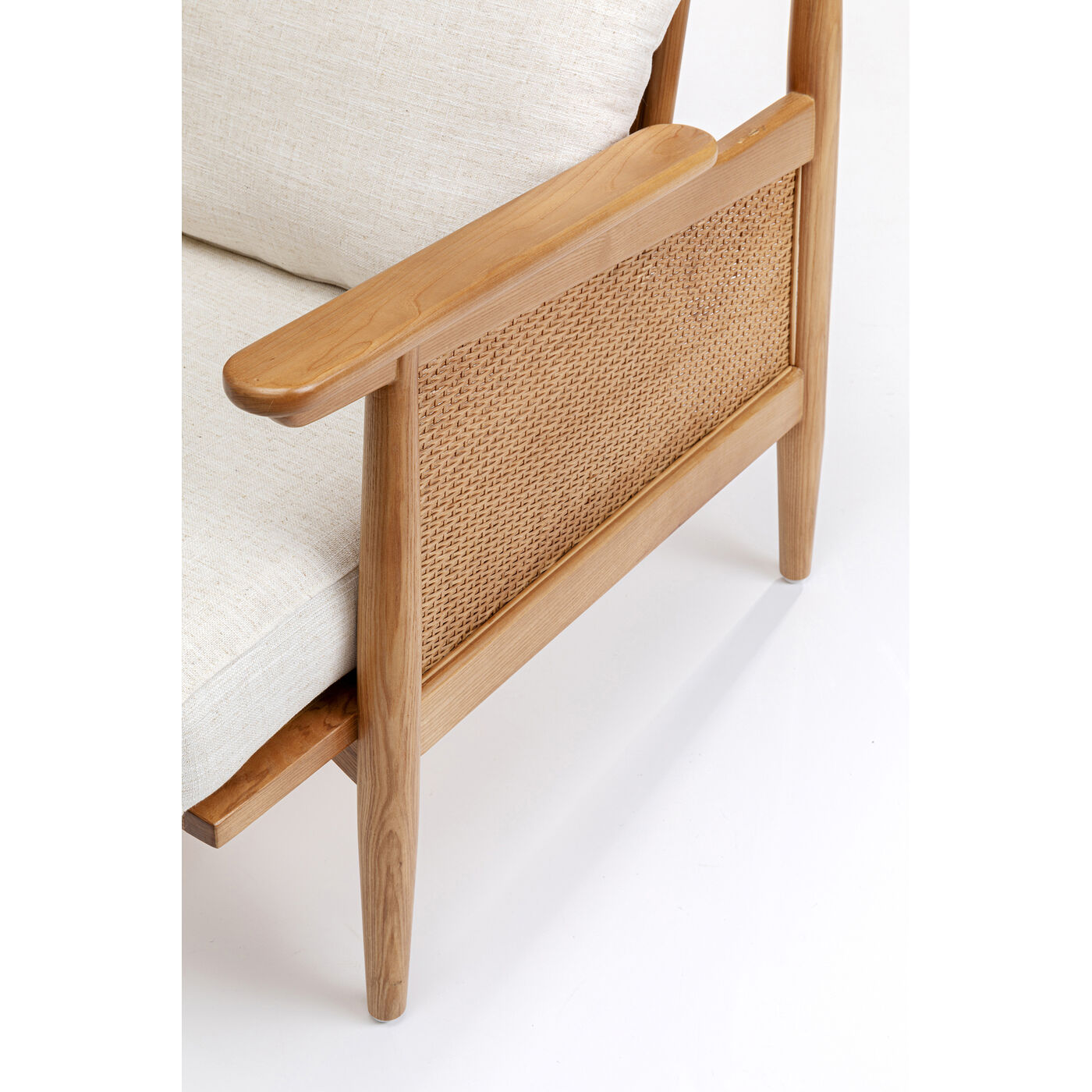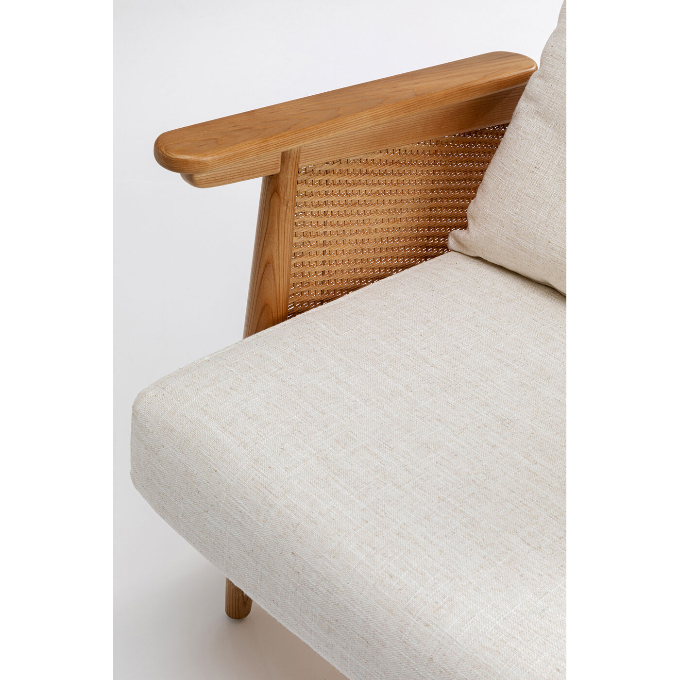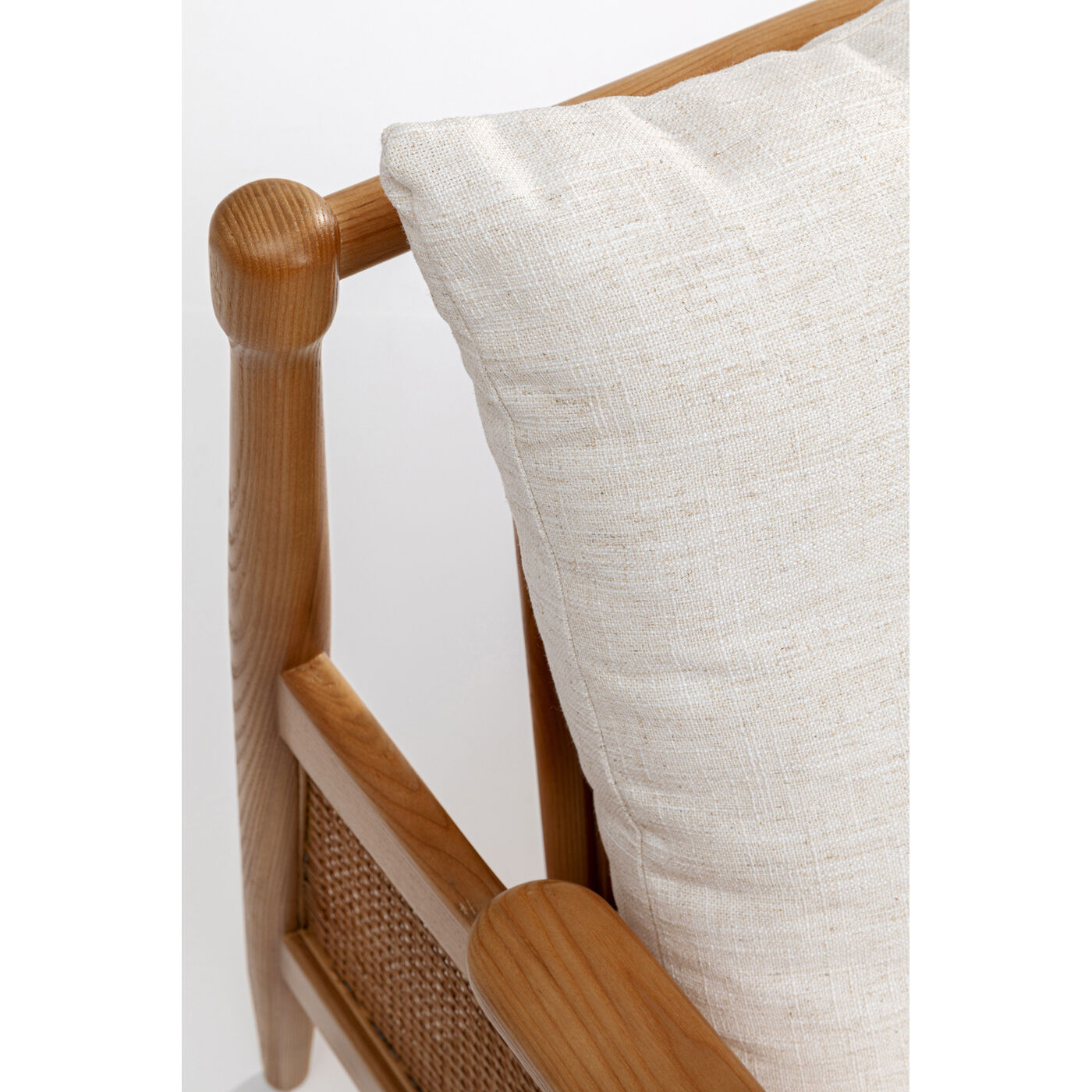 Der Sessel mit Armlehnen ist komplett aus dekorativem, massivem Eschenholz gefertigt. Dieses Massivholz ist nicht nur wunderschön, sondern auch sehr hart. Mit diesem Holz-Armlehnstuhl erwerben Sie daher einen besonders langlebigen Wohnzimmer Sessel. Ein herausstechendes, ästhetisches Detail sind die Rücken- und Armlehnen aus Weidengeflecht. Der leicht melierte Webstoff enthält einen Leinenanteil und harmoniert mit dem Braun des Holzes. Mit einem Designer Möbel wie diesem von KARE können Sie spielend leicht stilvolle Sitzecken im Wohnzimmer, Schlafzimmer oder dem Arbeitszimmer gestalten. Ein Trick für eine charakterstarke Wohnlandschaft ist, zur Eck-Couch oder dem Sofa einen bequemen Armlehnstuhl zu stellen, der stilistich heraussticht.